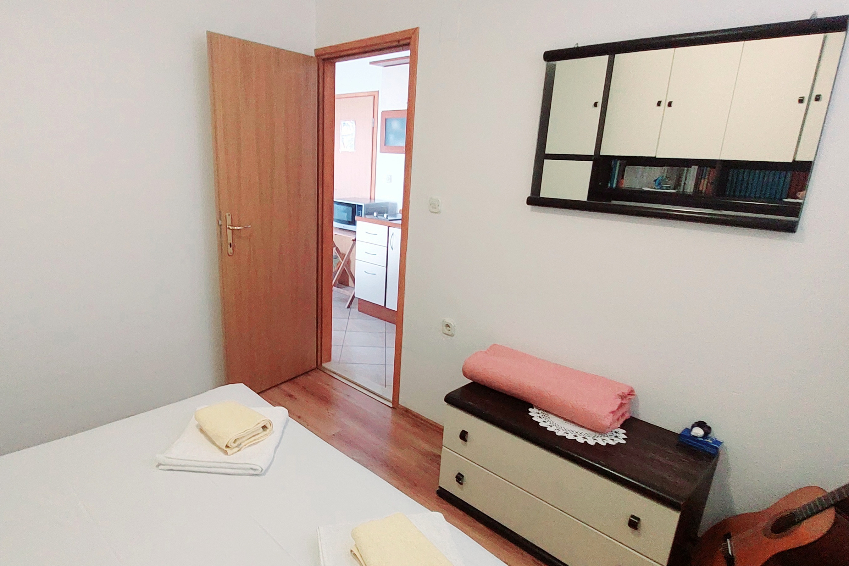 Apartment can accommodate 2 guests. Beds are situated in 1 sleeping rooms, within 35m2. Guests can use a private terrace to enjoy the warm summer evenings. The apartment offers the sea view. Food can be prepared using barbecue which is shared with other guests too. INCLUDED IN THE PRICE: tourist tax, final cleaning, air-conditioning, central heating, parking, internet, iron, ironing board, hairdryer, portable barbecue. OPTIONAL ADDITIONAL COSTS: additional bed (€7.00 per night). The availability of additional services for your chosen dates of stay, as well as their prices (if none are listed) must be checked ahead of time. Any additional services not shown in the price calculation are payable directly to the property owner and only if used by the visitor.