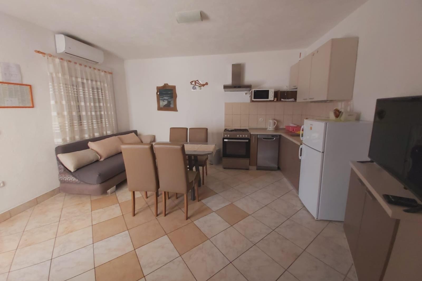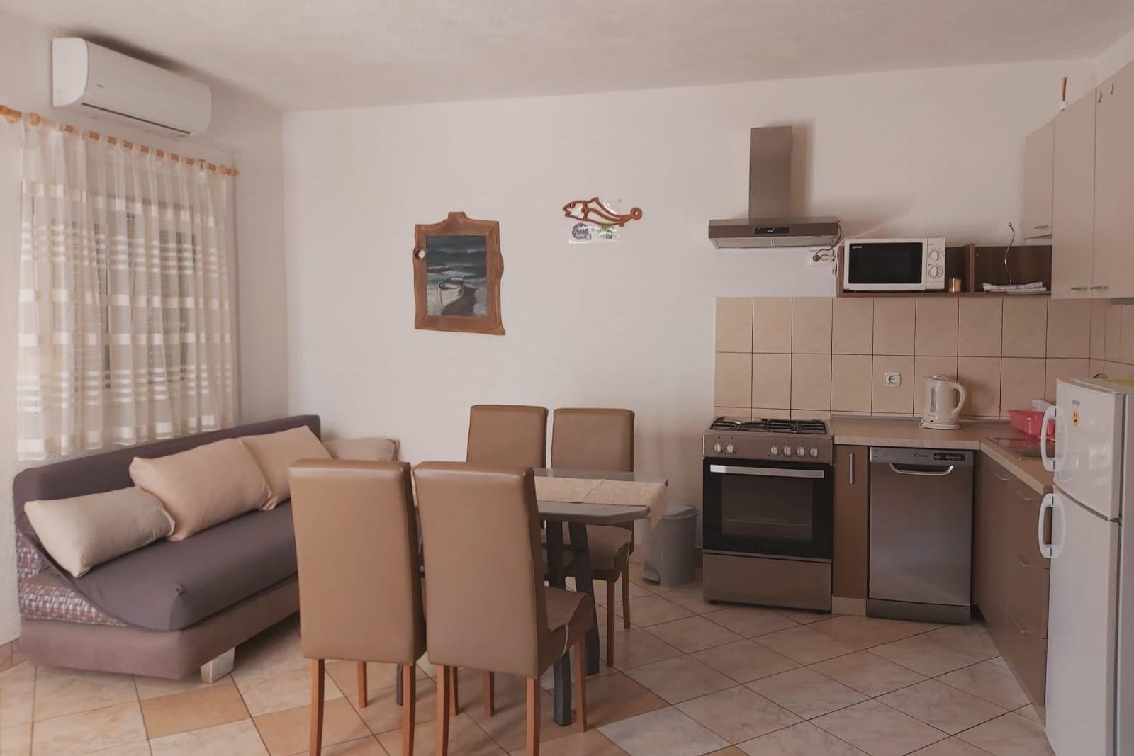Apartment can accommodate 3 guests. Beds are situated in 1 sleeping rooms, but also in the living room, within 37m2. Guests can use a private terrace to enjoy the warm summer evenings. The apartment offers the sea view. Food can be prepared using barbecue which is shared with other guests too. Shared pool is on disposal during stay. Other guests or hosts pass through the terrace of the booked accommodation unit. INCLUDED IN THE PRICE: tourist tax, final cleaning, air-conditioning, pool, parking, internet, baby cot, iron, ironing board, hairdryer. The availability of additional services for your chosen dates of stay, as well as their prices (if none are listed) must be checked ahead of time. Any additional services not shown in the price calculation are payable directly to the property owner and only if used by the visitor.