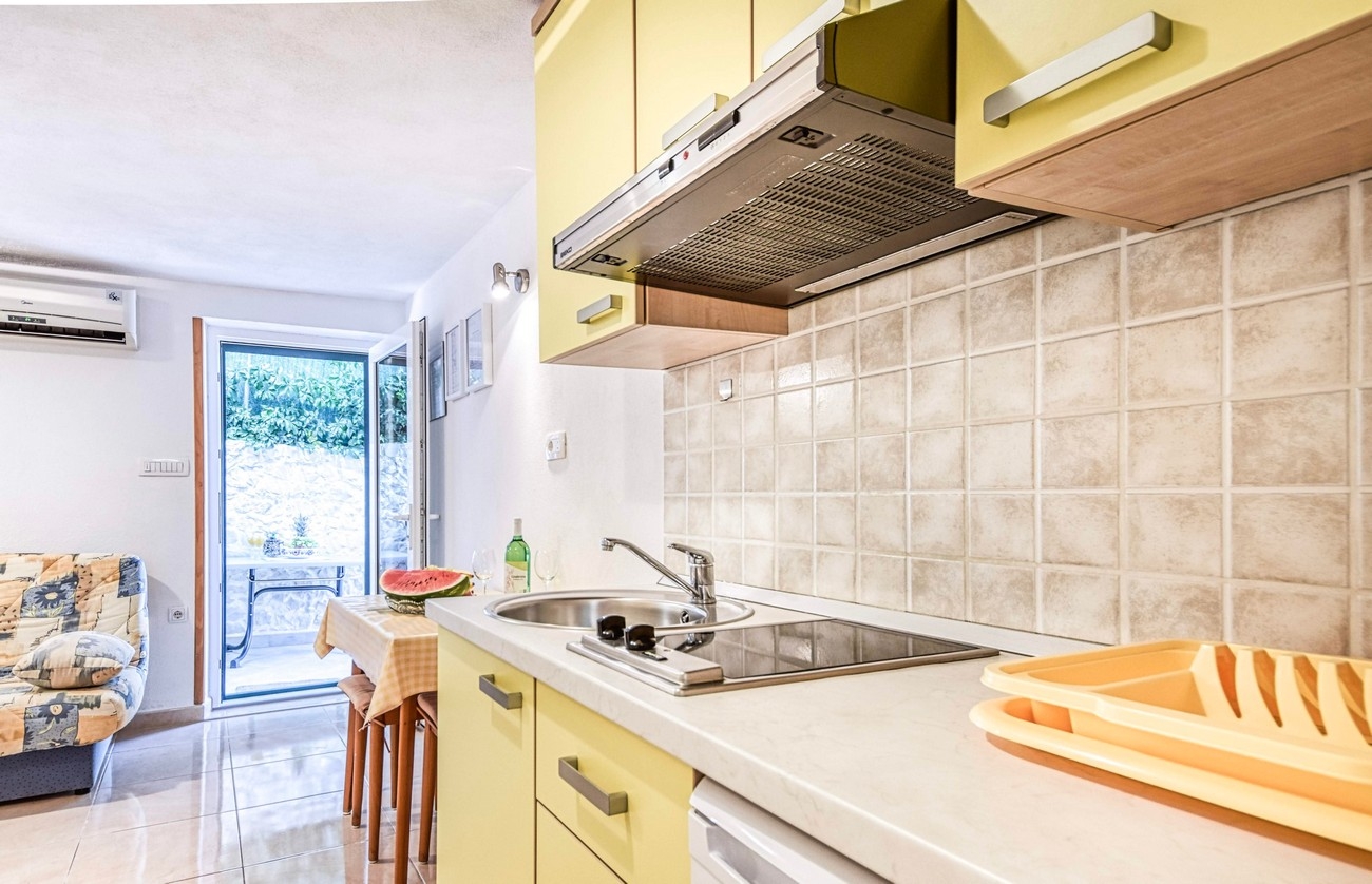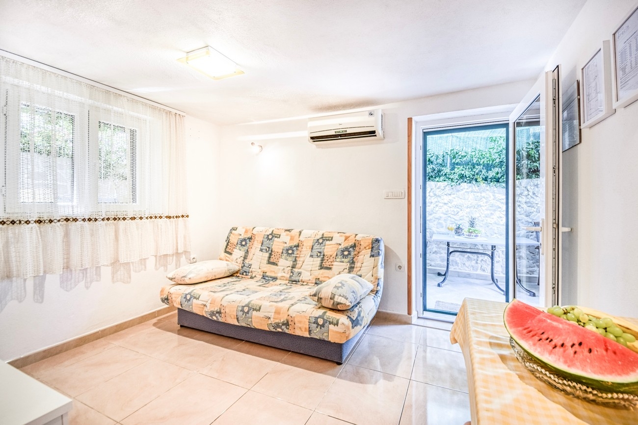 Apartment can accommodate 3 guests. Beds are situated in 1 sleeping rooms, but also in the living room, within 25m2. Guests can use a private terrace to enjoy the warm summer evenings. INCLUDED IN THE PRICE: tourist tax, final cleaning, air-conditioning, parking, internet, laundry. The availability of additional services for your chosen dates of stay, as well as their prices (if none are listed) must be checked ahead of time. Any additional services not shown in the price calculation are payable directly to the property owner and only if used by the visitor. Discounts to the base price: free day 14=13 (for reservations of 14 or more days you get one free day for the stay until 31122026).