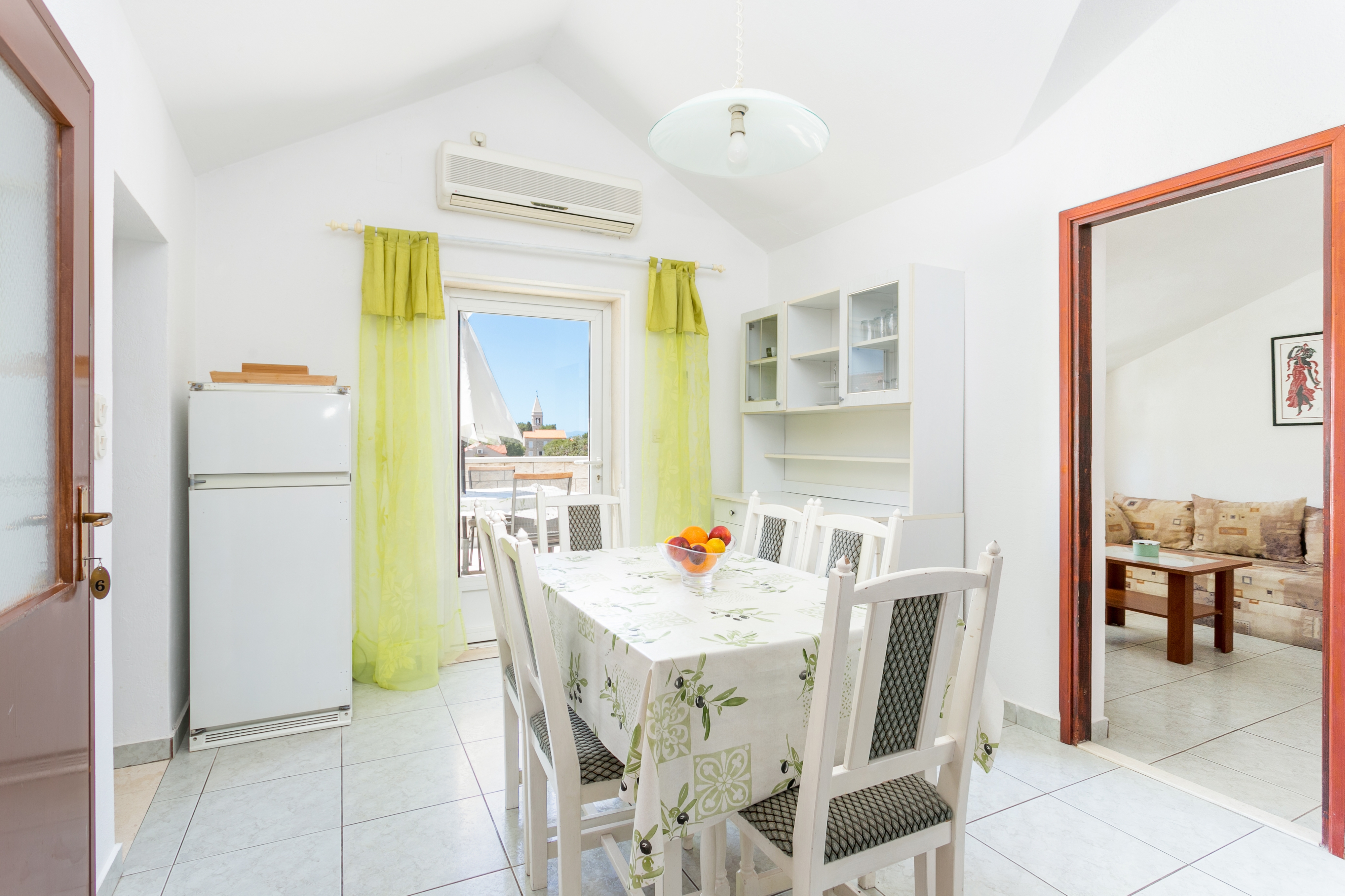 Apartment can accommodate 6 guests. Beds are situated in 2 sleeping rooms, but also in the living room, within 57m2. Guests can use a private terrace to enjoy the warm summer evenings. The apartment offers the sea view. Food can be prepared using barbecue which is shared with other guests too. INCLUDED IN THE PRICE: tourist tax, final cleaning, air-conditioning, parking, internet, iron, ironing board, hairdryer. OBLIGATORY ADDITIONAL COSTS: short stay fee (surcharge depending on a number of booked nights: 30% - 1, 20% - 2, 10% - 3). OPTIONAL ADDITIONAL COSTS: laundry (€3.00 washing), additional bed (€10.00 per night). The availability of additional services for your chosen dates of stay, as well as their prices (if none are listed) must be checked ahead of time. Any additional services not shown in the price calculation are payable directly to the property owner and only if used by the visitor. Discounts to the base price: free day 14=13 (for reservations of 14 or more days you get one free day for the stay until 31122026).