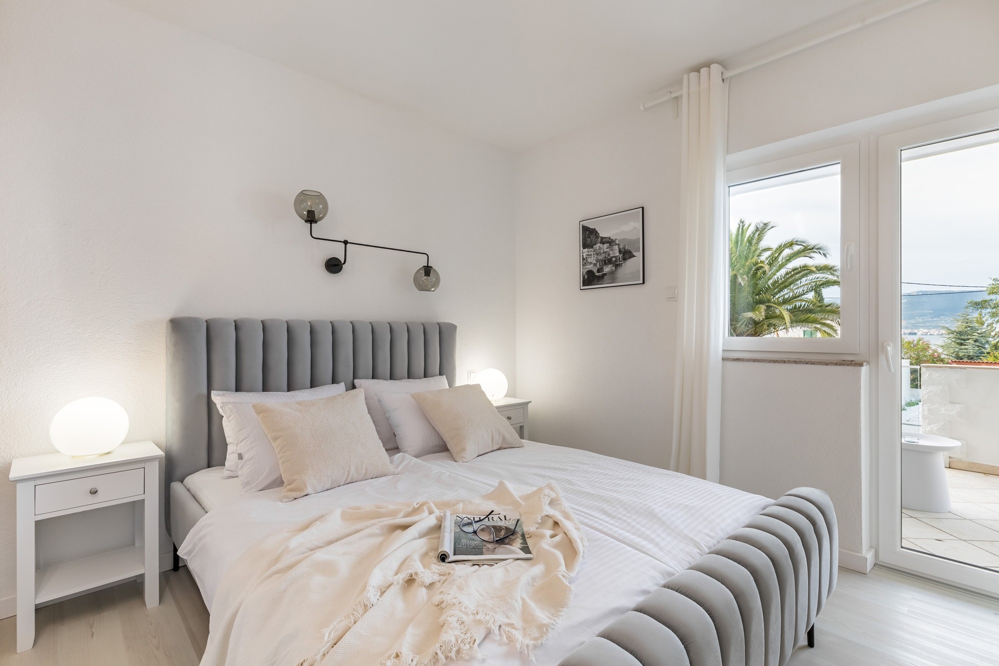 Apartment can accommodate 6 guests. Beds are situated in 2 sleeping rooms, but also in the living room, within 43m2. Guests can use a private terrace to enjoy the warm summer evenings. The apartment offers the sea view. For full enjoyment and relaxation there is a private barbecue for this accommodation guests only. Shared pool is on disposal during stay. This accommodation unit welcomes pets at an additional charge. INCLUDED IN THE PRICE: final cleaning, air-conditioning, pool, parking, internet, baby cot, iron, ironing board, hairdryer. OBLIGATORY ADDITIONAL COSTS: tourist tax (adults €0.93 - €2.65 nightperson, discount for children aged 12 - 17). OPTIONAL ADDITIONAL COSTS: pets (€5.00 per night). The availability of additional services for your chosen dates of stay, as well as their prices (if none are listed) must be checked ahead of time. Any additional services not shown in the price calculation are payable directly to the property owner and only if used by the visitor.