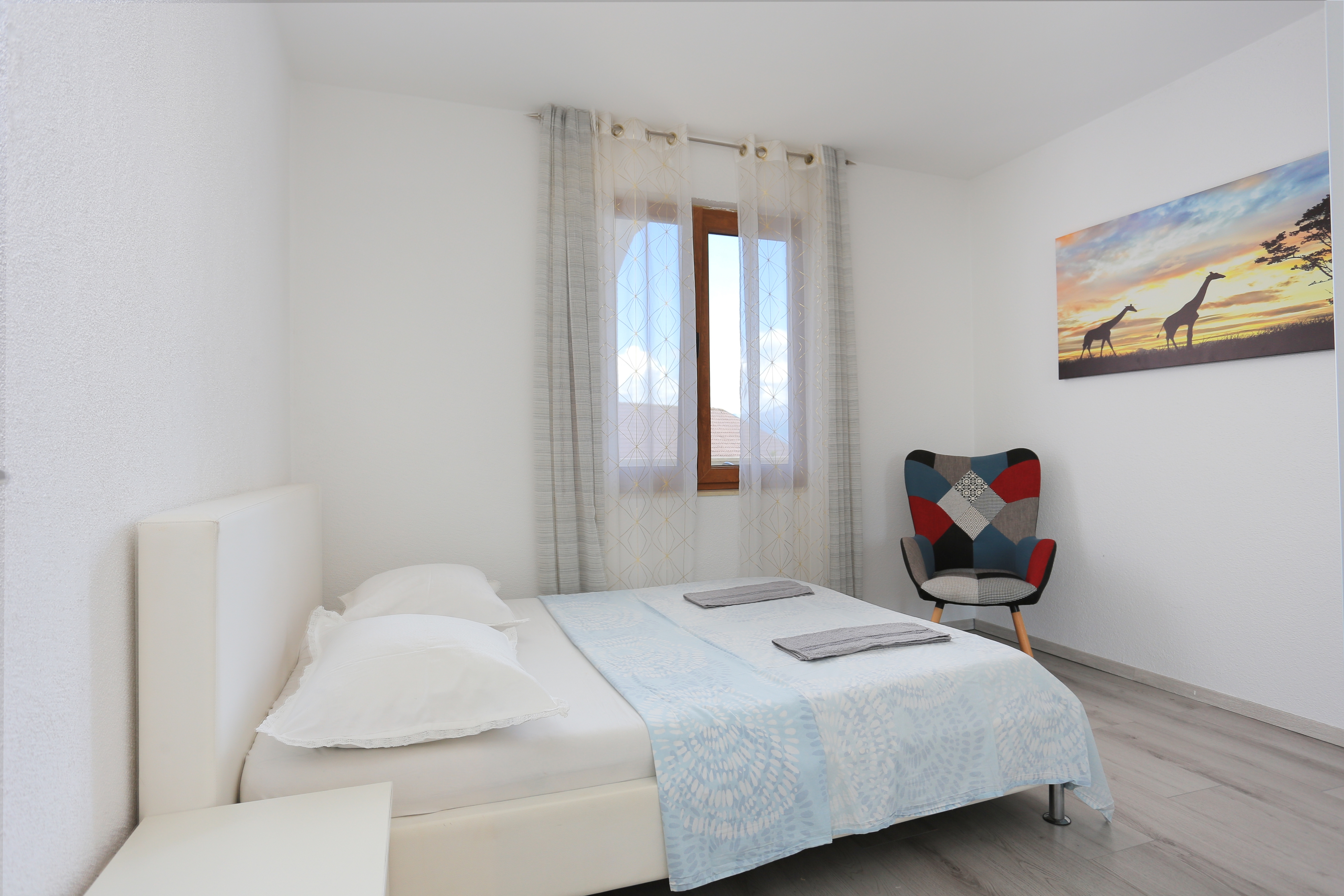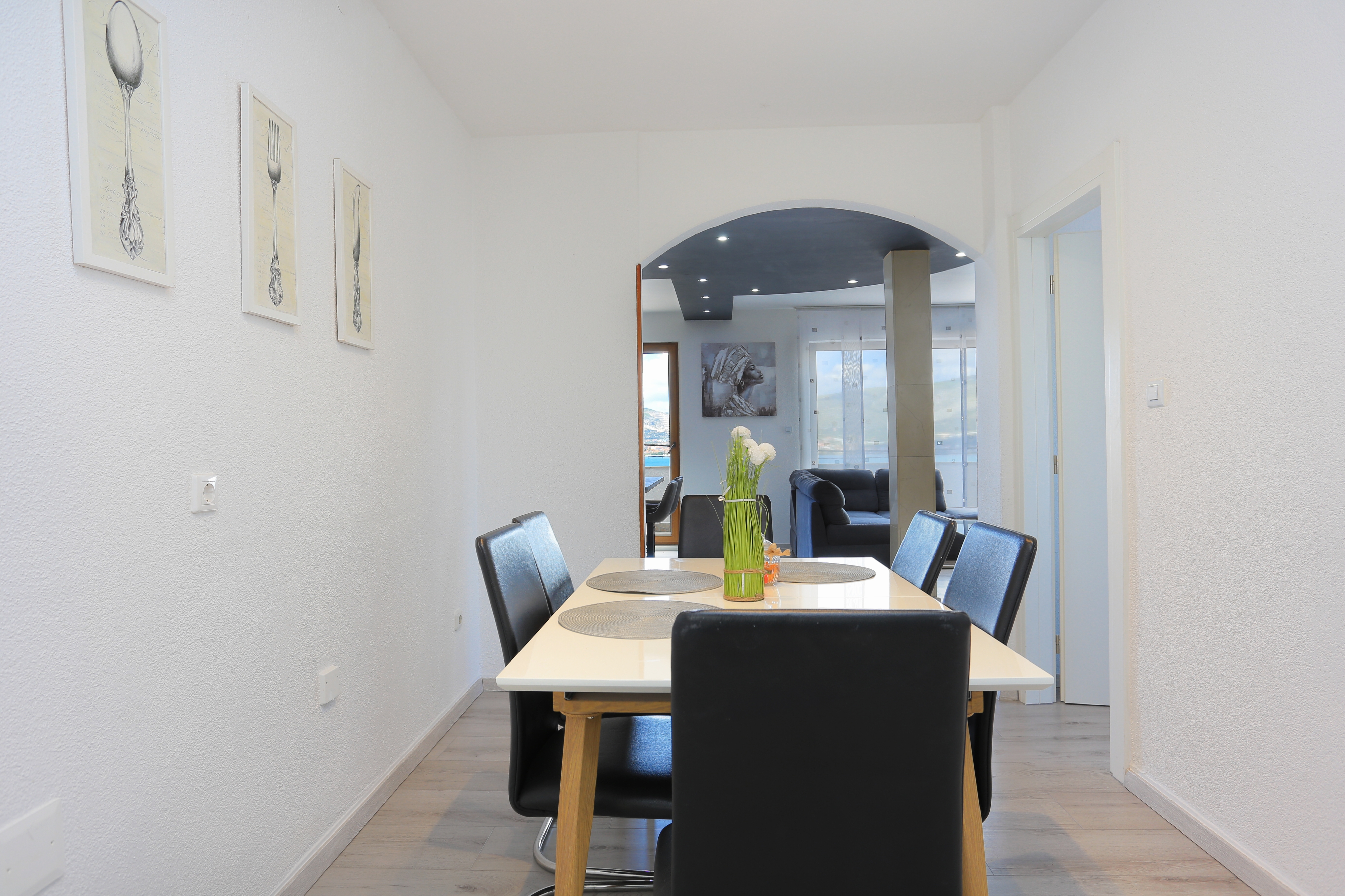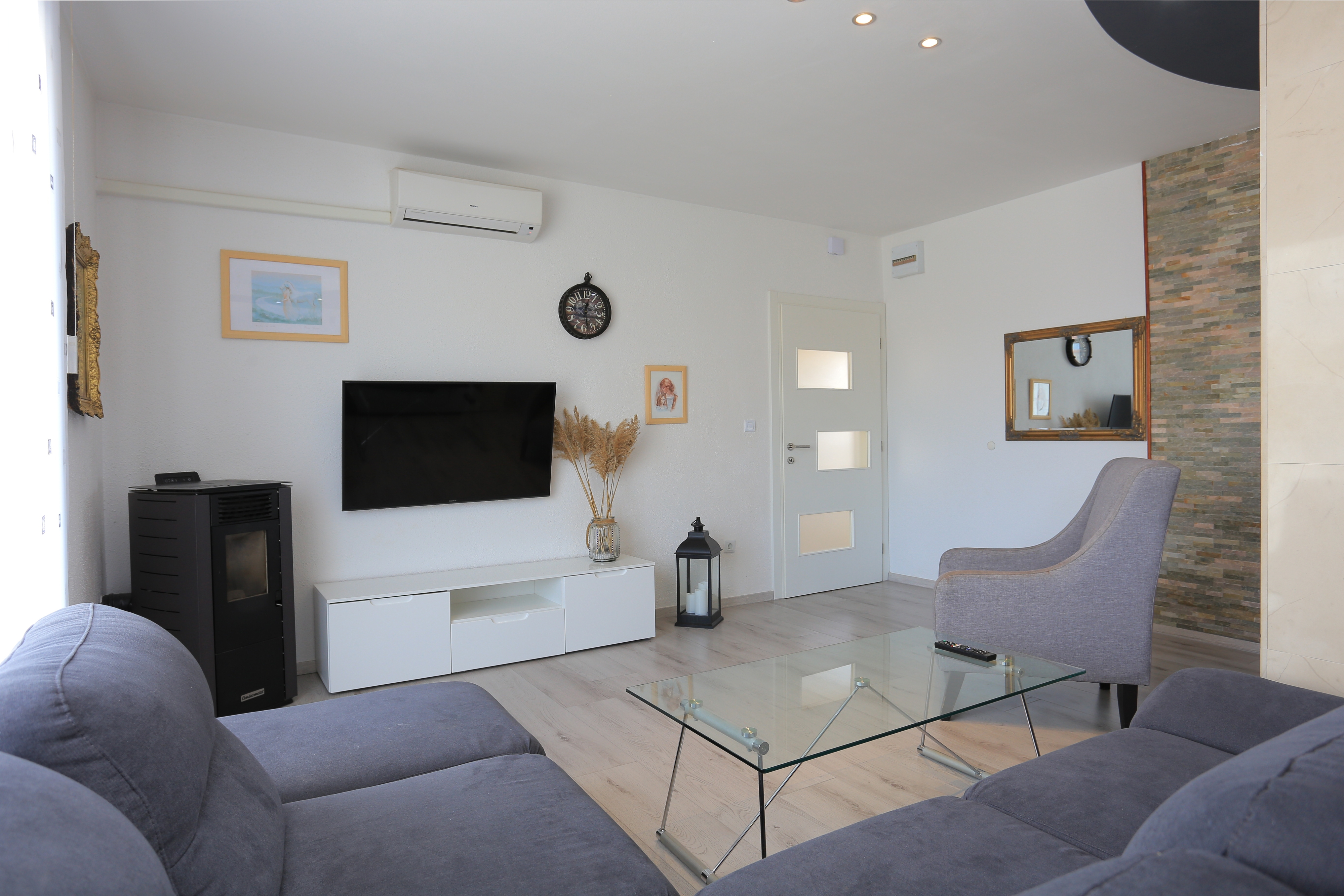 Apartment can accommodate 5 guests. Beds are situated in 2 sleeping rooms, but also in the living room, within 75m2. Guests can use a private terrace to enjoy the warm summer evenings. The apartment offers the sea view. Food can be prepared using barbecue which is shared with other guests too. This accommodation unit welcomes pets at an additional charge. Other guests or hosts pass through the terrace of the booked accommodation unit. INCLUDED IN THE PRICE: tourist tax, final cleaning, air-conditioning, parking, garage, internet, baby cot, iron, hairdryer, sunchairs. OPTIONAL ADDITIONAL COSTS: pets (€5.00 per night). The availability of additional services for your chosen dates of stay, as well as their prices (if none are listed) must be checked ahead of time. Any additional services not shown in the price calculation are payable directly to the property owner and only if used by the visitor.