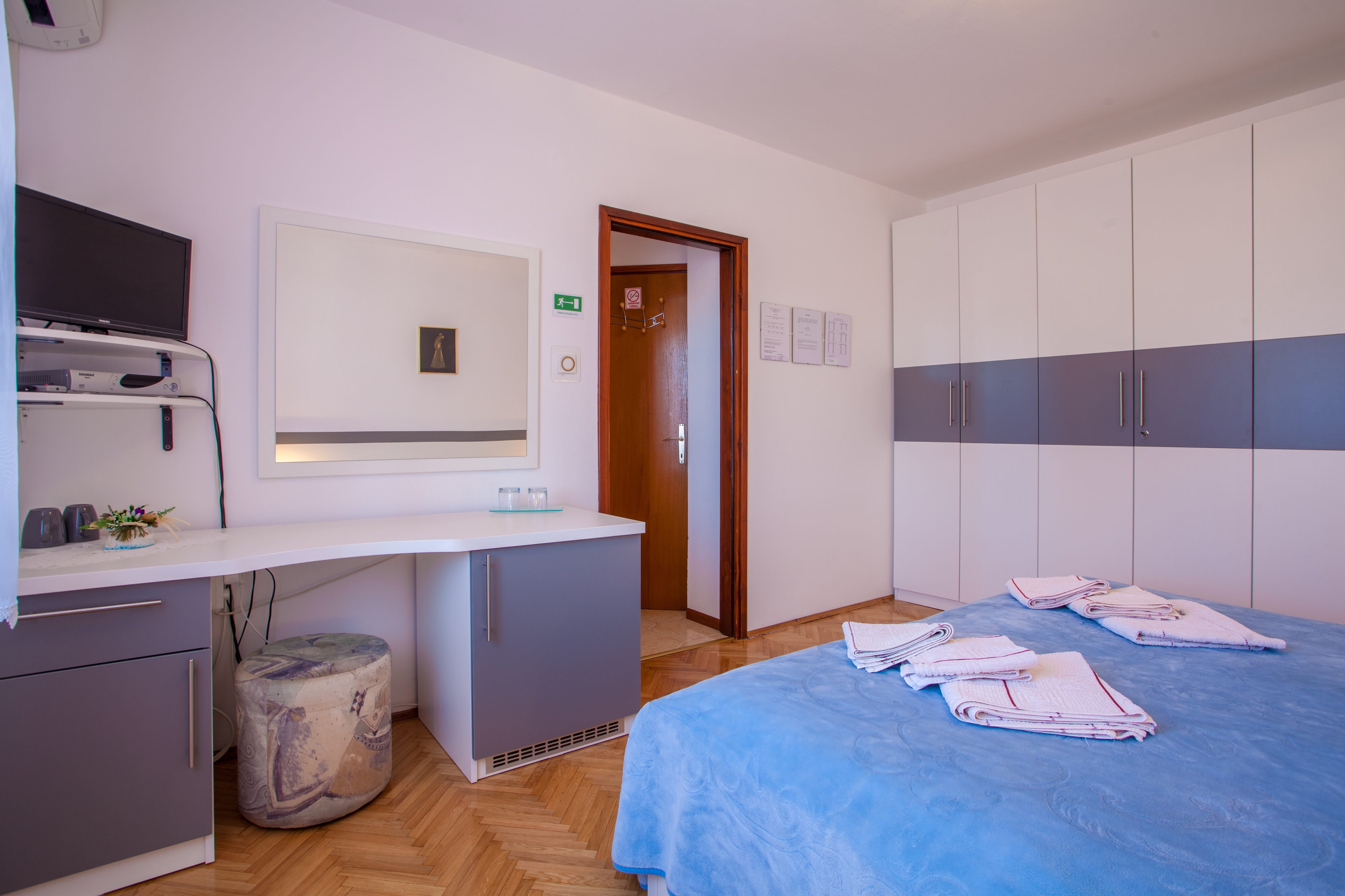 Room can accommodate 2 guests. Beds are situated in 1 sleeping rooms, within 19m2. Use of shared kitchen is possible. Food can be prepared using barbecue which is shared with other guests too. Reserved accommodation unit is a room with its own bathroom and shared kitchen at no additional charge. Reserved accommodation unit has a shared terrace. Some of the rooms of the accommodation unit are not connected with the rest of the unit. INCLUDED IN THE PRICE: tourist tax, final cleaning, air-conditioning, shared kitchen, parking, internet, iron, ironing board, hairdryer. OBLIGATORY ADDITIONAL COSTS: short stay fee (surcharge depending on a number of booked nights: 30% - 1, 20% - 2, 10% - 3). The availability of additional services for your chosen dates of stay, as well as their prices (if none are listed) must be checked ahead of time. Any additional services not shown in the price calculation are payable directly to the property owner and only if used by the visitor.