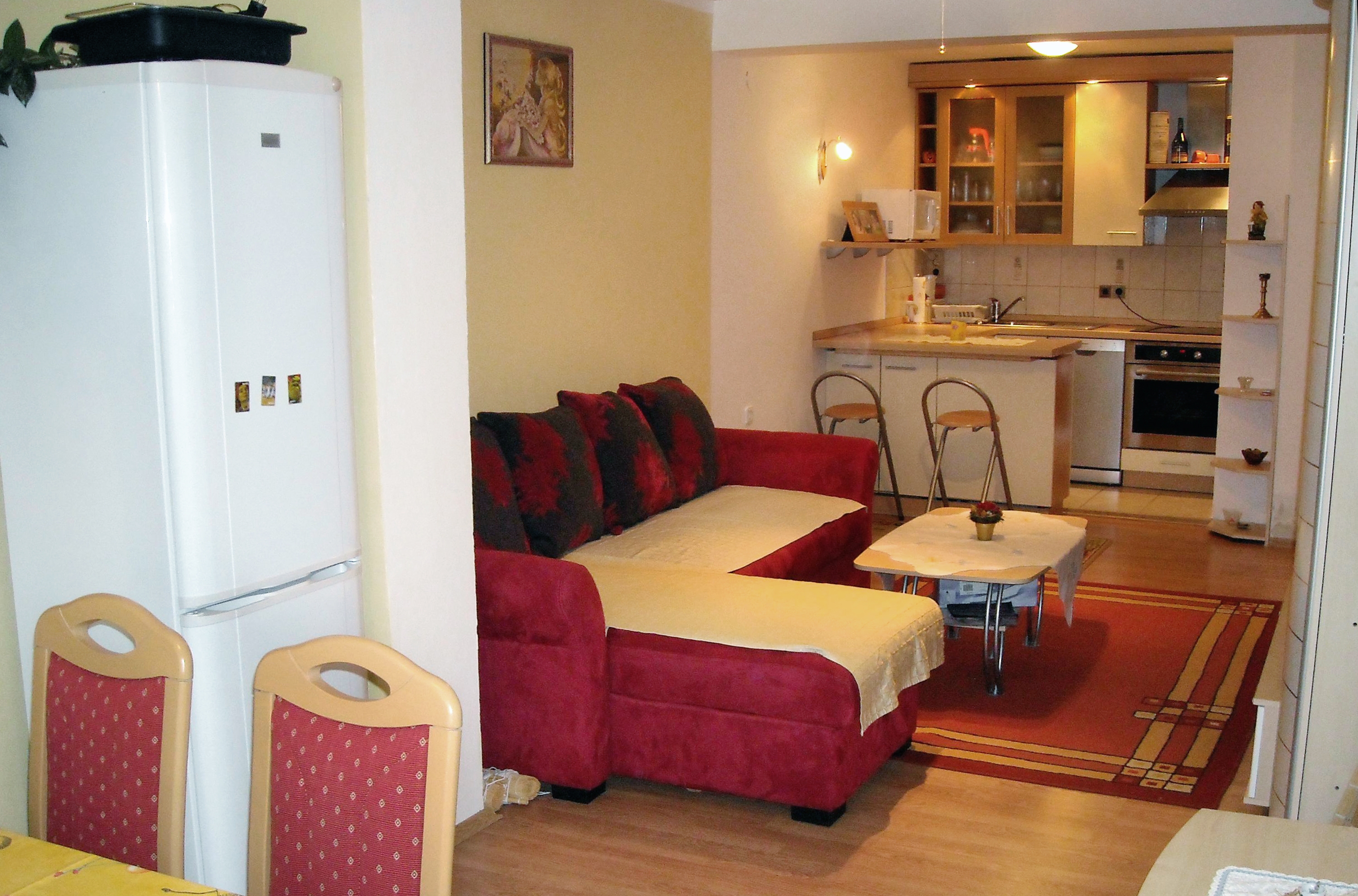 Apartment can accommodate 4 guests. Beds are situated in 1 sleeping rooms, but also in the living room, within 51m2. Guests can use a private terrace to enjoy the warm summer evenings. Food can be prepared using barbecue which is shared with other guests too. INCLUDED IN THE PRICE: tourist tax, final cleaning, parking, internet, bicycle, baby cot, iron, ironing board, portable barbecue. OBLIGATORY ADDITIONAL COSTS: short stay fee (surcharge depending on a number of booked nights: 30% - 1, 20% - 2, 10% - 3). OPTIONAL ADDITIONAL COSTS: air-conditioning (€5.00 per night), laundry (€5.00 washing). The availability of additional services for your chosen dates of stay, as well as their prices (if none are listed) must be checked ahead of time. Any additional services not shown in the price calculation are payable directly to the property owner and only if used by the visitor.