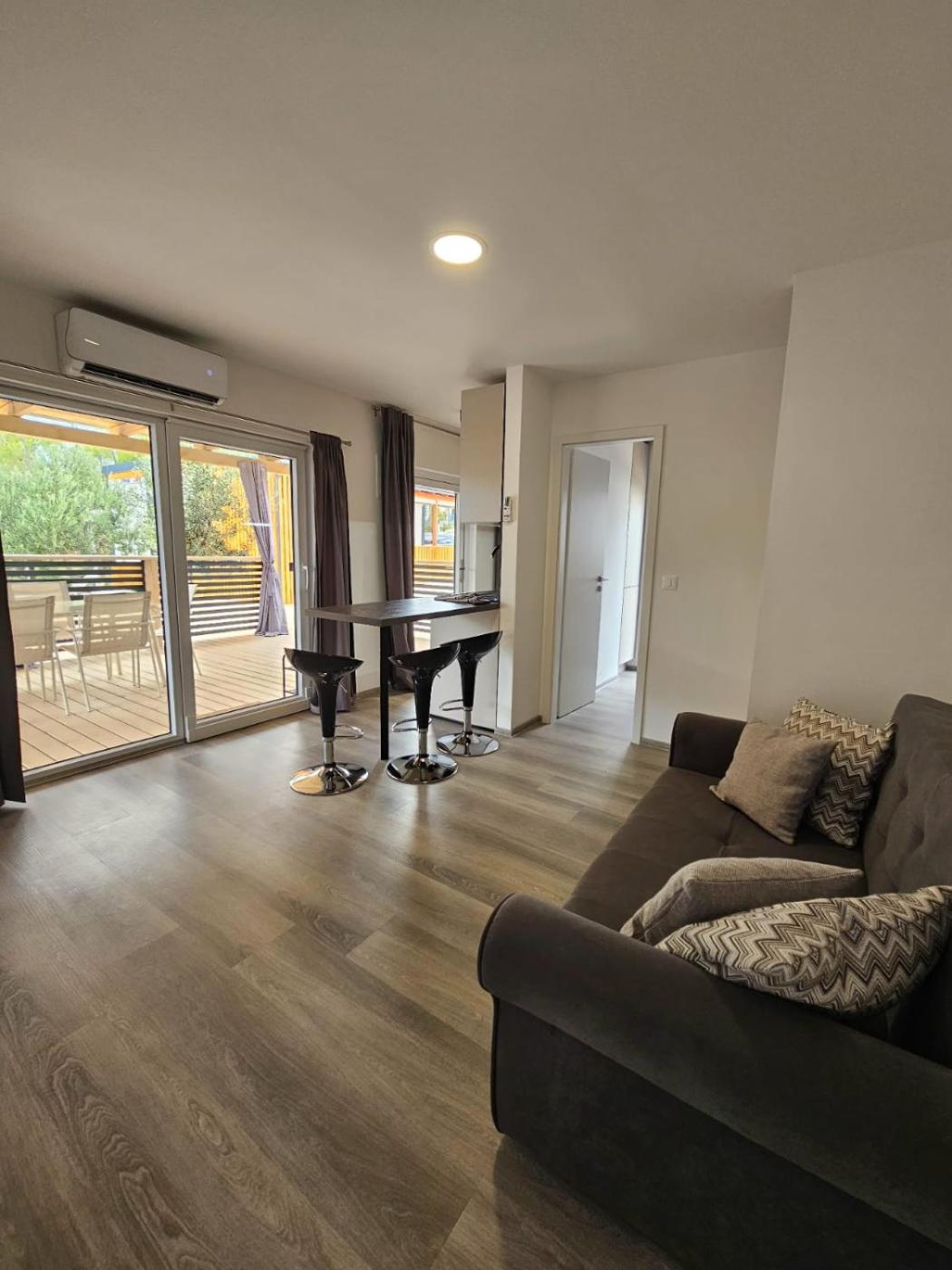 Mobile Home. This mobile home features a private pool. This air-conditioned mobile home is comprised of 1 living room, 2 separate bedrooms and 1 bathroom with a shower. Guests will find a stovetop, a refrigerator, a dishwasher and kitchenware in the fully equipped kitchenette. The mobile home also has a barbecue. Featuring a terrace, this mobile home also offers a washing machine, a wardrobe and a flat-screen TV. The unit offers 3 beds.
