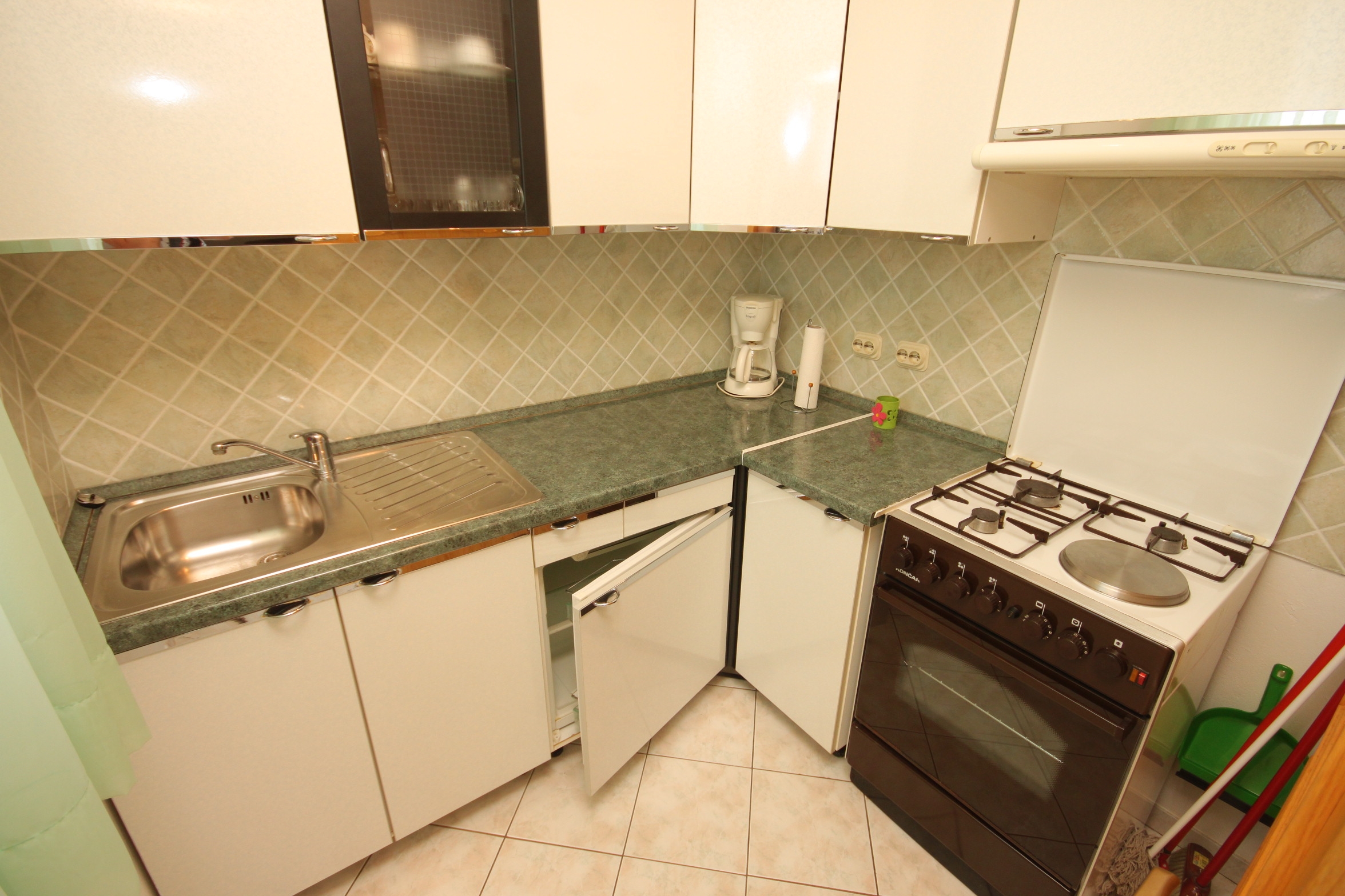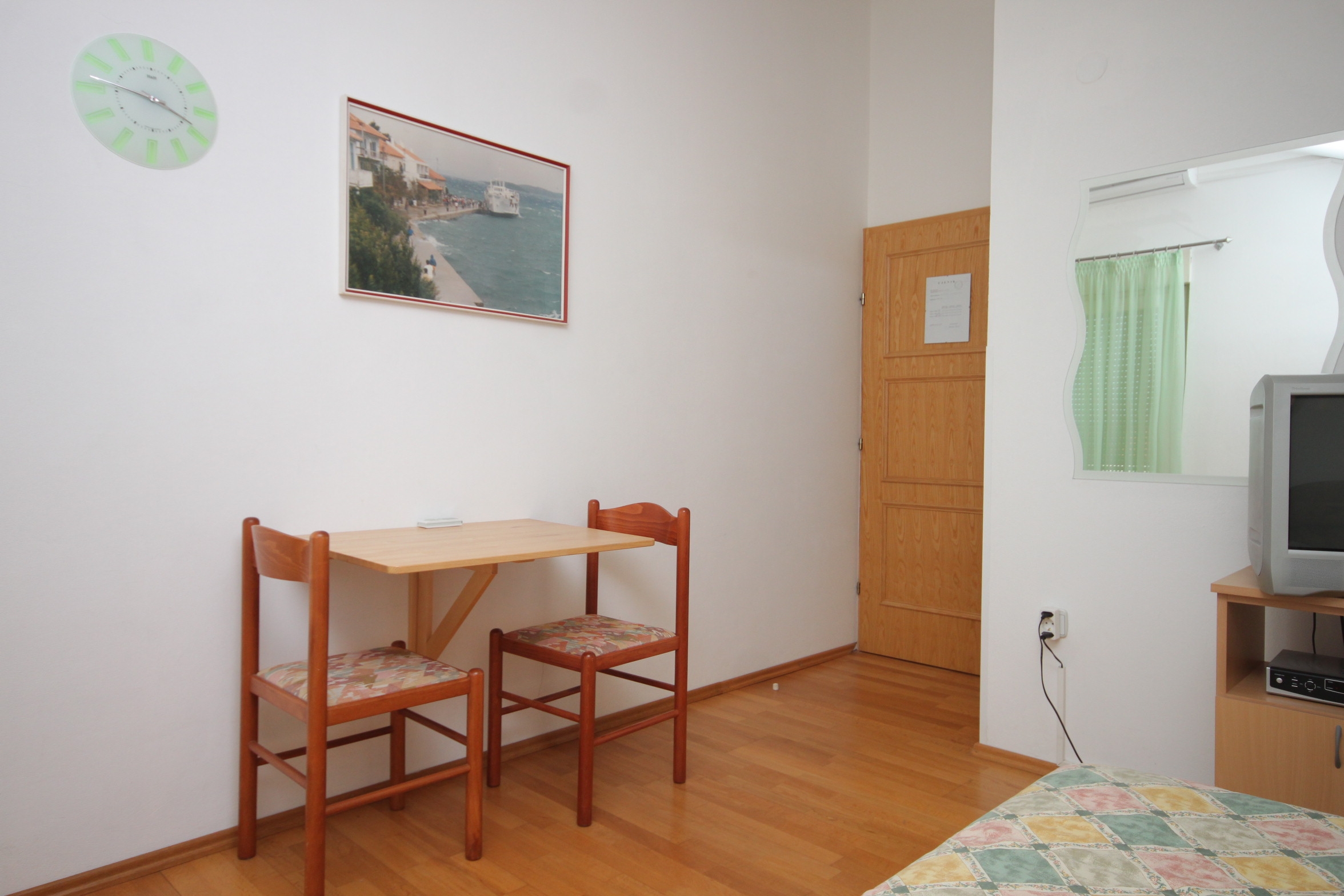 Studio flat can accommodate 2 guests. Beds are situated in 1 sleeping rooms, within 24m2. Guests can use a private terrace to enjoy the warm summer evenings. The studio offers the sea view. Food can be prepared using barbecue which is shared with other guests too. INCLUDED IN THE PRICE: tourist tax, final cleaning, air-conditioning, parking, internet, baby cot, iron, hairdryer. OBLIGATORY ADDITIONAL COSTS: short stay fee (surcharge depending on a number of booked nights: 30% - 1, 20% - 2, 10% - 3). The availability of additional services for your chosen dates of stay, as well as their prices (if none are listed) must be checked ahead of time. Any additional services not shown in the price calculation are payable directly to the property owner and only if used by the visitor.