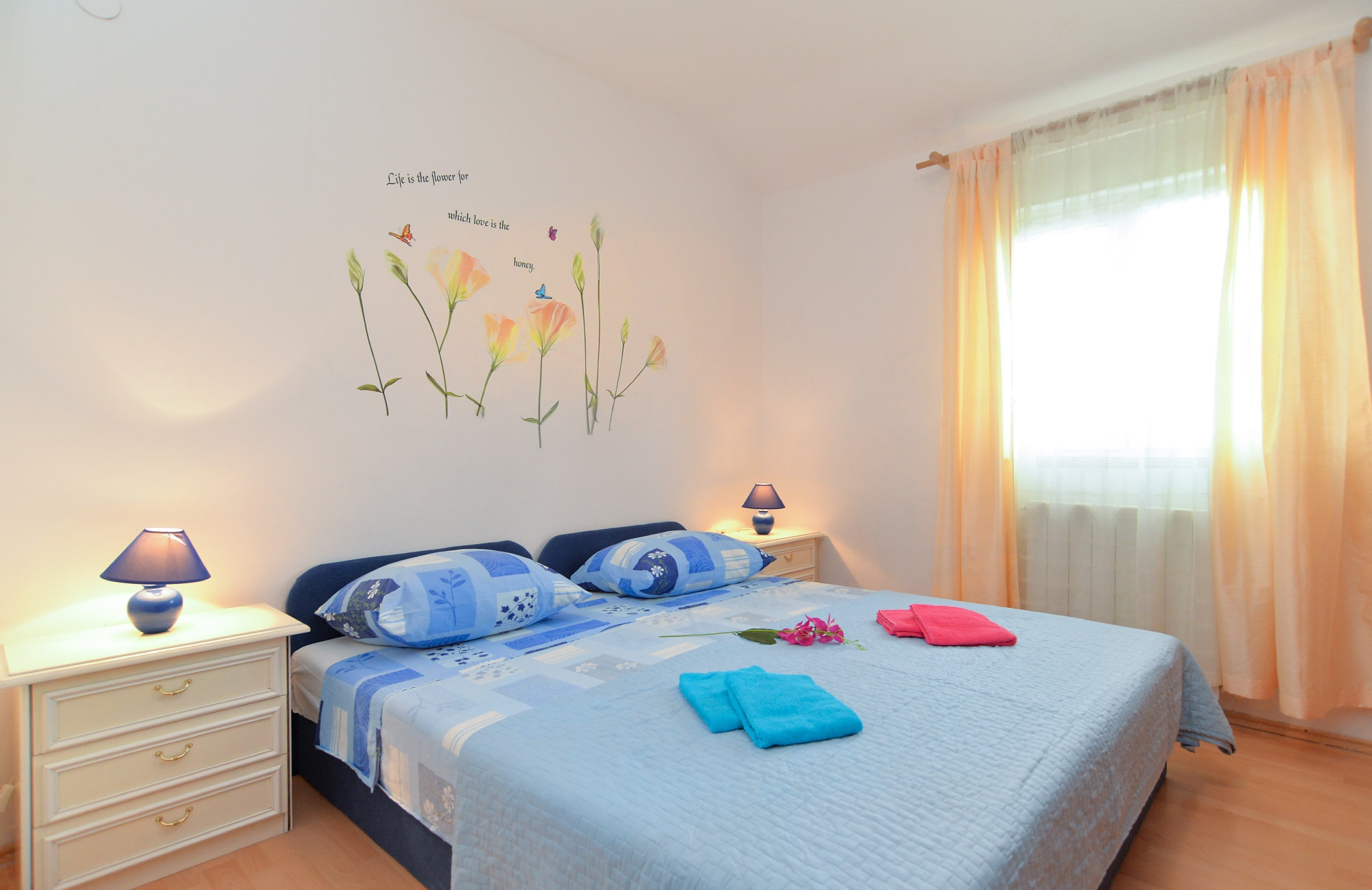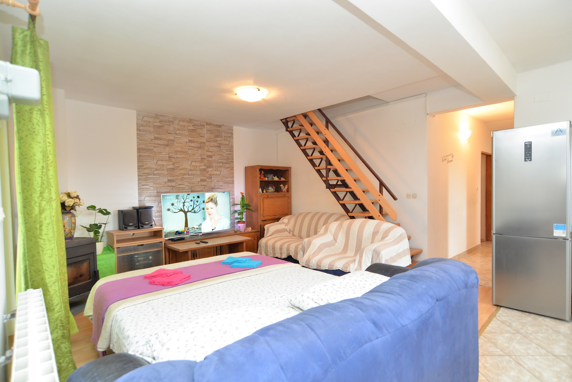 Apartment can accommodate 8 guests. Beds are situated in 3 sleeping rooms, but also in the living room, within 85m2. Guests can use a private terrace to enjoy the warm summer evenings. Food can be prepared using barbecue which is shared with other guests too. Shared pool is on disposal during stay. This accommodation unit welcomes pets at an additional charge. For the booked accommodation unit the deposit is paid directly to the owner upon check-in (deposit amount is displayed on the website) INCLUDED IN THE PRICE: tourist tax, final cleaning, air-conditioning, pool, parking, internet. OBLIGATORY ADDITIONAL COSTS: deposit (€300.00 one-time payment). OPTIONAL ADDITIONAL COSTS: pets (€10.00 per night). The availability of additional services for your chosen dates of stay, as well as their prices (if none are listed) must be checked ahead of time. Any additional services not shown in the price calculation are payable directly to the property owner and only if used by the visitor.