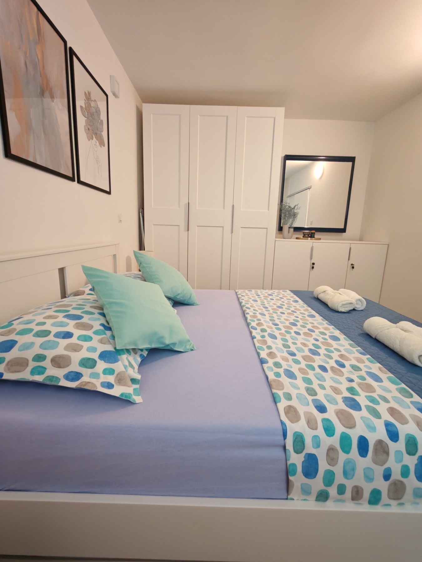 Apartment can accommodate 4 guests. Beds are situated in 1 sleeping rooms, but also in the living room, within 39m2. Guests can use a private terrace to enjoy the warm summer evenings. The apartment offers the sea view. For full enjoyment and relaxation there is a private barbecue for this accommodation guests only. This accommodation unit welcomes pets at no additional costs. INCLUDED IN THE PRICE: tourist tax, final cleaning, air-conditioning, parking, internet, boat mooring, pets, iron, hairdryer, portable barbecue, sunshade. The availability of additional services for your chosen dates of stay, as well as their prices (if none are listed) must be checked ahead of time. Any additional services not shown in the price calculation are payable directly to the property owner and only if used by the visitor. Discounts to the base price: free day 14=13 (for reservations of 14 or more days you get one free day for the stay until 31122026).