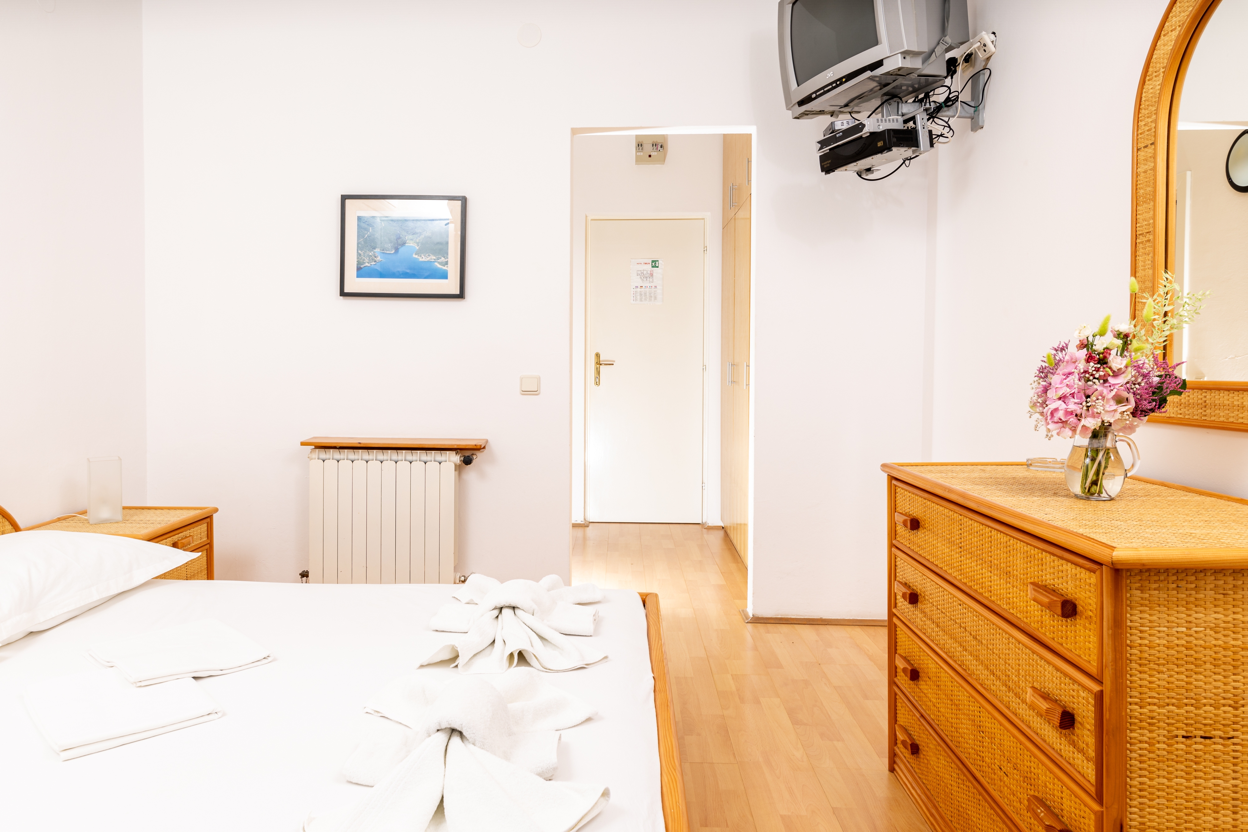 Room can accommodate 2 guests. Beds are situated in 1 sleeping rooms, within 15m2. Guests can use a private terrace to enjoy the warm summer evenings. The room offers the sea view. This accommodation unit welcomes pets at an additional charge. Reserved accommodation unit is a room with its own bathroom and there is no usage of kitchen. INCLUDED IN THE PRICE: half-board, final cleaning, air-conditioning, parking, internet, baby cot, hairdryer. OBLIGATORY ADDITIONAL COSTS: tourist tax (adults €0.93 - €1.80 nightperson, discount for children aged 12 - 17). OPTIONAL ADDITIONAL COSTS: boat (€65.00 per night), pets (€13.00 per night). The availability of additional services for your chosen dates of stay, as well as their prices (if none are listed) must be checked ahead of time. Any additional services not shown in the price calculation are payable directly to the property owner and only if used by the visitor.