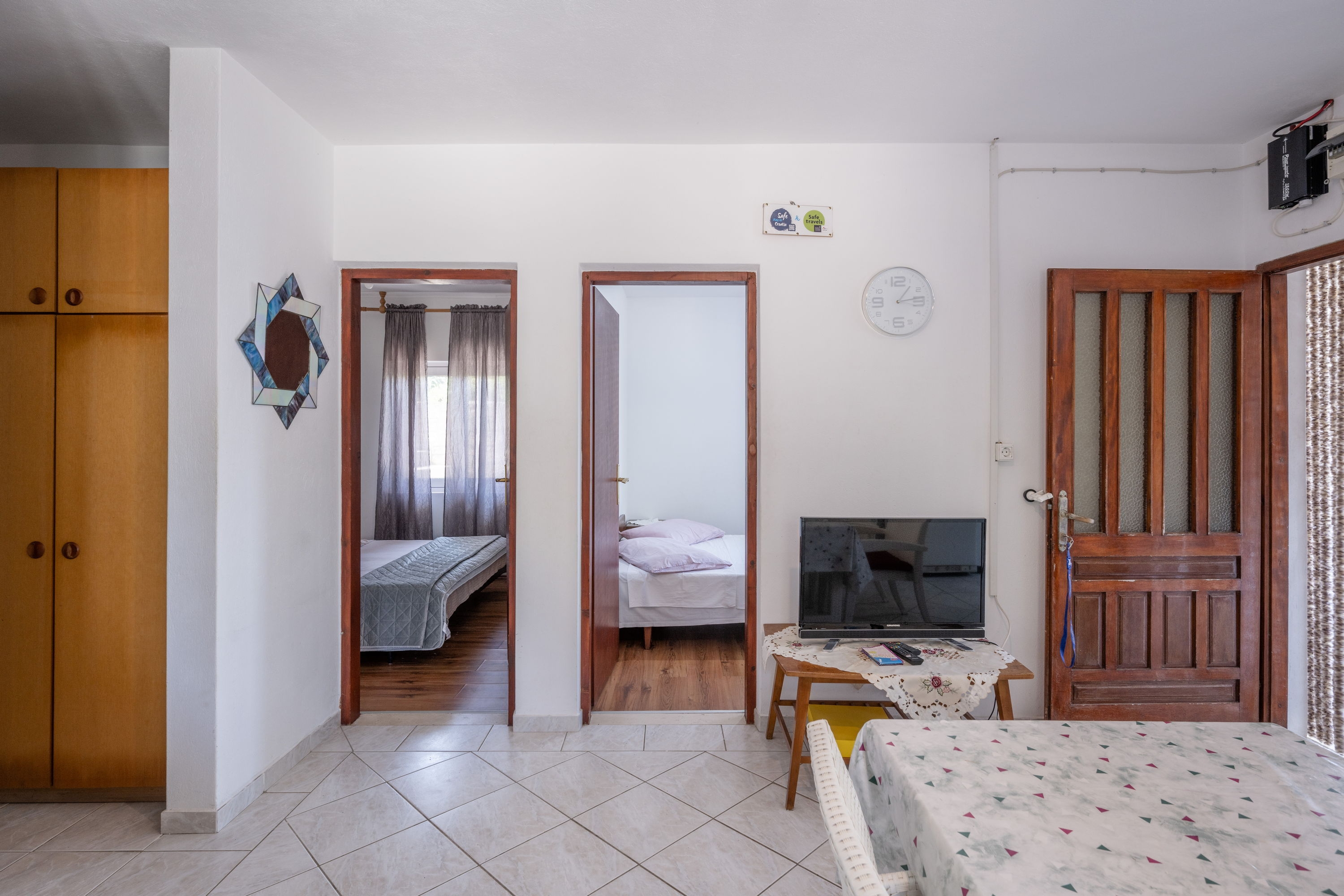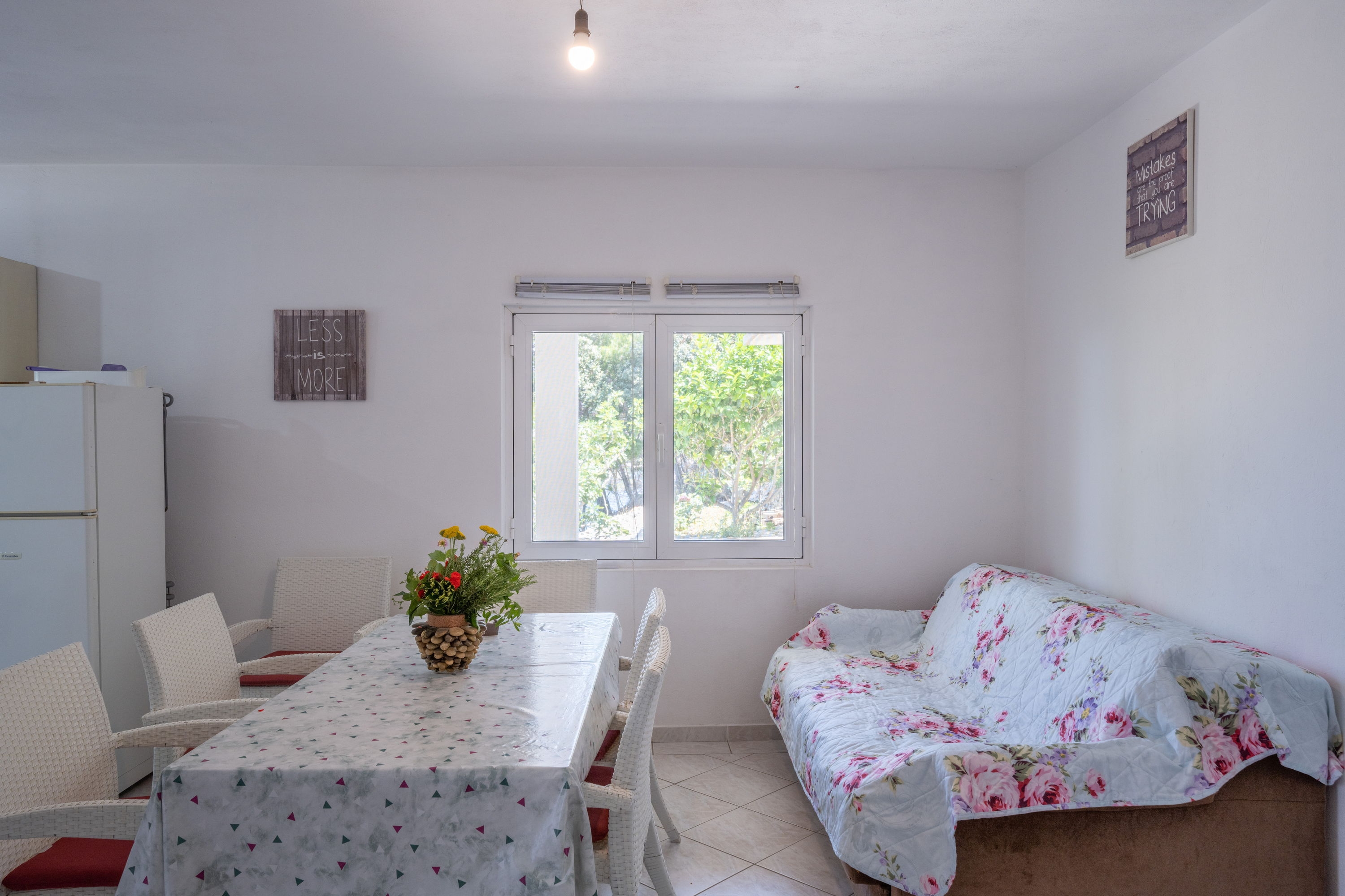 Apartment can accommodate 7 guests. Beds are situated in 3 sleeping rooms, but also in the dining room, within 87m2. Guests can use a private terrace to enjoy the warm summer evenings. The apartment offers the sea view. For full enjoyment and relaxation there is a private barbecue for this accommodation guests only. This accommodation unit welcomes pets at no additional costs. Notthe rooms of the booked accommodation unit are connectedone whole. INCLUDED IN THE PRICE: tourist tax, final cleaning, parking, internet, pets, baby cot, sunshade, sunchairs. OPTIONAL ADDITIONAL COSTS: additional bed (€15.00 per night). The availability of additional services for your chosen dates of stay, as well as their prices (if none are listed) must be checked ahead of time. Any additional services not shown in the price calculation are payable directly to the property owner and only if used by the visitor.