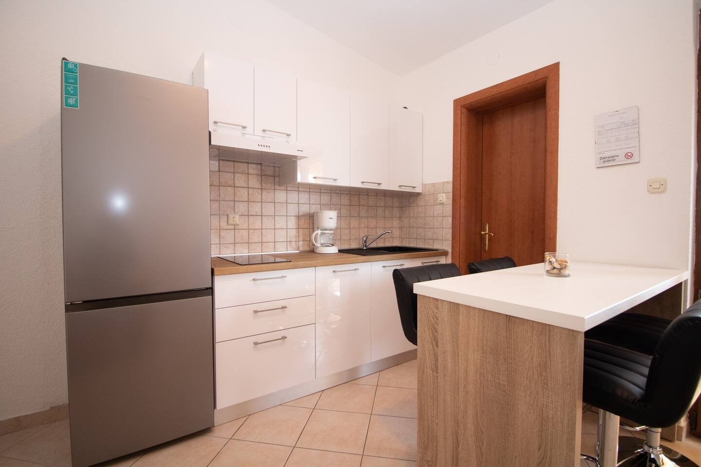 Apartment can accommodate 4 guests. Beds are situated in 1 sleeping rooms, but also in the living room, within 30m2. Guests can use a private balcony to enjoy the warm summer evenings. The apartment offers the sea view. Food can be prepared using barbecue which is shared with other guests too. INCLUDED IN THE PRICE: tourist tax, final cleaning, air-conditioning, parking, internet, hairdryer. The availability of additional services for your chosen dates of stay, as well as their prices (if none are listed) must be checked ahead of time. Any additional services not shown in the price calculation are payable directly to the property owner and only if used by the visitor.