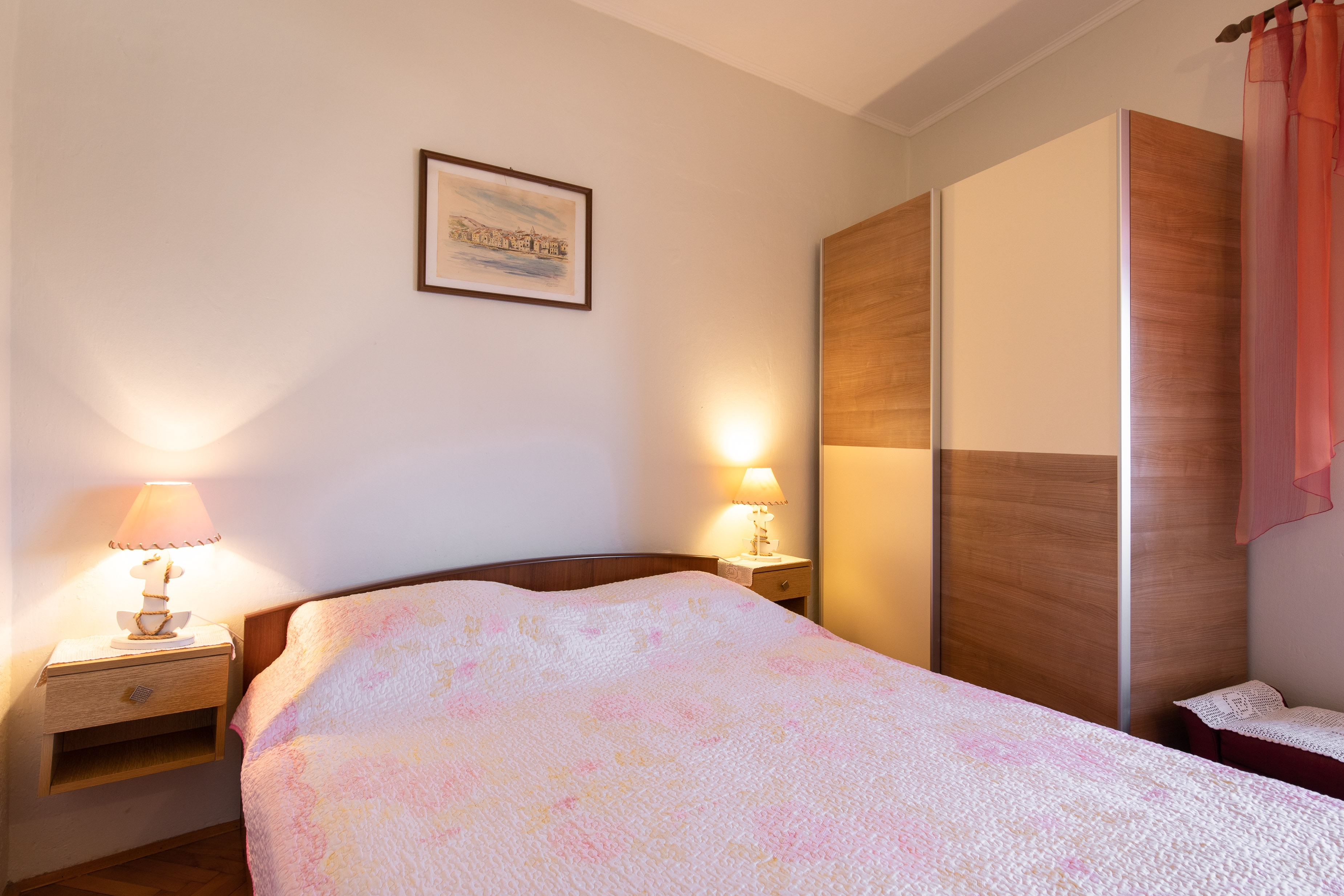 Apartment can accommodate 4 guests. Beds are situated in 2 sleeping rooms, within 51m2. Food can be prepared using barbecue which is shared with other guests too. There is no balcony or terrace in the reserved accommodation unit. INCLUDED IN THE PRICE: tourist tax, final cleaning, air-conditioning, parking, internet. OBLIGATORY ADDITIONAL COSTS: short stay fee (surcharge depending on a number of booked nights: 30% - 1, 20% - 2, 10% - 3). The availability of additional services for your chosen dates of stay, as well as their prices (if none are listed) must be checked ahead of time. Any additional services not shown in the price calculation are payable directly to the property owner and only if used by the visitor.