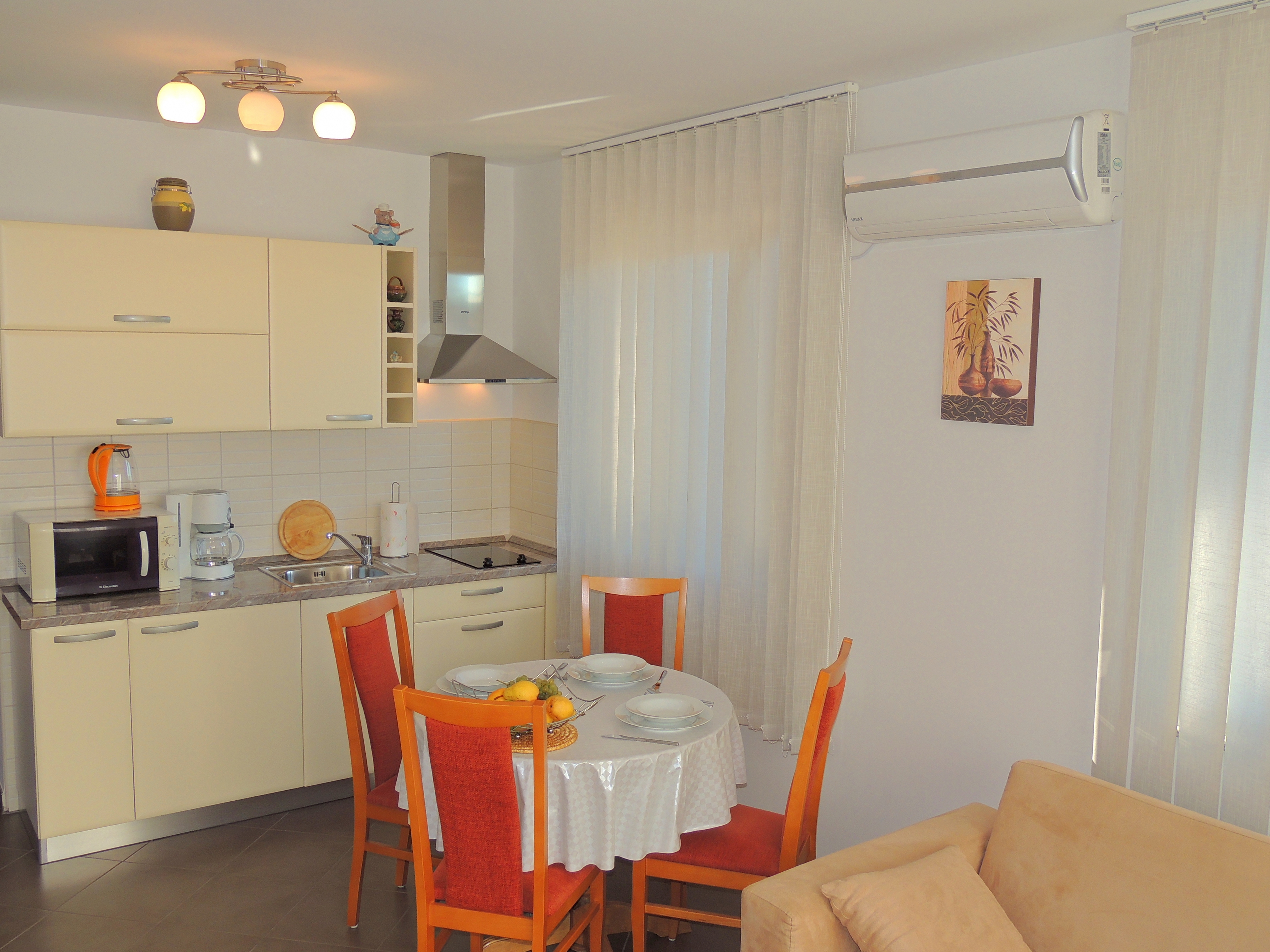 Apartment can accommodate 3 guests. Beds are situated in 1 sleeping rooms, within 34m2. Guests can use a private balcony to enjoy the warm summer evenings. This accommodation unit welcomes pets at an additional charge. INCLUDED IN THE PRICE: tourist tax, final cleaning, air-conditioning, parking, internet. OBLIGATORY ADDITIONAL COSTS: short stay fee (surcharge depending on a number of booked nights: 30% - 1, 20% - 2, 10% - 3). OPTIONAL ADDITIONAL COSTS: pets (€8.00 per night). The availability of additional services for your chosen dates of stay, as well as their prices (if none are listed) must be checked ahead of time. Any additional services not shown in the price calculation are payable directly to the property owner and only if used by the visitor.
