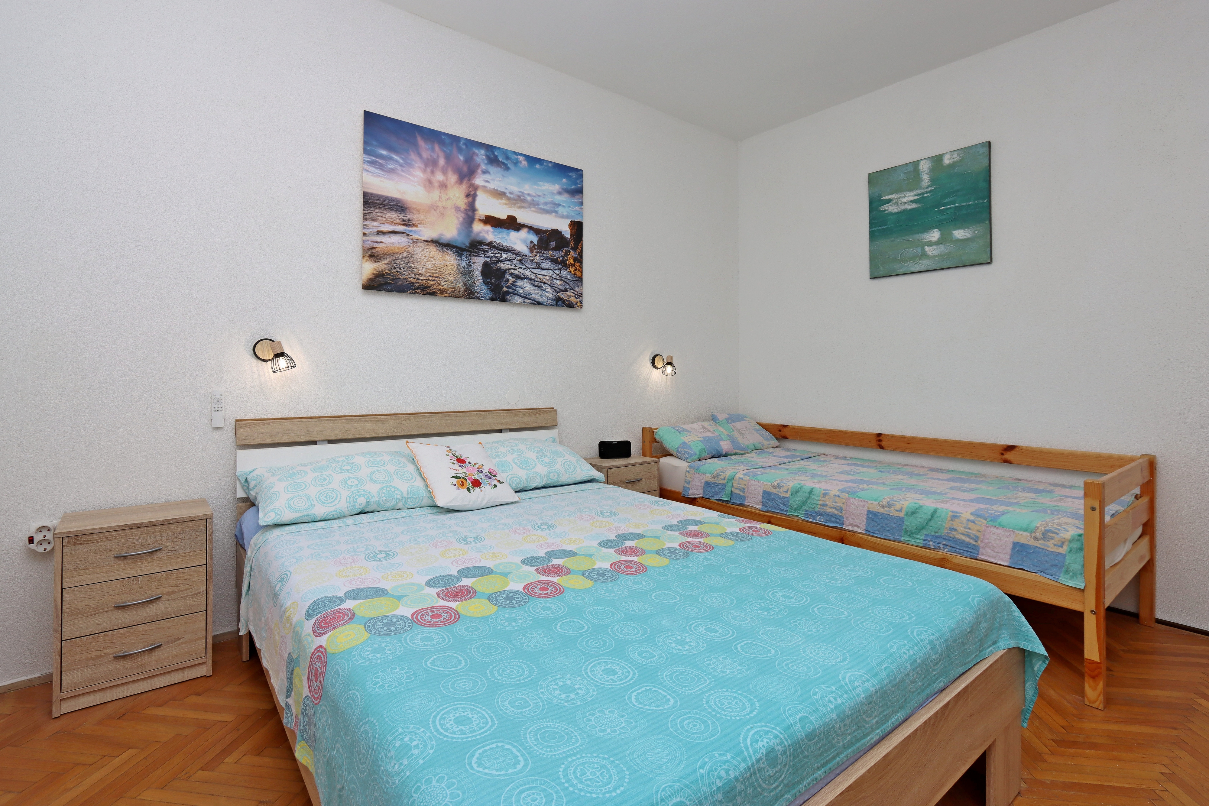 Apartment can accommodate 5 guests. Beds are situated in 2 sleeping rooms, within 53m2. Food can be prepared using barbecue which is shared with other guests too. This accommodation unit welcomes pets at no additional costs. There is no balcony or terrace in the reserved accommodation unit. INCLUDED IN THE PRICE: tourist tax, final cleaning, air-conditioning, parking, internet, laundry, pets, additional bed, iron, ironing board, hairdryer, portable barbecue. The availability of additional services for your chosen dates of stay, as well as their prices (if none are listed) must be checked ahead of time. Any additional services not shown in the price calculation are payable directly to the property owner and only if used by the visitor.