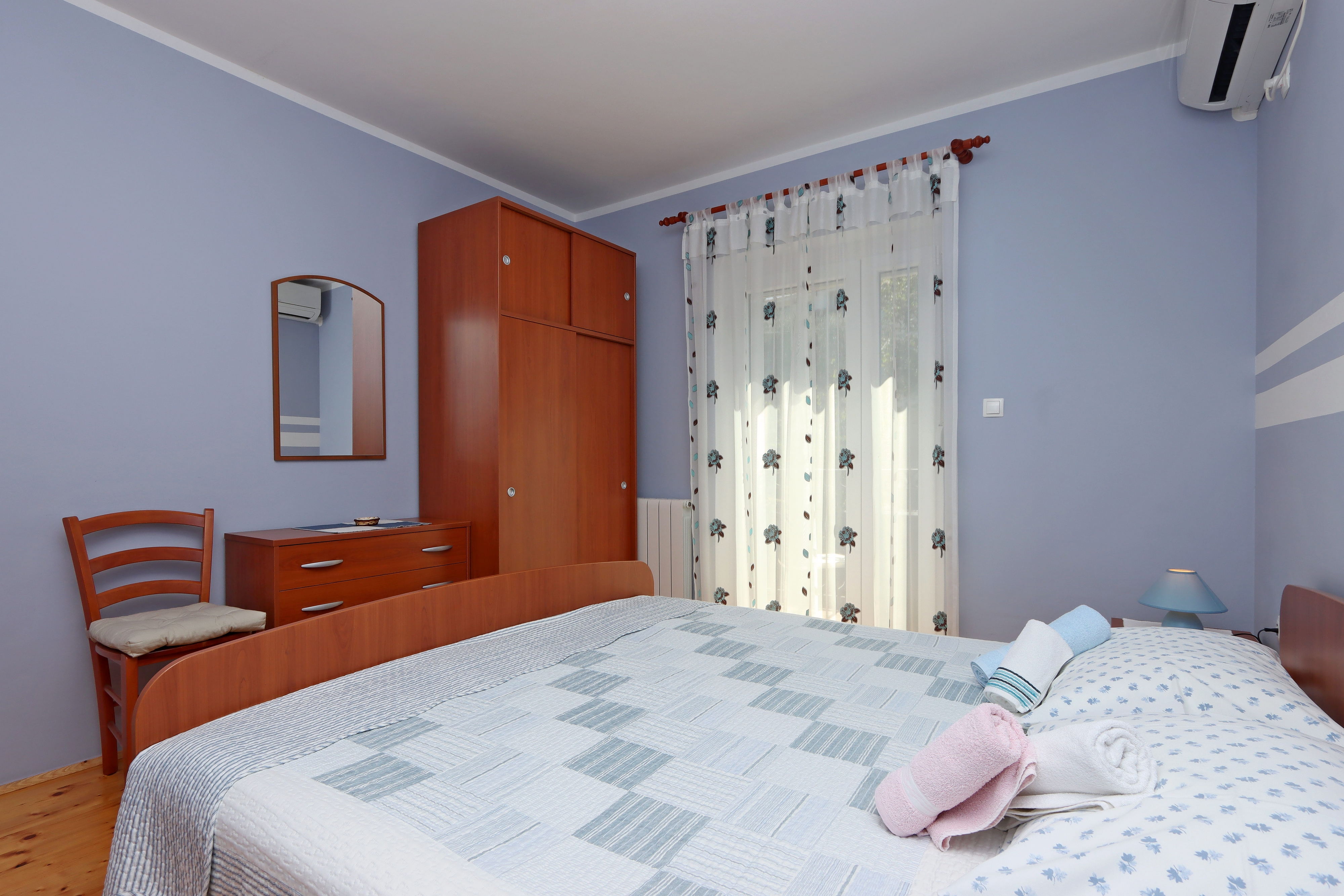 Room can accommodate 2 guests. Beds are situated in 1 sleeping rooms, within 16m2. Guests can use a private balcony to enjoy the warm summer evenings. Food can be prepared using barbecue which is shared with other guests too. Reserved accommodation unit is a room with its own bathroom and there is no usage of kitchen. Some of the rooms of the accommodation unit are not connected with the rest of the unit. INCLUDED IN THE PRICE: tourist tax, final cleaning, central heating, parking, internet, iron, ironing board, hairdryer. OBLIGATORY ADDITIONAL COSTS: short stay fee (surcharge depending on a number of booked nights: 30% - 1, 20% - 2, 10% - 3). OPTIONAL ADDITIONAL COSTS: air-conditioning (€7.00 per night), laundry (€10.00 washing). The availability of additional services for your chosen dates of stay, as well as their prices (if none are listed) must be checked ahead of time. Any additional services not shown in the price calculation are payable directly to the property owner and only if used by the visitor.