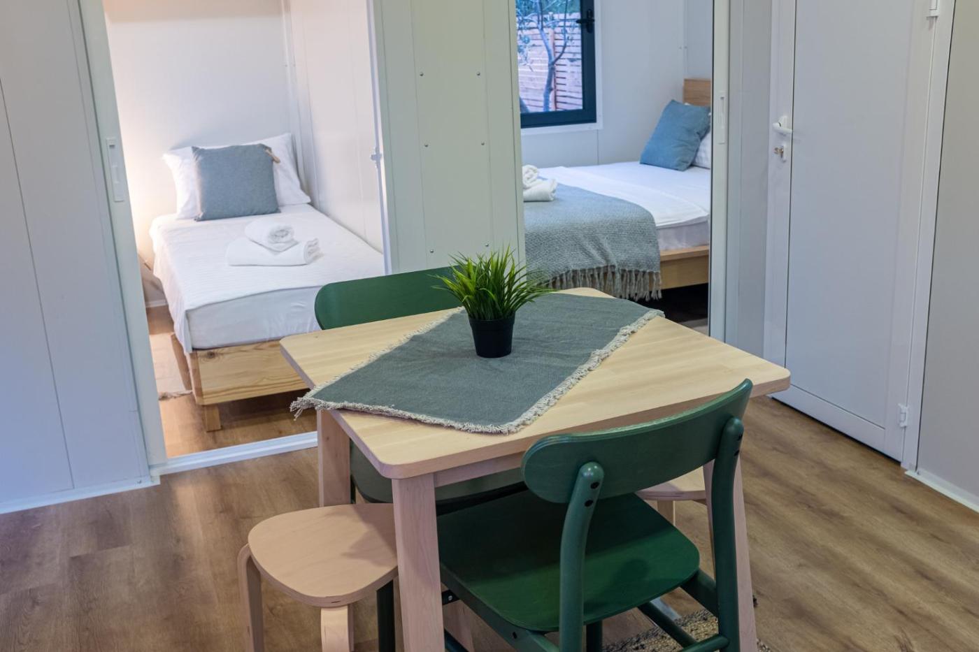 Premium Two-Bedroom Mobile Home with Terrace. Featuring a private entrance, this air-conditioned mobile home comprises 1 living room, 2 separate bedrooms and 1 bathroom with a shower and a hairdryer. Meals can be prepared in the kitchen, which comes with a stovetop, a refrigerator and an electric kettle. Boasting a terrace with garden views, this mobile home also provides a seating area and a flat-screen TV with cable channels. The unit offers 4 beds. ;