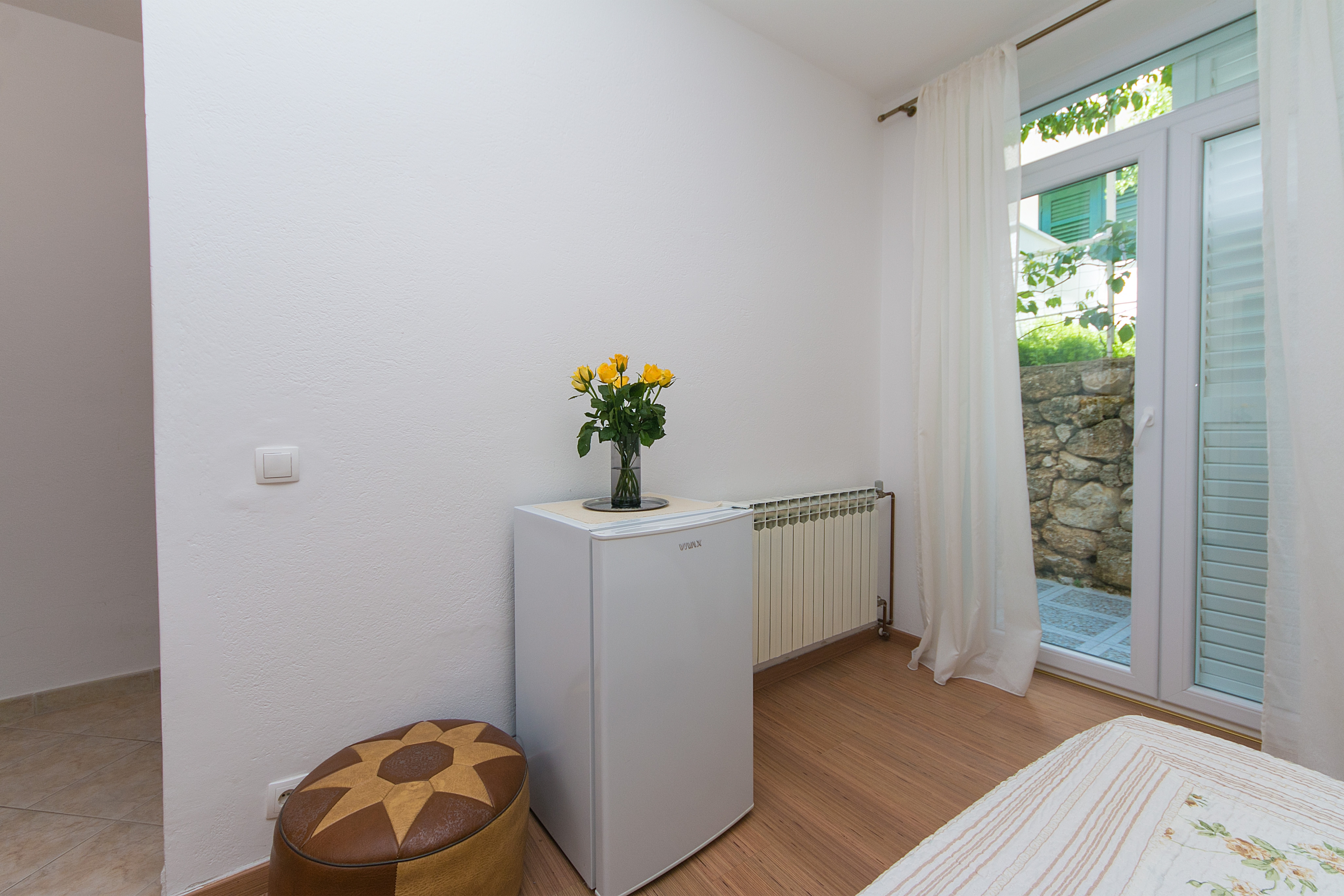 Room can accommodate 2 guests. Beds are situated in 1 sleeping rooms, within 17m2. Guests can use a private terrace to enjoy the warm summer evenings. Other guests or hosts pass through the terrace of the booked accommodation unit. Reserved accommodation unit is a room with its own bathroom and there is no usage of kitchen. INCLUDED IN THE PRICE: tourist tax, final cleaning, parking, internet, hairdryer. OBLIGATORY ADDITIONAL COSTS: short stay fee (surcharge depending on a number of booked nights: 30% - 1, 20% - 2, 10% - 3). OPTIONAL ADDITIONAL COSTS: air-conditioning (€5.00 per night), laundry (€10.00 washing). The availability of additional services for your chosen dates of stay, as well as their prices (if none are listed) must be checked ahead of time. Any additional services not shown in the price calculation are payable directly to the property owner and only if used by the visitor.