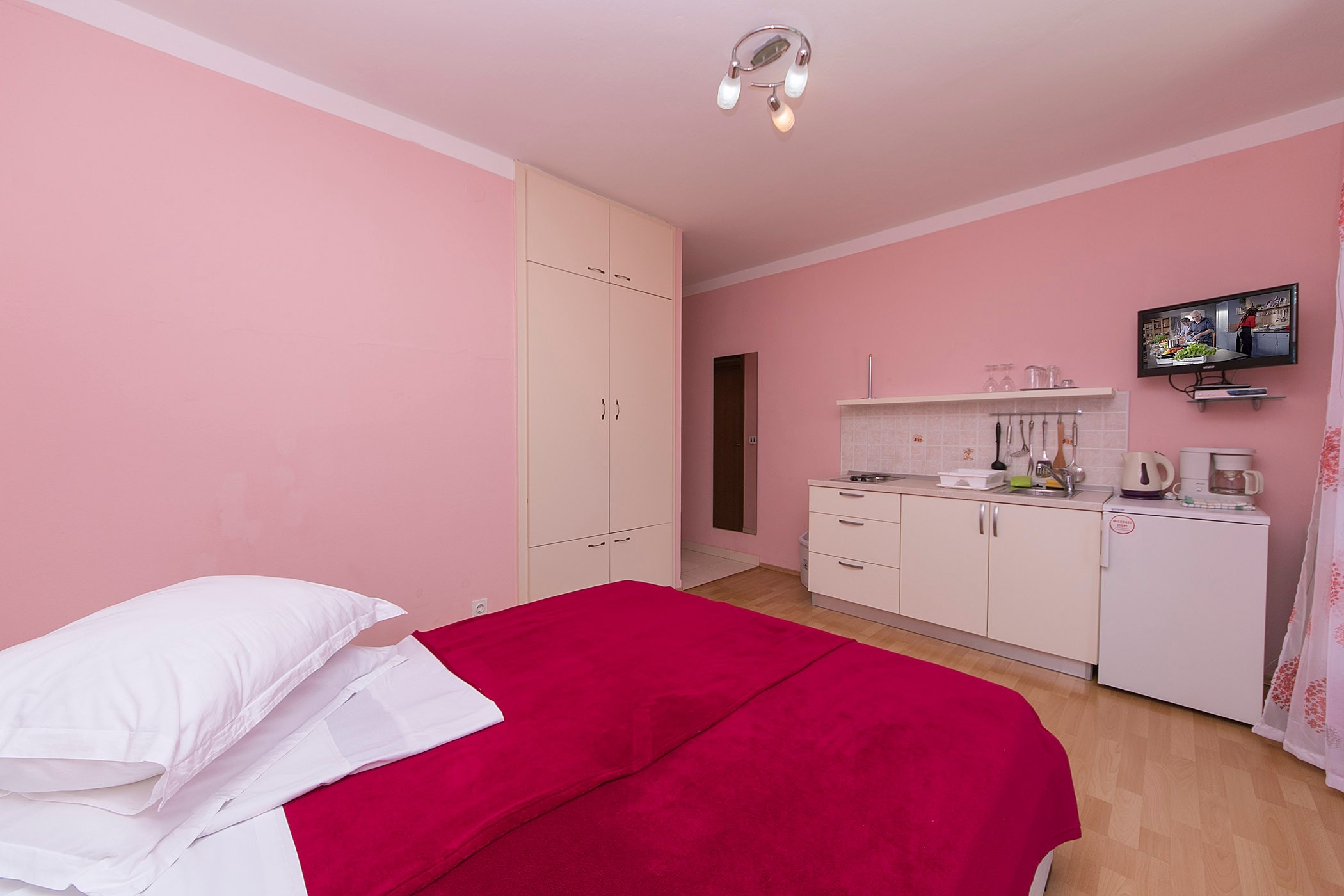 Studio flat can accommodate 2 guests. Beds are situated in 1 sleeping rooms, within 22m2. Guests can use a private balcony to enjoy the warm summer evenings. The studio offers the sea view. INCLUDED IN THE PRICE: tourist tax, final cleaning, air-conditioning, parking, internet, baby cot. The availability of additional services for your chosen dates of stay, as well as their prices (if none are listed) must be checked ahead of time. Any additional services not shown in the price calculation are payable directly to the property owner and only if used by the visitor.