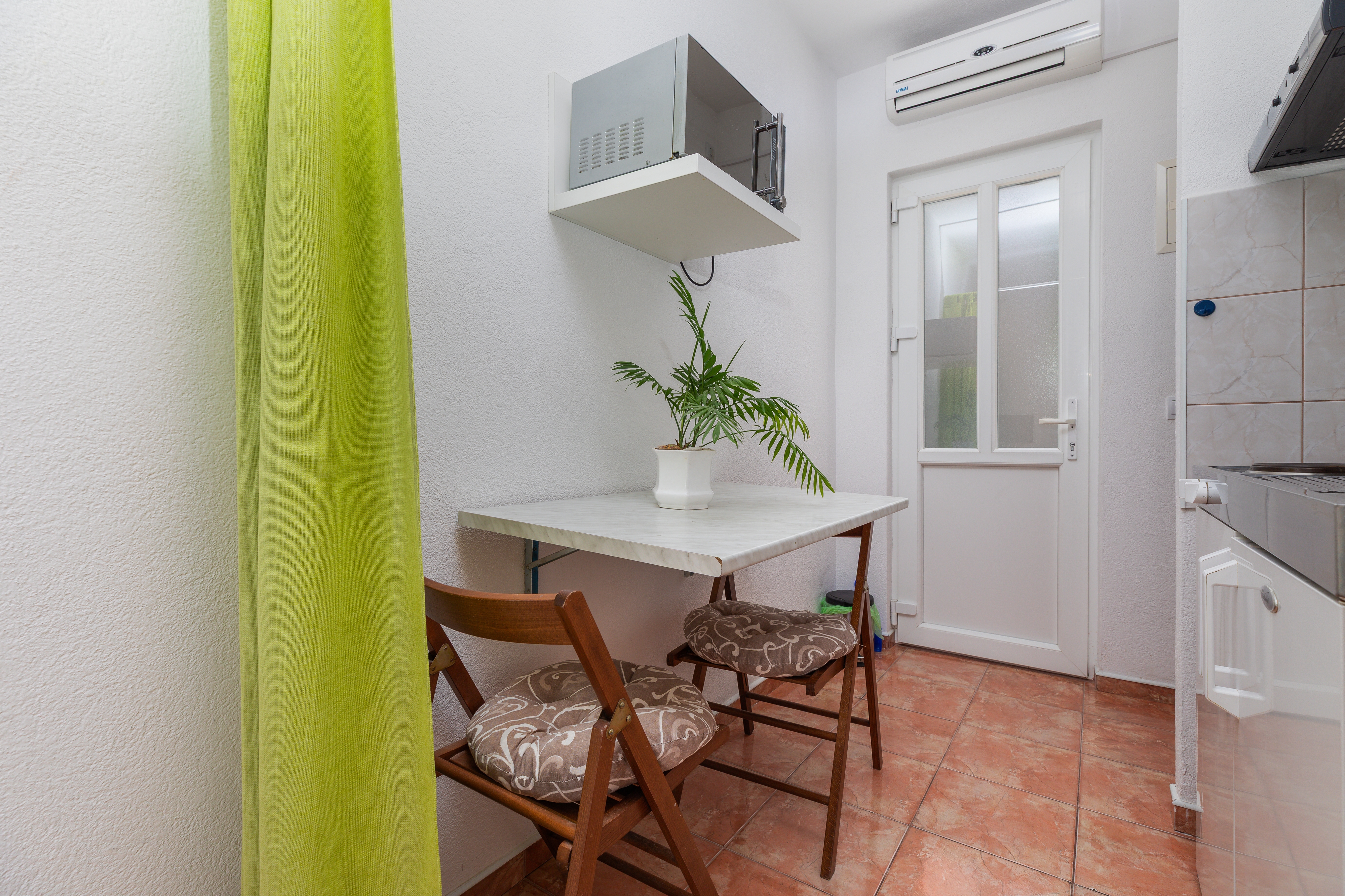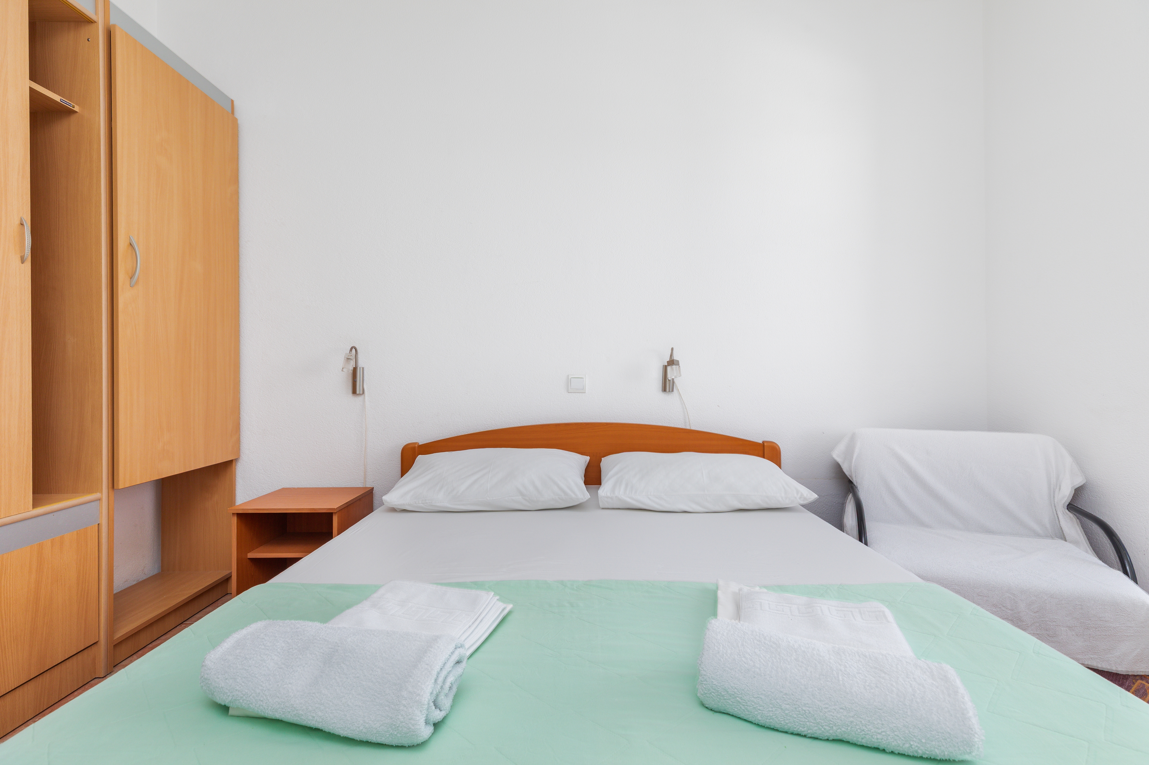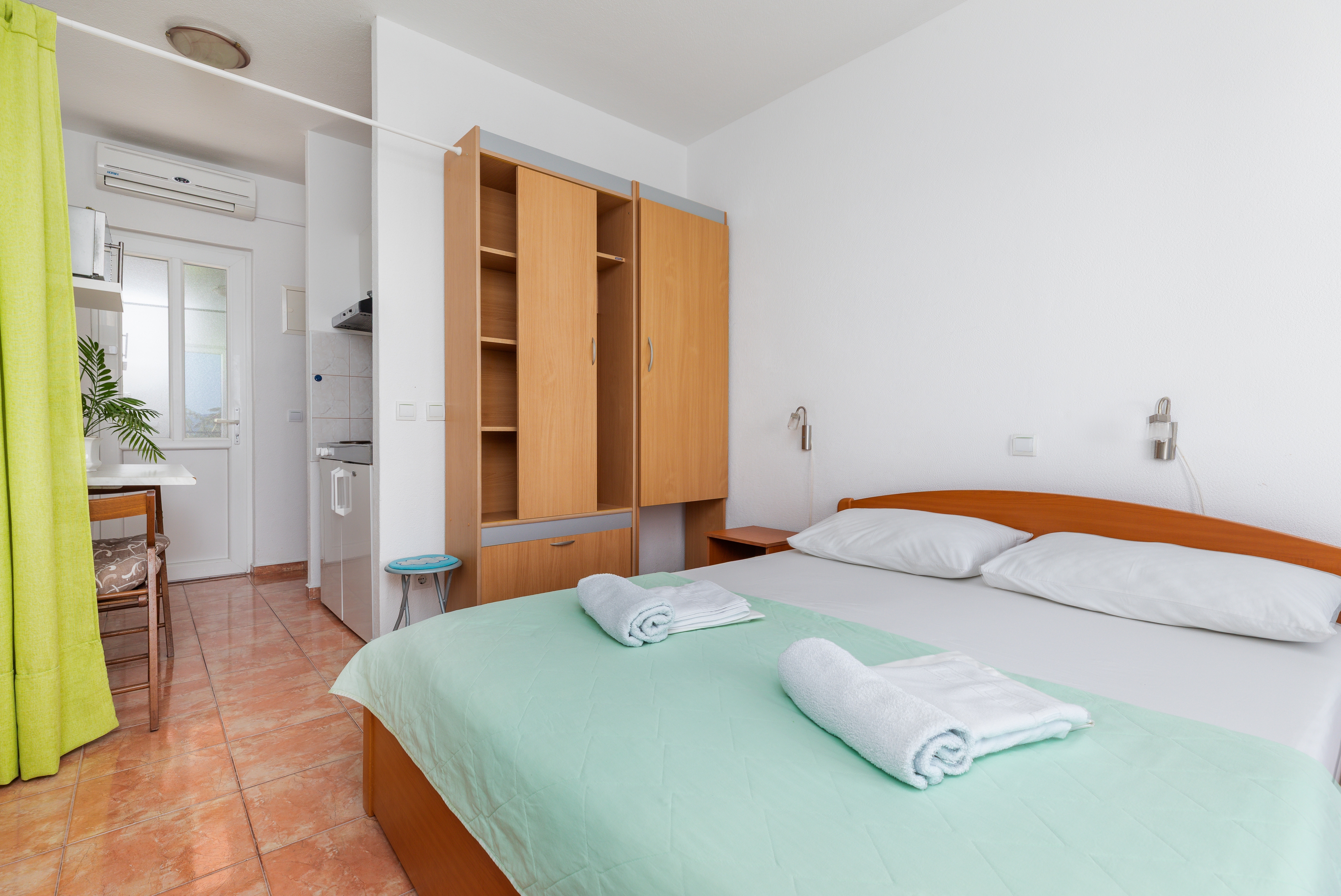 Studio flat can accommodate 2 guests. Beds are situated in 1 sleeping rooms, within 25m2. Guests can use a private balcony to enjoy the warm summer evenings. The studio offers the sea view. INCLUDED IN THE PRICE: tourist tax, final cleaning, air-conditioning, parking, internet, 1 bed for children (included in the price). OBLIGATORY ADDITIONAL COSTS: short stay fee (surcharge depending on a number of booked nights: 30% - 1, 20% - 2, 10% - 3). The availability of additional services for your chosen dates of stay, as well as their prices (if none are listed) must be checked ahead of time. Any additional services not shown in the price calculation are payable directly to the property owner and only if used by the visitor.