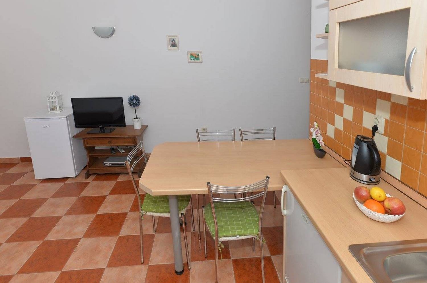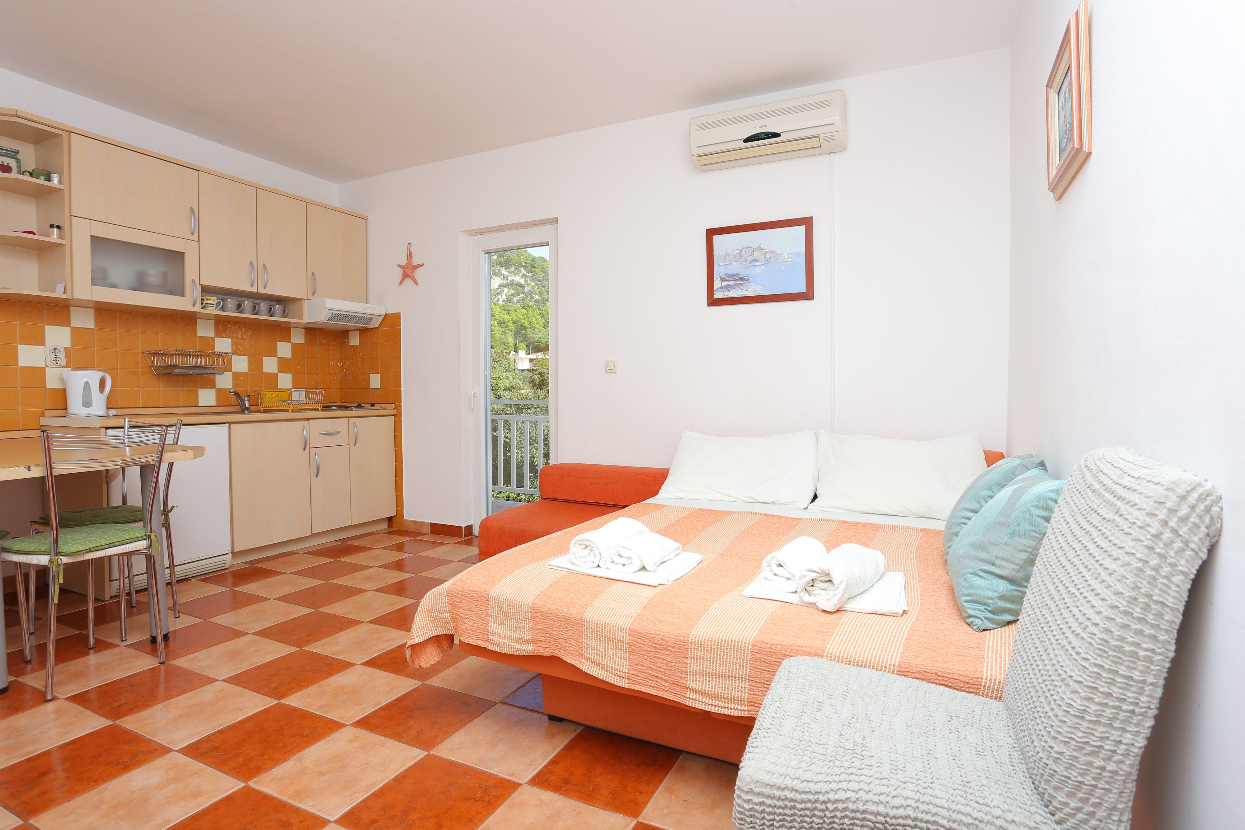 Apartment can accommodate 4 guests. Beds are situated in 1 sleeping rooms, but also in the living room, within 34m2. Guests can use a private balcony to enjoy the warm summer evenings. The apartment offers the sea view. Food can be prepared using barbecue which is shared with other guests too. This accommodation unit welcomes pets at an additional charge. INCLUDED IN THE PRICE: tourist tax, final cleaning, air-conditioning, parking, internet, laundry, baby cot, iron, hairdryer, portable barbecue. OBLIGATORY ADDITIONAL COSTS: short stay fee (surcharge depending on a number of booked nights: 30% - 1, 20% - 2, 10% - 3). OPTIONAL ADDITIONAL COSTS: pets (€10.00 per night). The availability of additional services for your chosen dates of stay, as well as their prices (if none are listed) must be checked ahead of time. Any additional services not shown in the price calculation are payable directly to the property owner and only if used by the visitor.