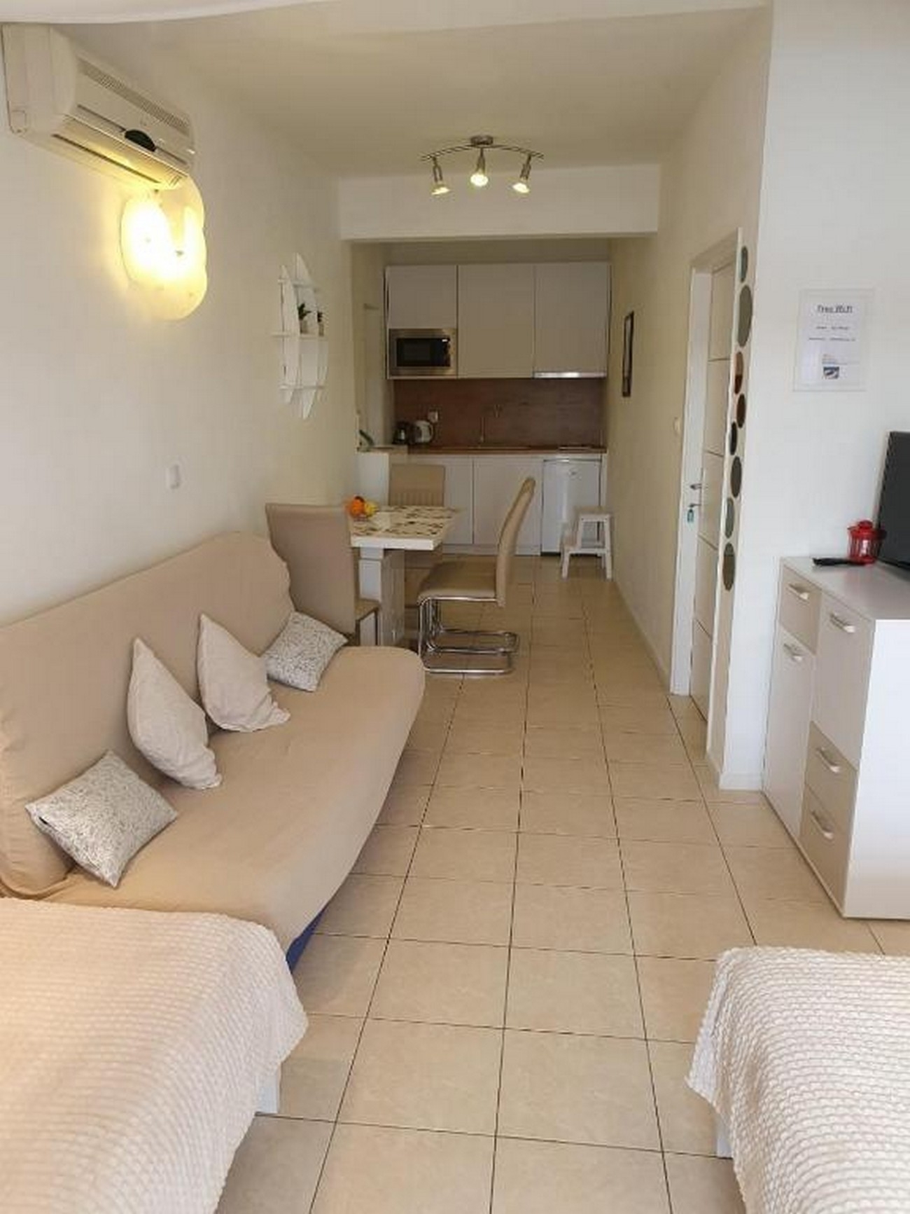 Apartment can accommodate 4 guests. Beds are situated in 1 sleeping rooms, but also in the living room, within 30m2. Guests can use a private balcony to enjoy the warm summer evenings. The apartment offers the sea view. INCLUDED IN THE PRICE: tourist tax, final cleaning, air-conditioning, parking, internet. OBLIGATORY ADDITIONAL COSTS: short stay fee (surcharge depending on a number of booked nights: 30% - 1, 20% - 2, 10% - 3). The availability of additional services for your chosen dates of stay, as well as their prices (if none are listed) must be checked ahead of time. Any additional services not shown in the price calculation are payable directly to the property owner and only if used by the visitor.