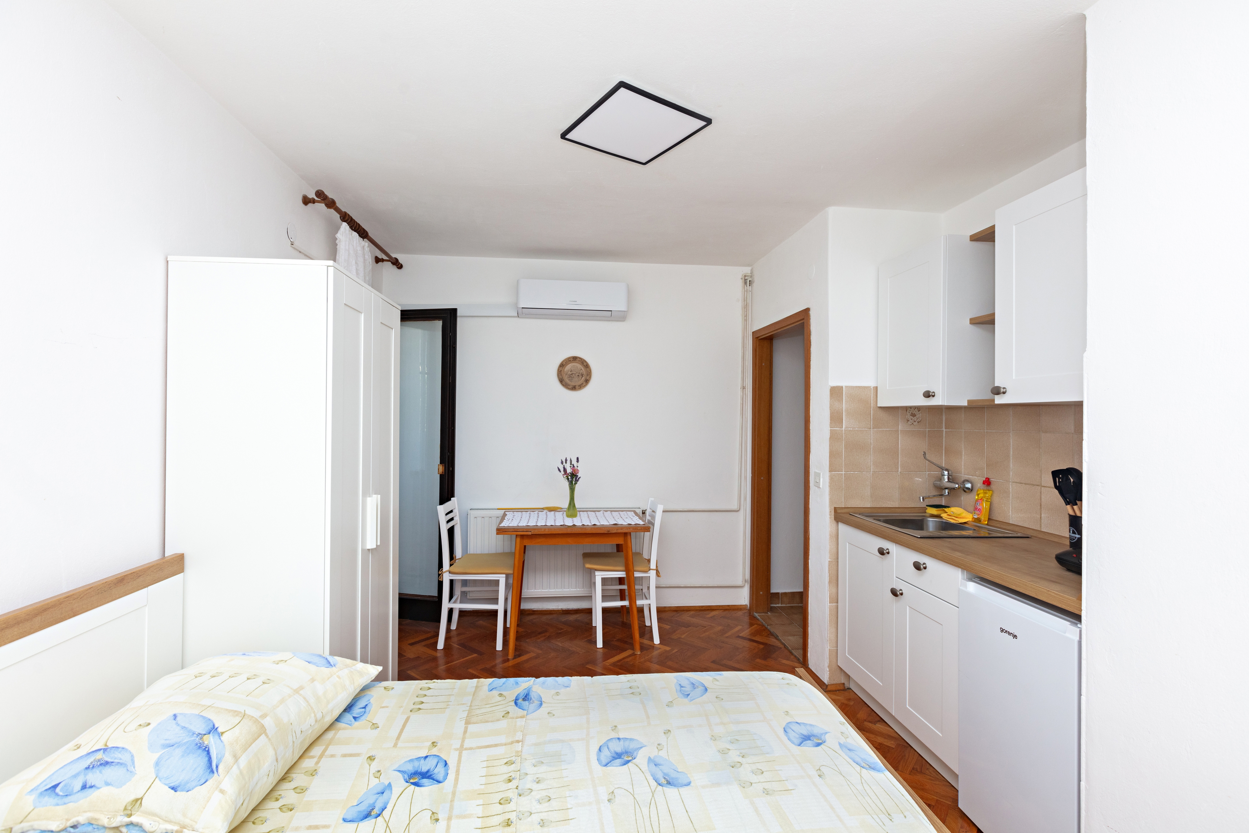 Studio flat can accommodate 2 guests. Beds are situated in 1 sleeping rooms, within 20m2. Guests can use a private balcony to enjoy the warm summer evenings. Food can be prepared using barbecue which is shared with other guests too. INCLUDED IN THE PRICE: tourist tax, final cleaning, air-conditioning, parking, internet, portable barbecue. OBLIGATORY ADDITIONAL COSTS: short stay fee (surcharge depending on a number of booked nights: 30% - 1, 20% - 2, 10% - 3). The availability of additional services for your chosen dates of stay, as well as their prices (if none are listed) must be checked ahead of time. Any additional services not shown in the price calculation are payable directly to the property owner and only if used by the visitor.