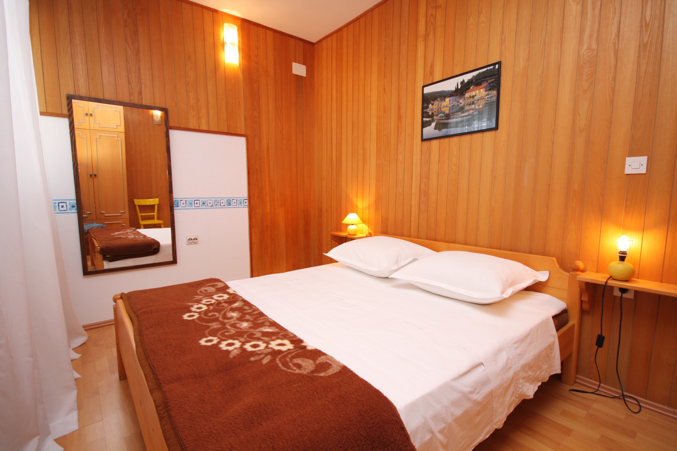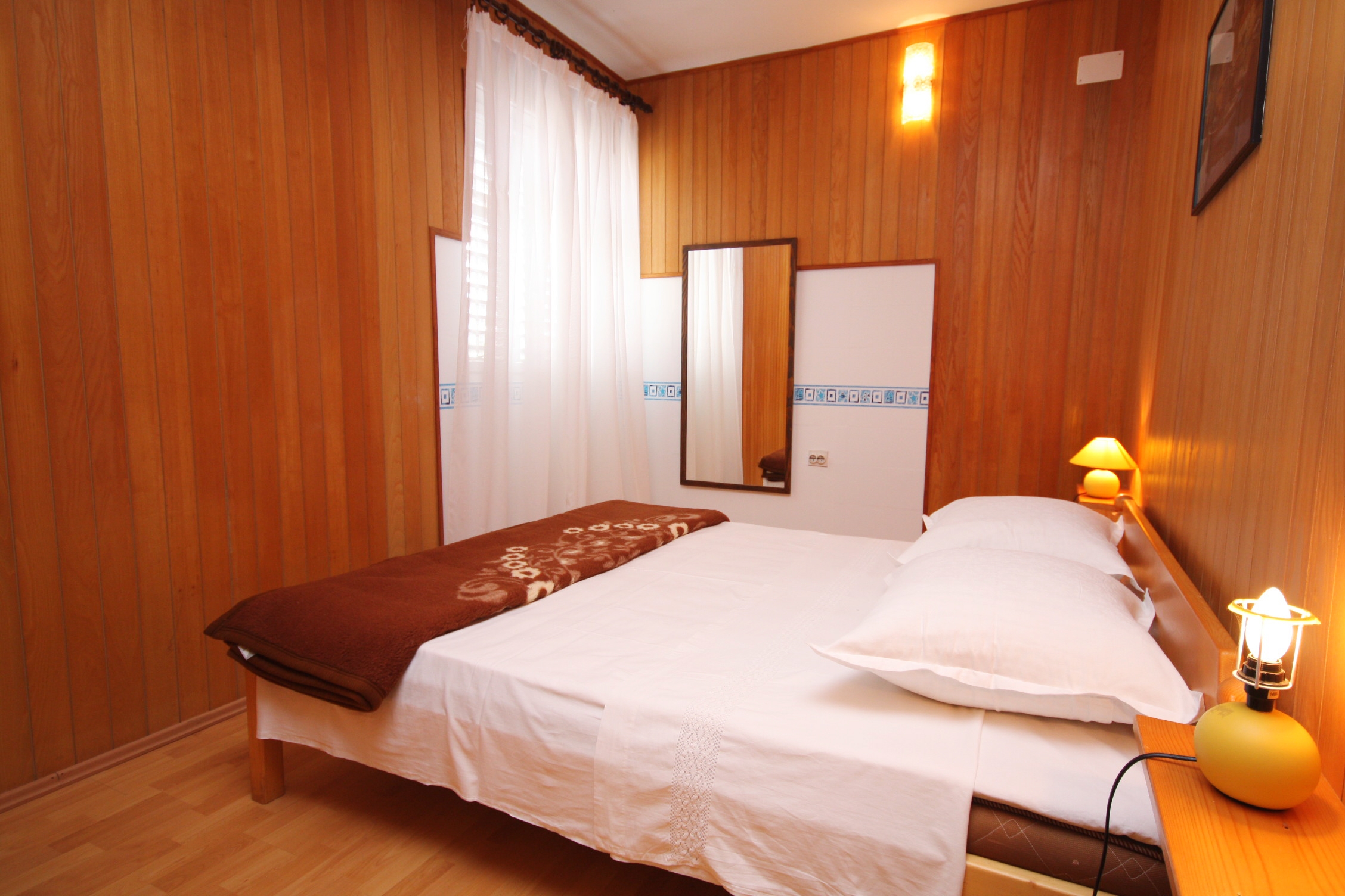 House 5063 in the town of Jezera, Murter - North Dalmatia has accommodation units of type Apartment (3) and is 150 m away from the sea. The nearest beach to this accommodation is a pebble beach. Other guests will may be found in the other apartments which are a part of this house. During your holiday, your hosts will also be present in the house. The house owner is under no obligation to accept additional persons and pets that were not stated in the reservation request and it is necessary to report them in advance.AMENITIES Courtyard (150m2), Parking lot (Number of parking spaces: 2, Distance from the house: In the courtyard), Barbecue: shared, WiFi Internet, Laundry service, Ironing board, Baby cot LOCATION AND ACCESS Car access possible: Yes The facility is situated in relatively quiet surroundings The property isnt surrounded by greenery DISTANCES Sea: 150 m Beach: 150 m Center: 300 m Shop: 380 m Urgent medical care: 3 km