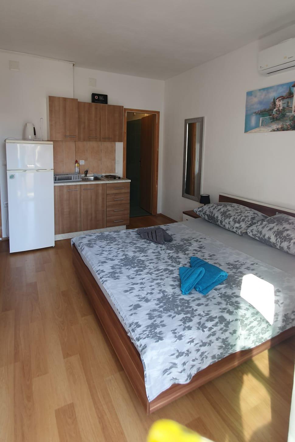 Studio flat can accommodate 2 guests. Beds are situated in 1 sleeping rooms, within 20m2. There is no balcony or terrace in the reserved accommodation unit. INCLUDED IN THE PRICE: tourist tax, final cleaning, air-conditioning, parking, internet. The availability of additional services for your chosen dates of stay, as well as their prices (if none are listed) must be checked ahead of time. Any additional services not shown in the price calculation are payable directly to the property owner and only if used by the visitor. Discounts to the base price: special (realize an additional discount of 15% on your reservation).