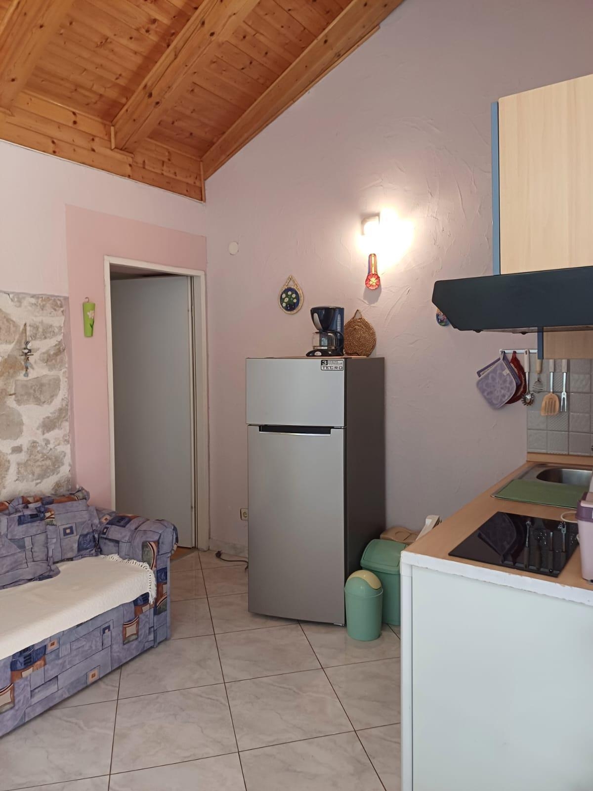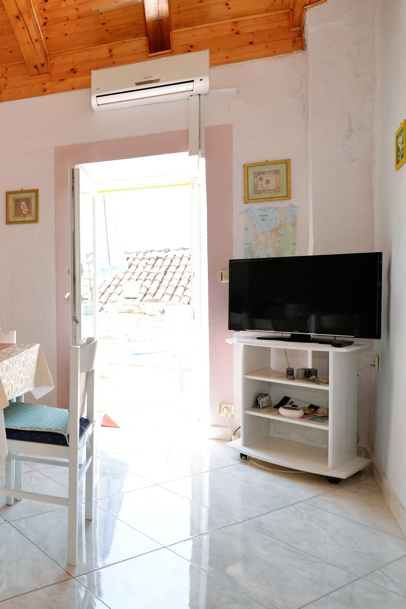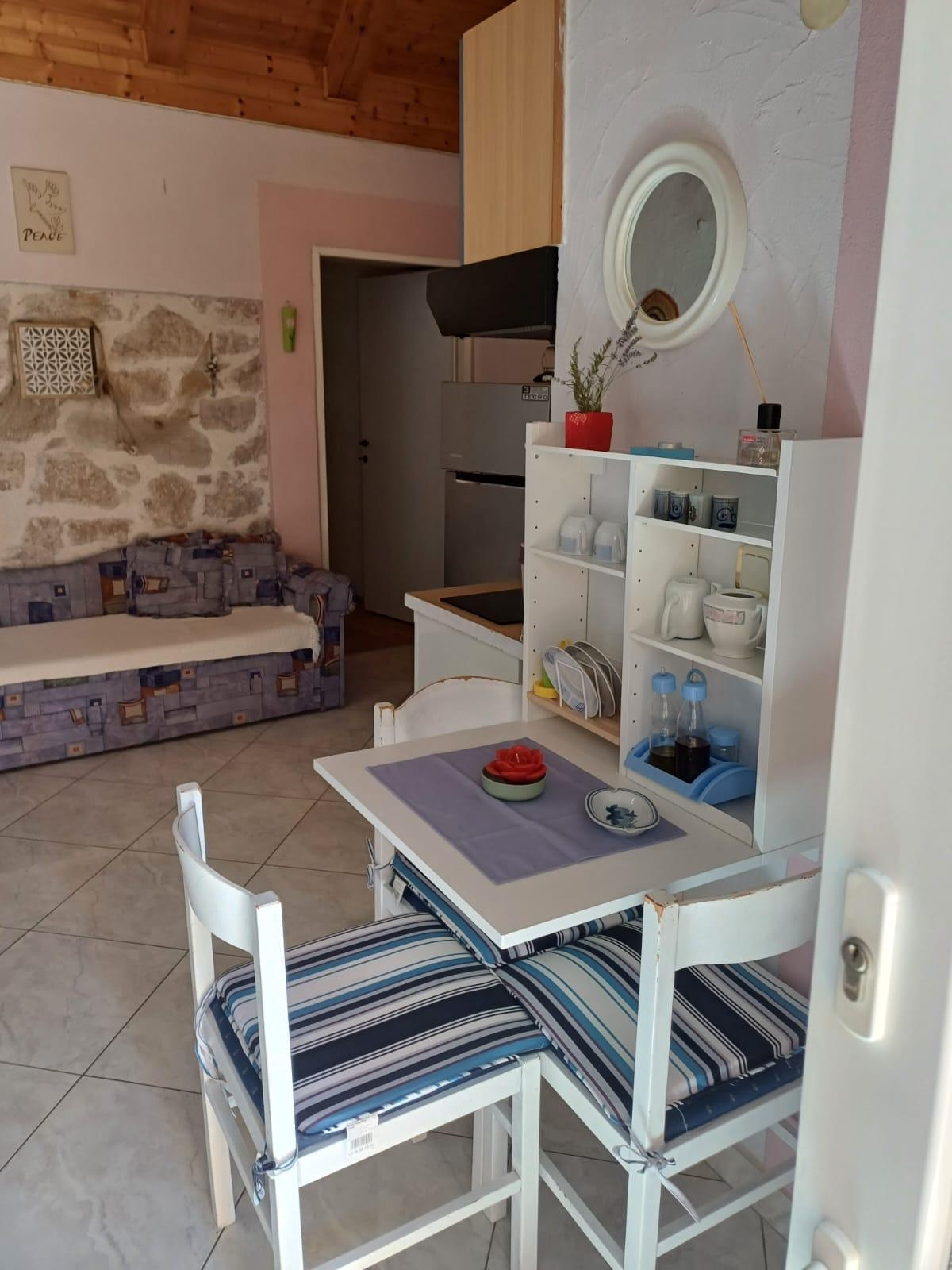 Apartment can accommodate 3 guests. Beds are situated in 1 sleeping rooms, but also in the living room, within 25m2. Guests can use a private terrace to enjoy the warm summer evenings. The apartment offers the sea view. Food can be prepared using barbecue which is shared with other guests too. This accommodation unit welcomes pets at an additional charge. INCLUDED IN THE PRICE: tourist tax, final cleaning, parking, internet, iron, ironing board, hairdryer, portable barbecue. OBLIGATORY ADDITIONAL COSTS: short stay fee (surcharge depending on a number of booked nights: 30% - 1, 20% - 2, 10% - 3). OPTIONAL ADDITIONAL COSTS: air-conditioning (€10.00 per night), laundry (€8.00 washing), pets (€20.00 per night). The availability of additional services for your chosen dates of stay, as well as their prices (if none are listed) must be checked ahead of time. Any additional services not shown in the price calculation are payable directly to the property owner and only if used by the visitor.