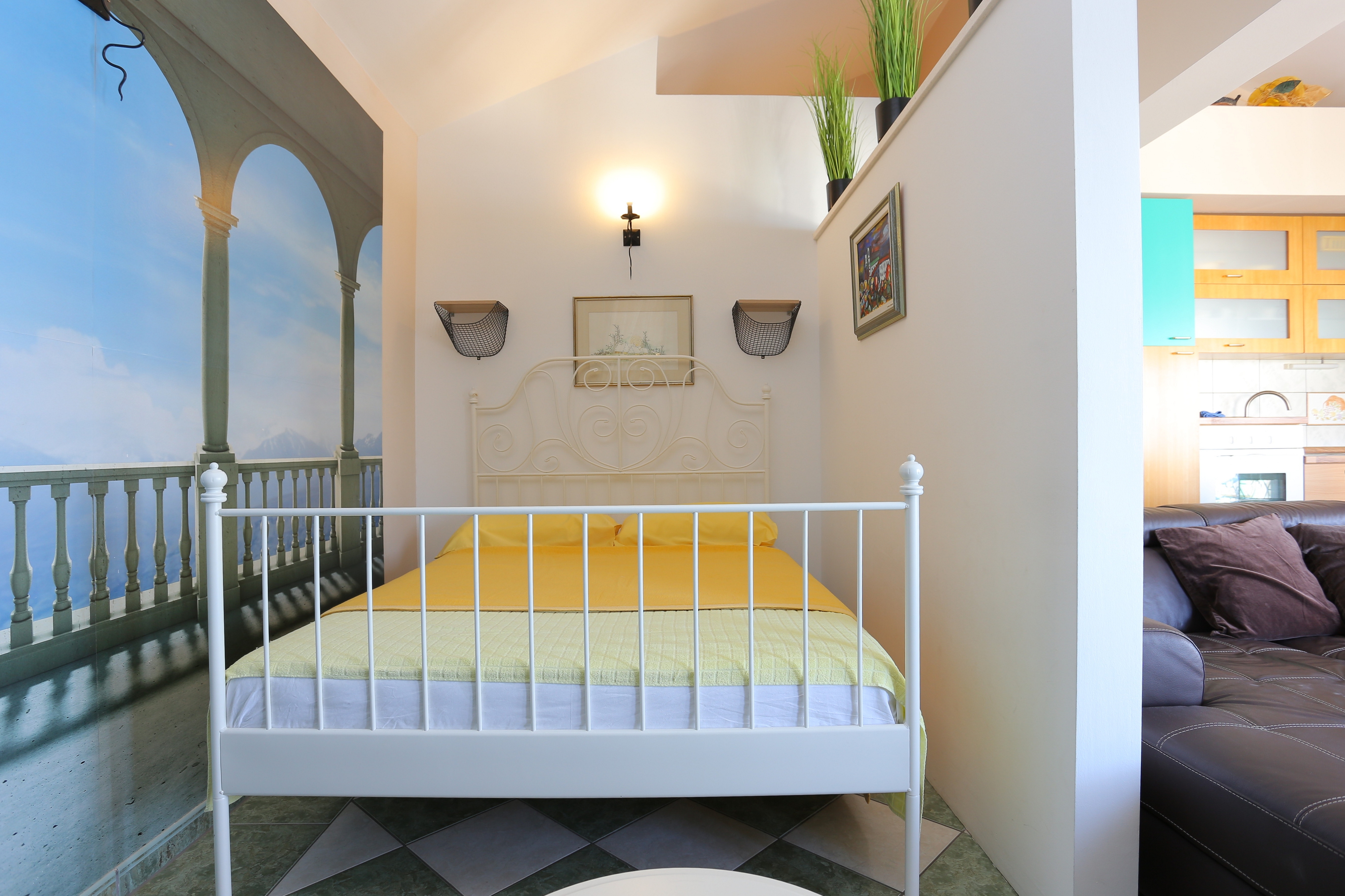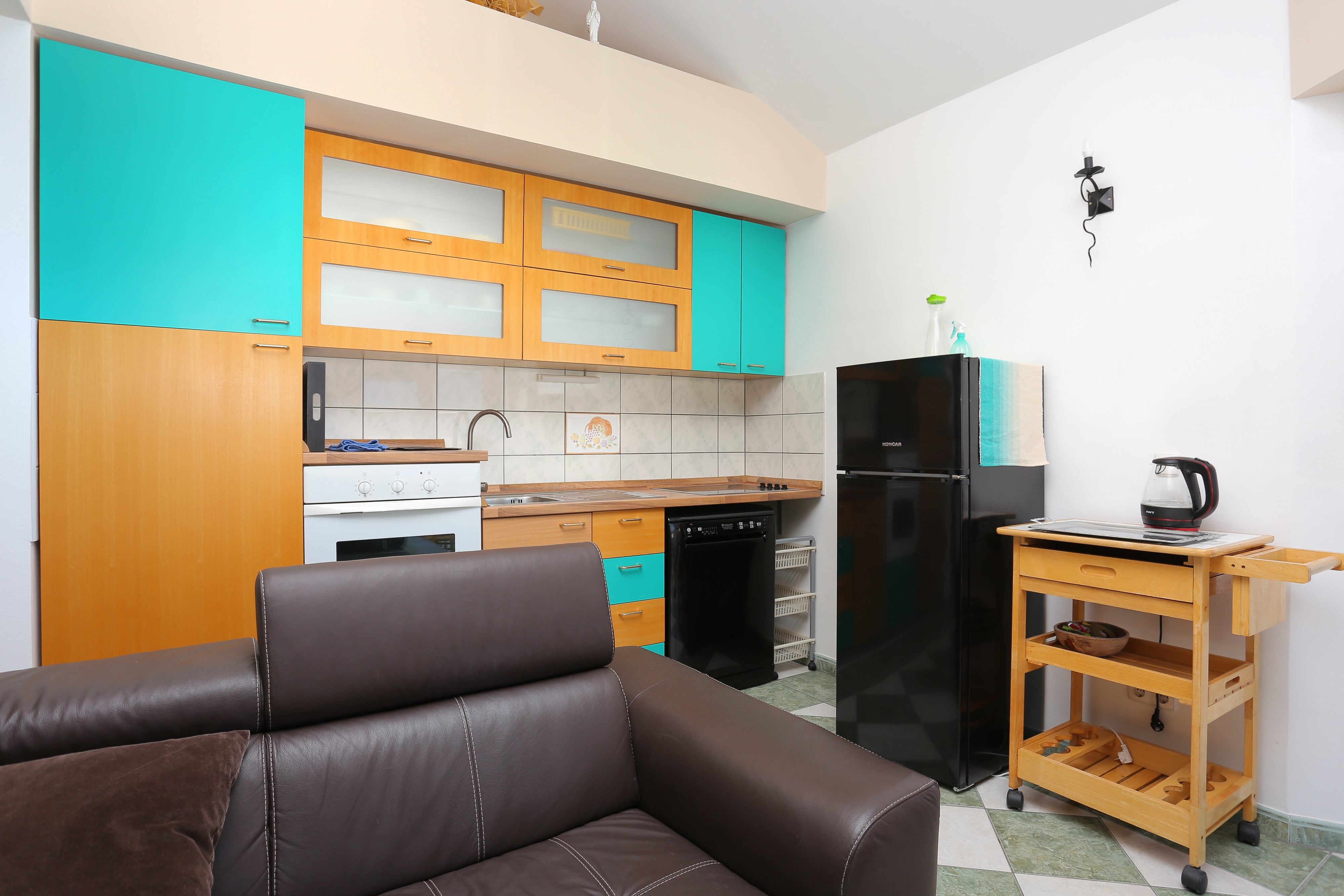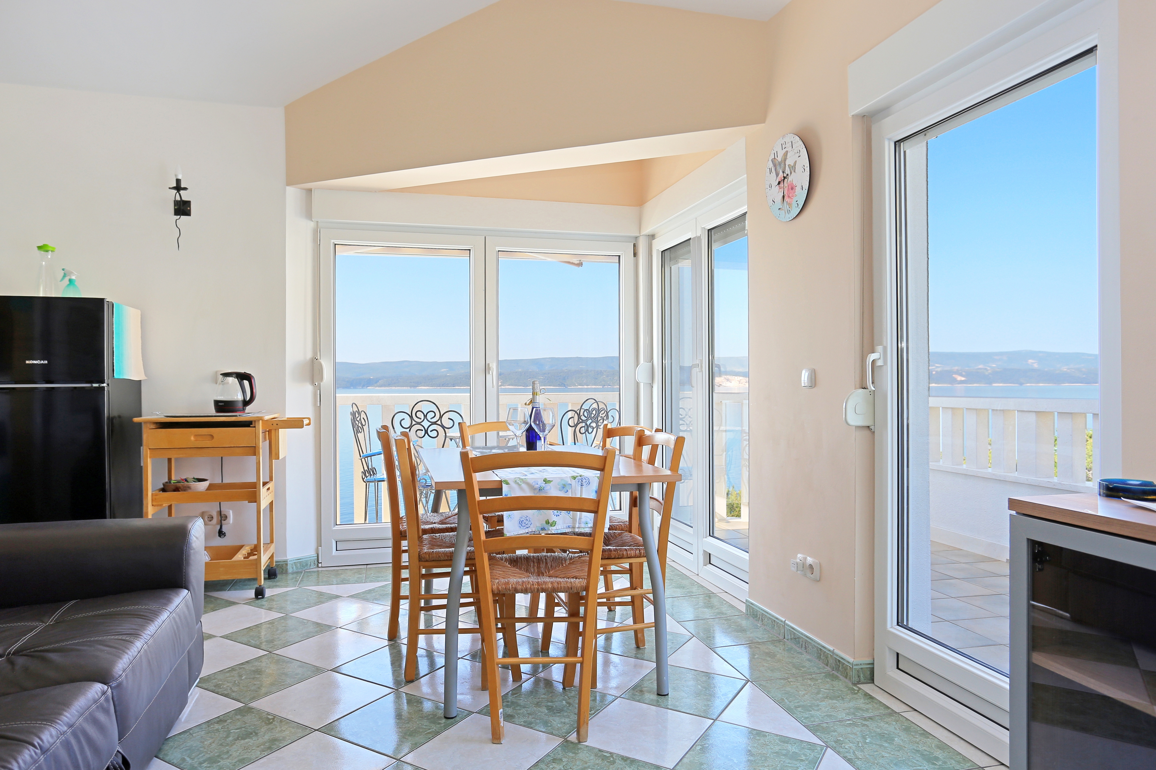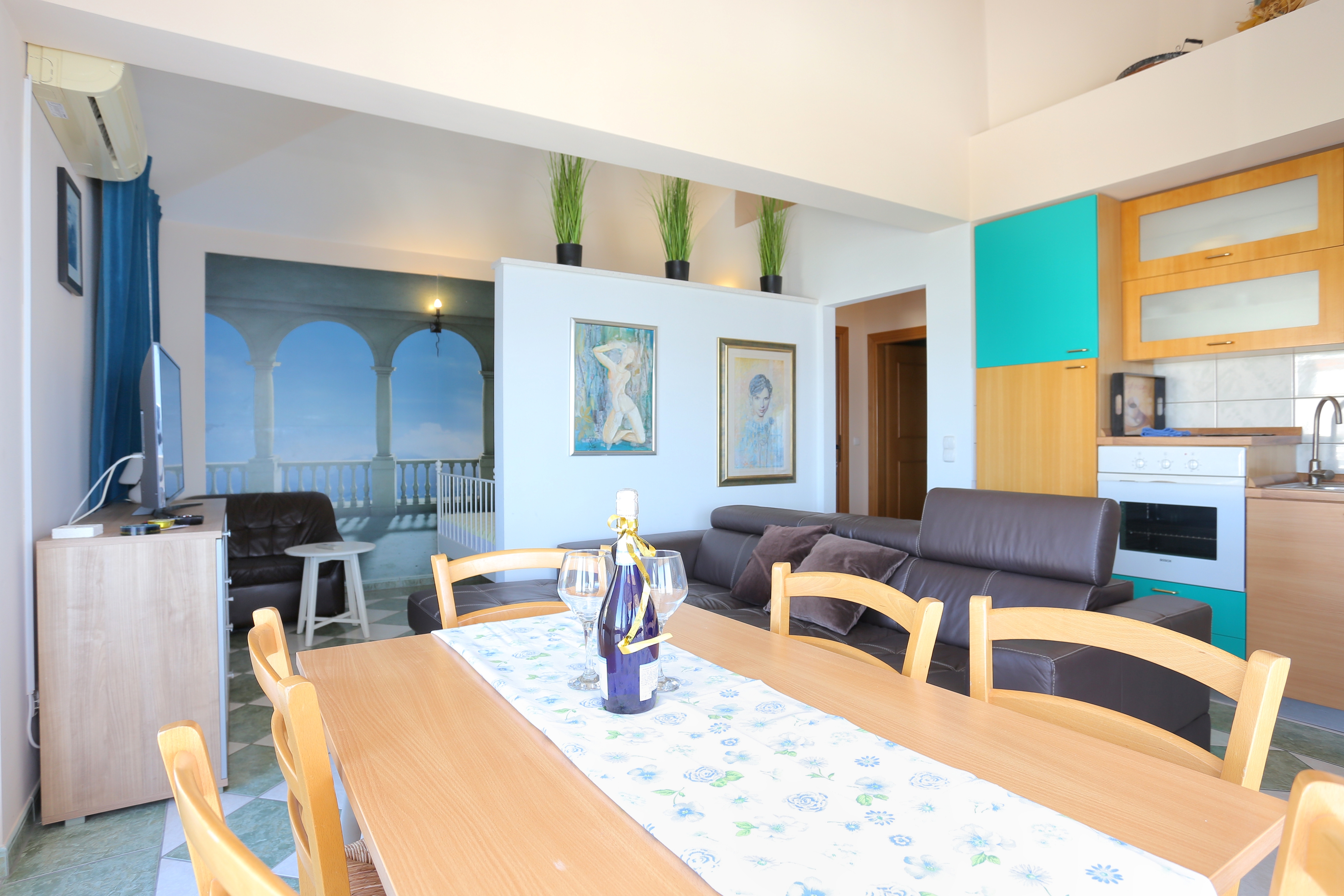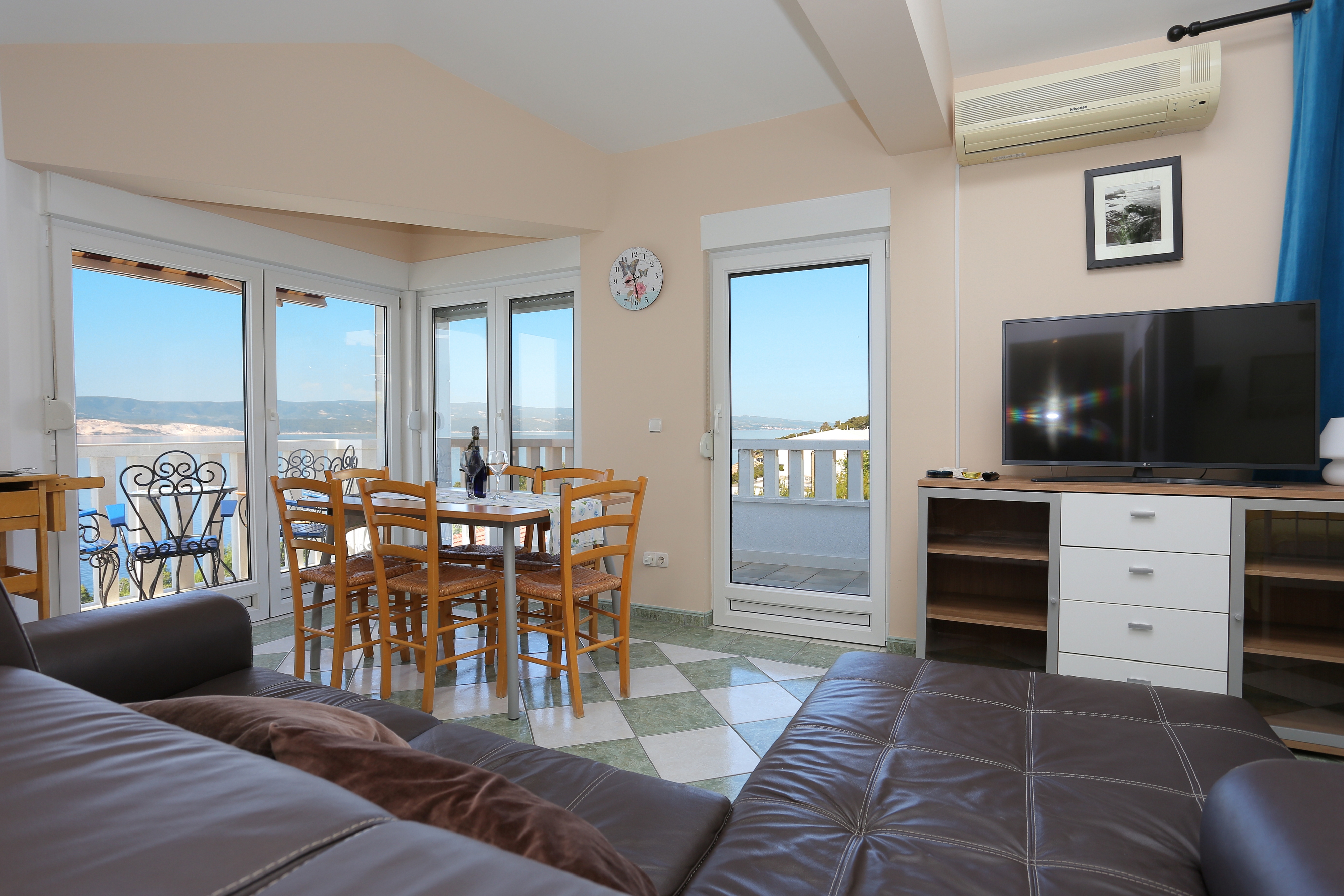 Apartment can accommodate 5 guests. Beds are situated in 1 sleeping rooms, but also in the living room, within 47m2. Guests can use a private terrace to enjoy the warm summer evenings. The apartment offers the sea view. Food can be prepared using barbecue which is shared with other guests too. This accommodation unit welcomes pets at an additional charge. INCLUDED IN THE PRICE: tourist tax, final cleaning, air-conditioning, parking, internet, baby cot, iron, ironing board, hairdryer. OBLIGATORY ADDITIONAL COSTS: short stay fee (surcharge depending on a number of booked nights: 30% - 1, 20% - 2, 10% - 3). OPTIONAL ADDITIONAL COSTS: pets (€5.00 per night). The availability of additional services for your chosen dates of stay, as well as their prices (if none are listed) must be checked ahead of time. Any additional services not shown in the price calculation are payable directly to the property owner and only if used by the visitor.