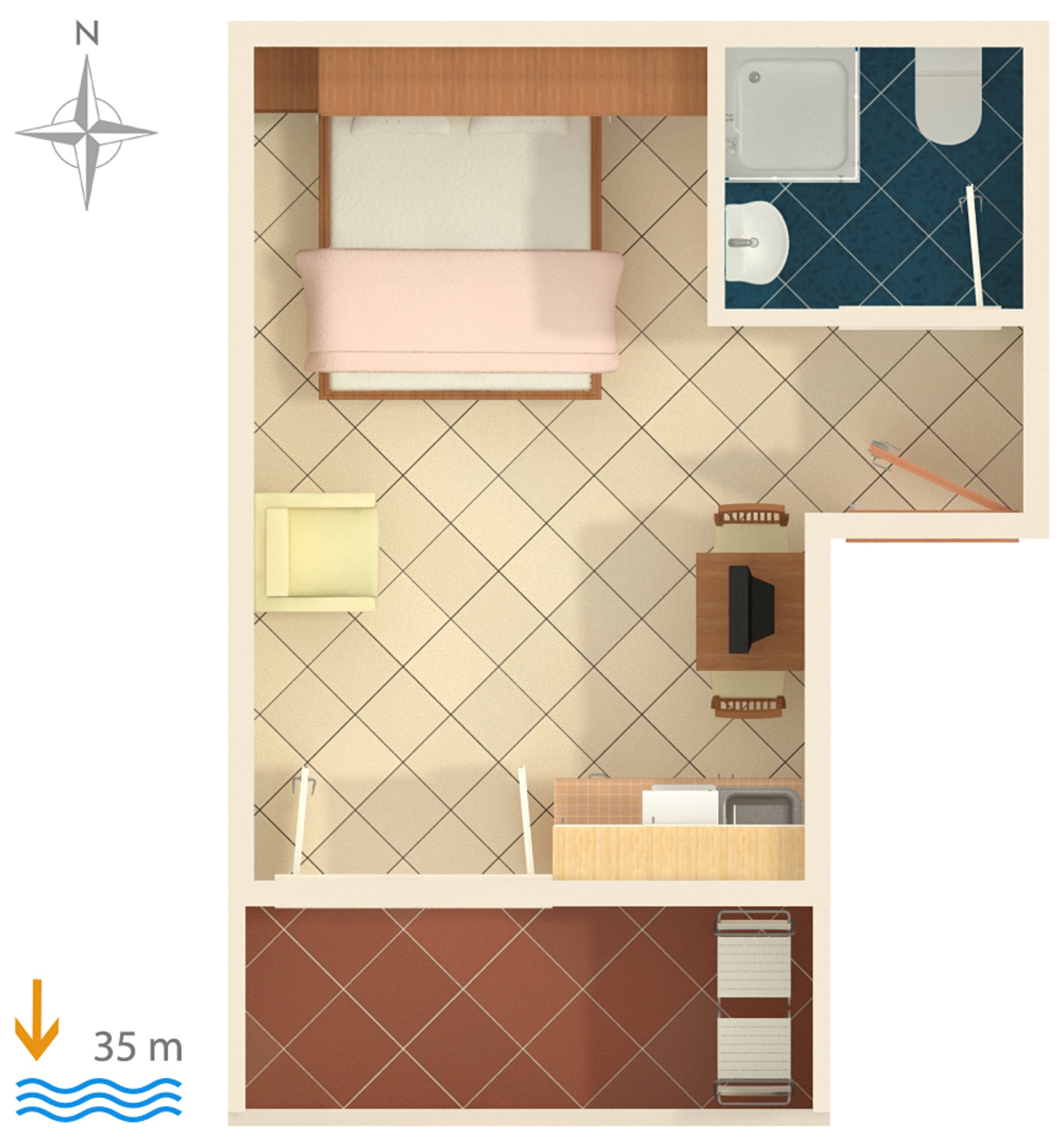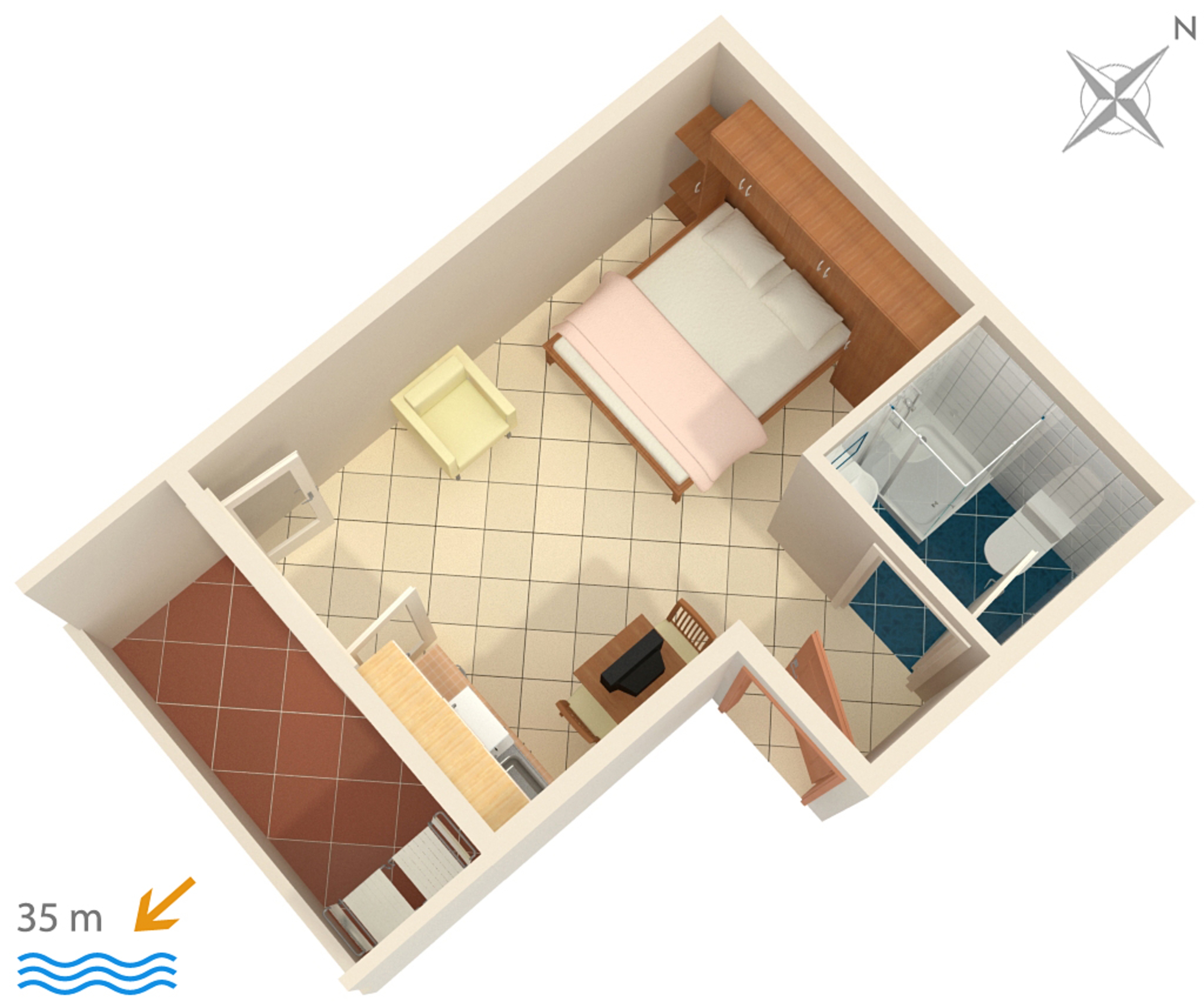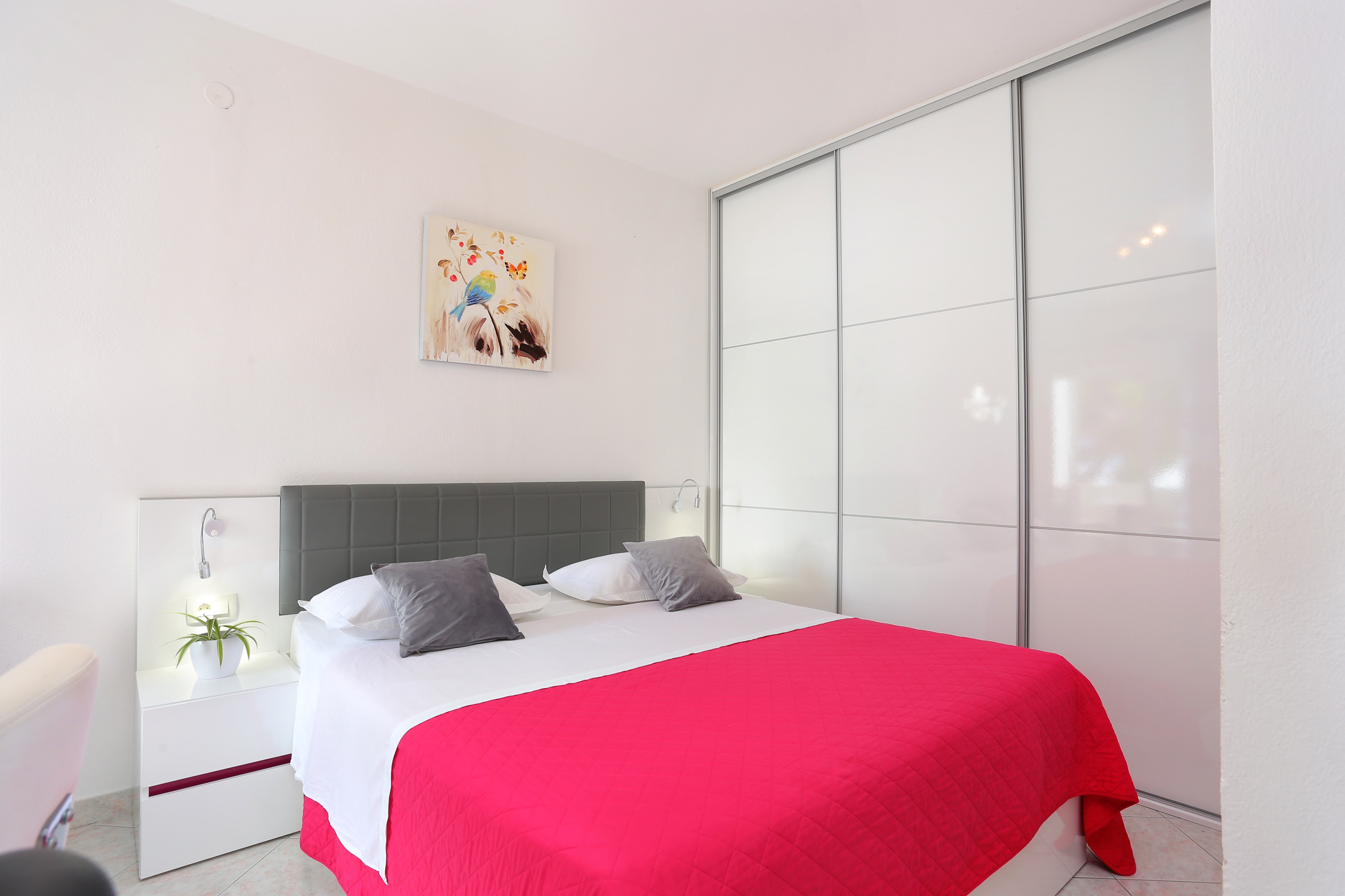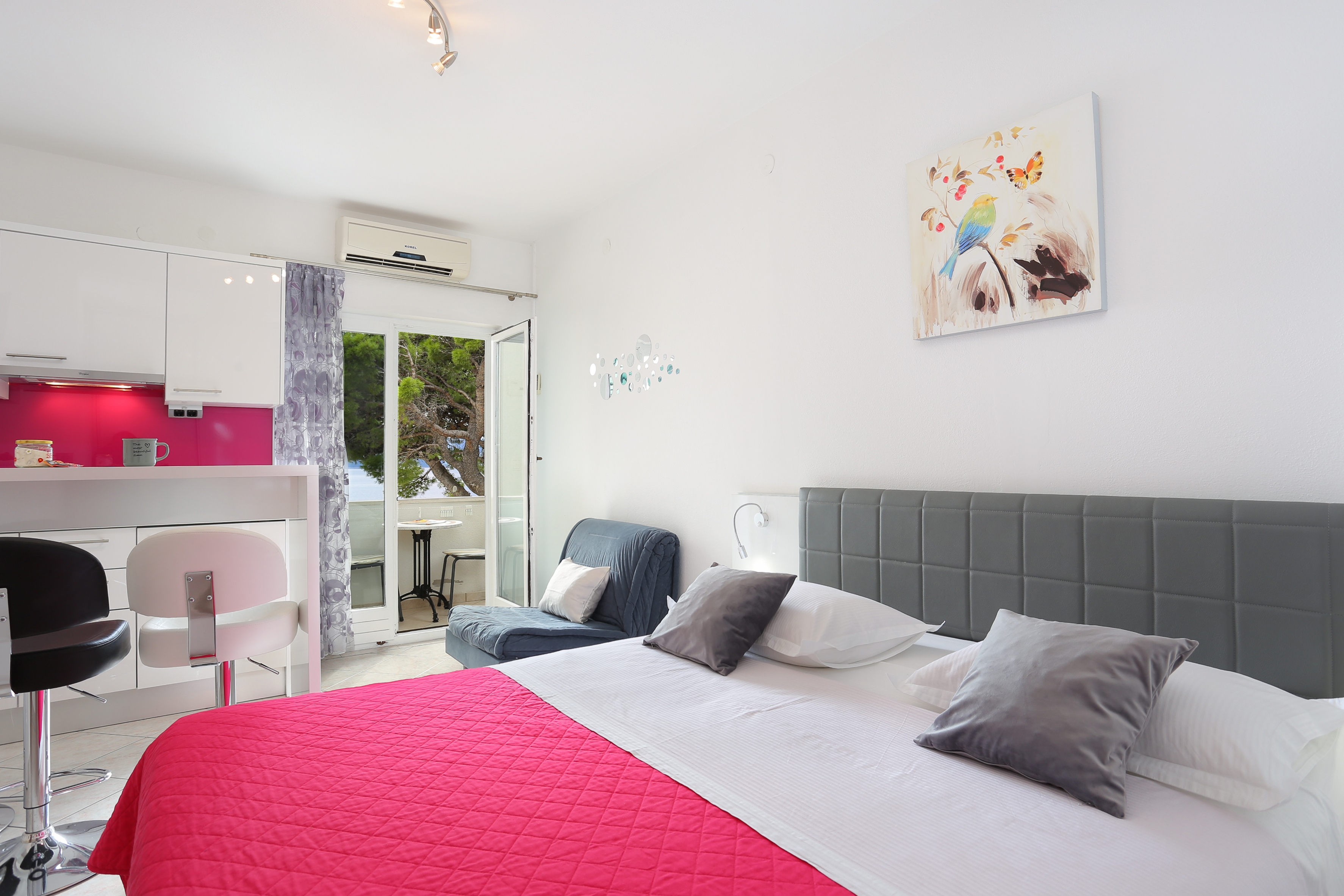 Studio flat can accommodate 3 guests. Beds are situated in 1 sleeping rooms, within 18m2. Guests can use a private balcony to enjoy the warm summer evenings. The studio offers the sea view. Food can be prepared using barbecue which is shared with other guests too. INCLUDED IN THE PRICE: tourist tax, final cleaning, parking, internet, baby cot, iron, ironing board, hairdryer, sunshade. OBLIGATORY ADDITIONAL COSTS: short stay fee (surcharge depending on a number of booked nights: 30% - 1, 20% - 2, 10% - 3). OPTIONAL ADDITIONAL COSTS: air-conditioning (€0.50 per hour), laundry (€5.00 washing). The availability of additional services for your chosen dates of stay, as well as their prices (if none are listed) must be checked ahead of time. Any additional services not shown in the price calculation are payable directly to the property owner and only if used by the visitor. Discounts to the base price: free day 28=25 (for stays of 28 days or more, we give you 3 days free of charge for the stay until 31122026).
