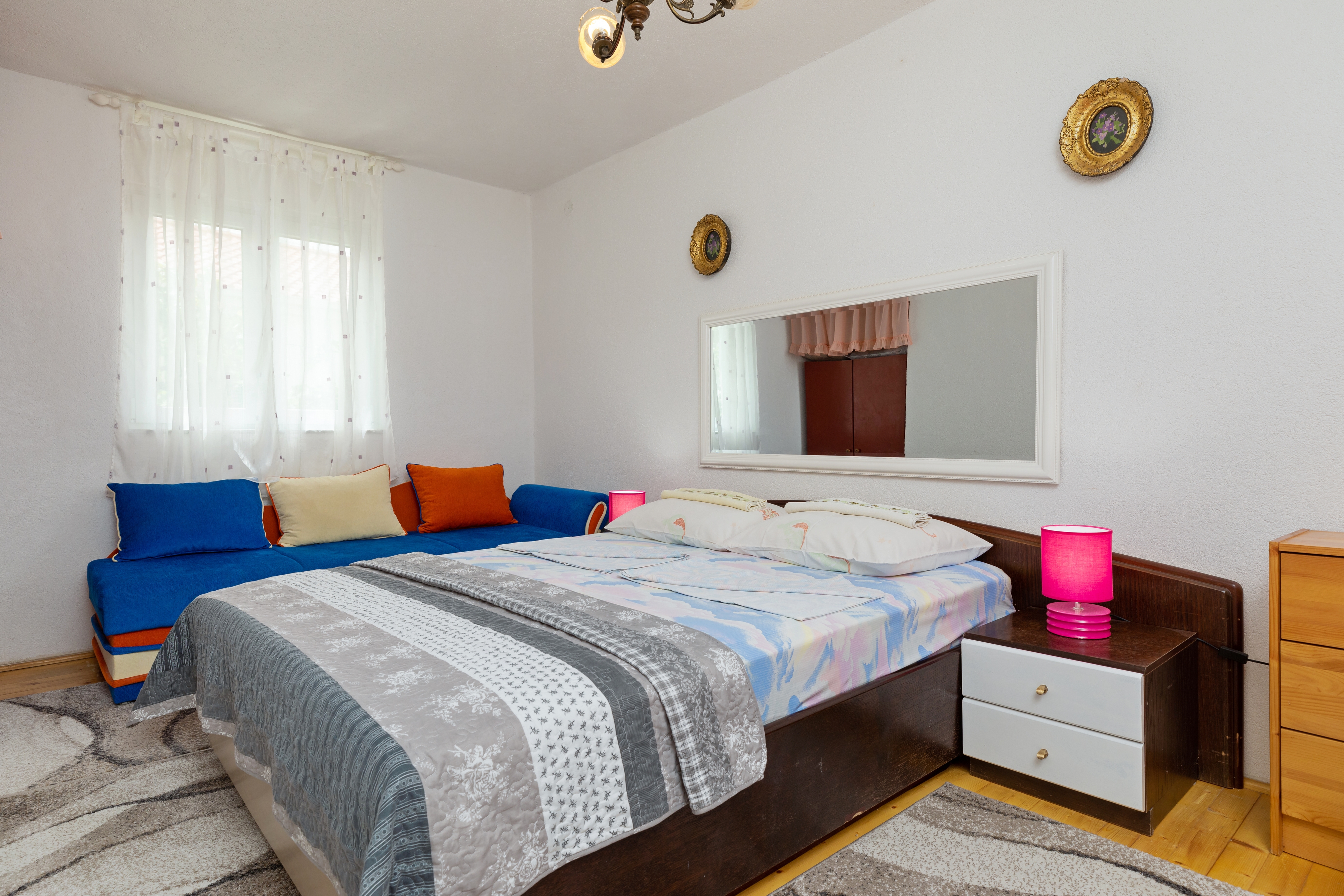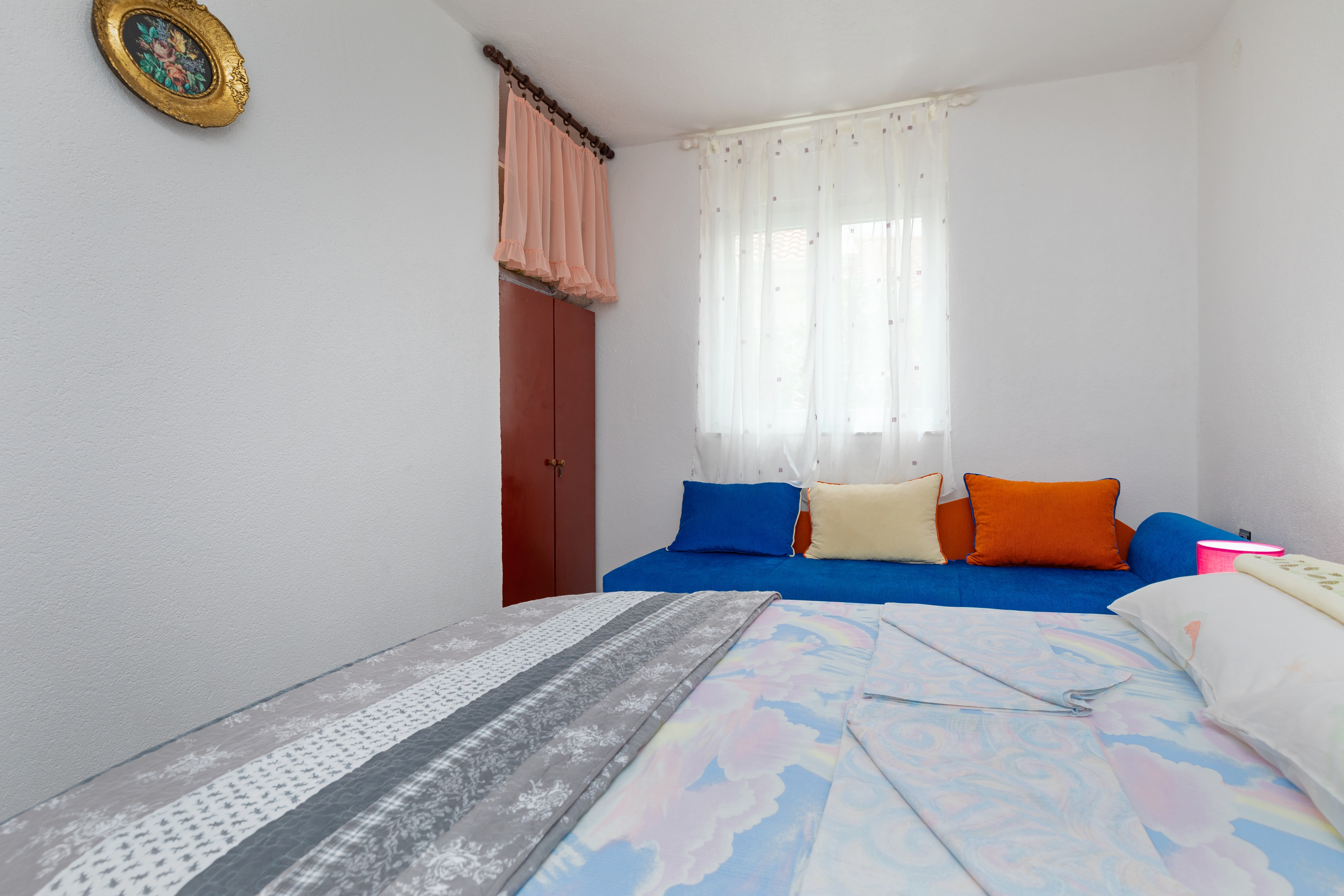 Apartment can accommodate 5 guests. Beds are situated in 2 sleeping rooms, within 55m2. Guests can use a private terrace to enjoy the warm summer evenings. The apartment offers the sea view. Food can be prepared using barbecue which is shared with other guests too. INCLUDED IN THE PRICE: tourist tax, final cleaning, air-conditioning, parking, internet, iron, ironing board, hairdryer, sunshade. OBLIGATORY ADDITIONAL COSTS: short stay fee (surcharge depending on a number of booked nights: 30% - 1, 20% - 2, 10% - 3). OPTIONAL ADDITIONAL COSTS: additional bed (€10.00 per night). The availability of additional services for your chosen dates of stay, as well as their prices (if none are listed) must be checked ahead of time. Any additional services not shown in the price calculation are payable directly to the property owner and only if used by the visitor.