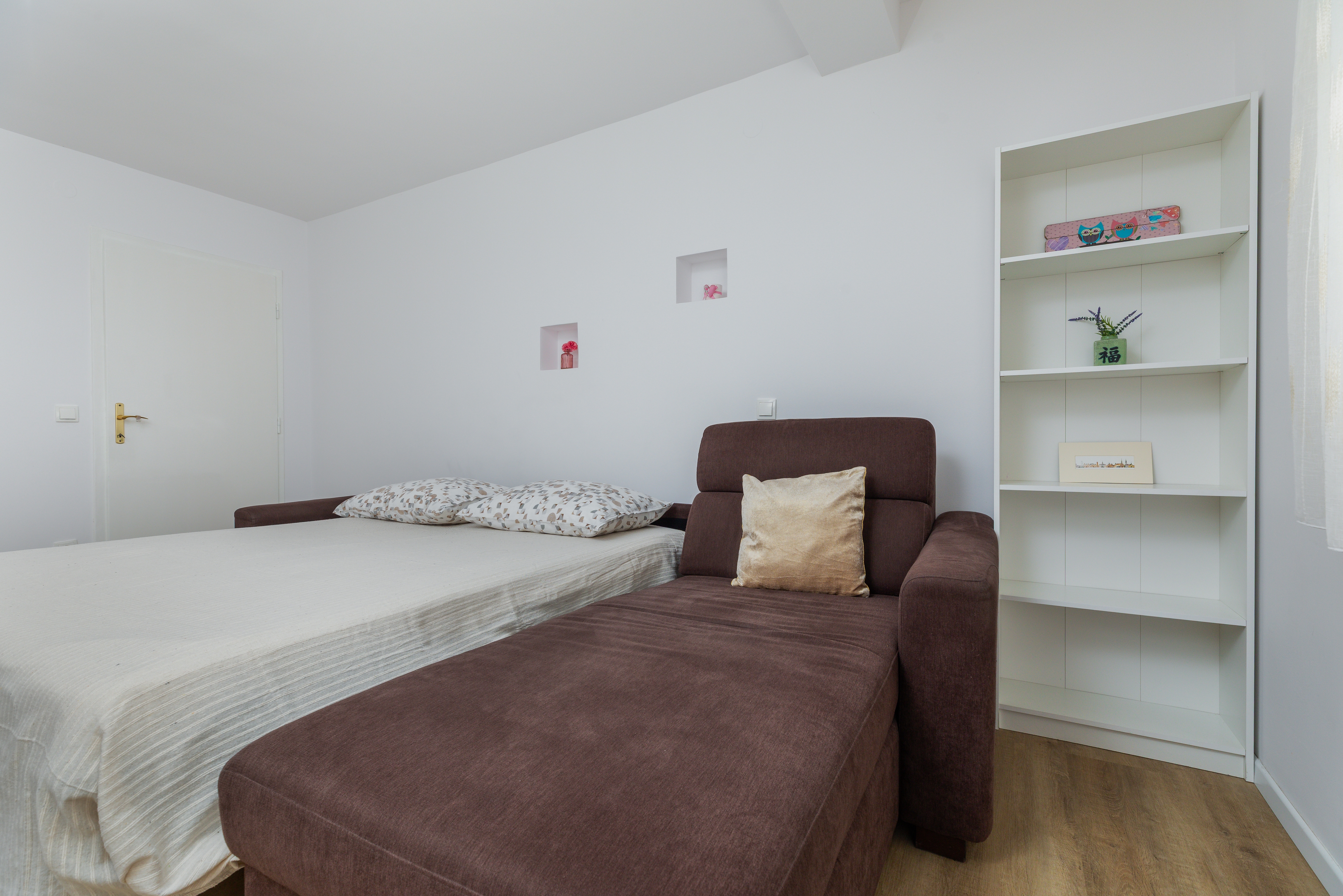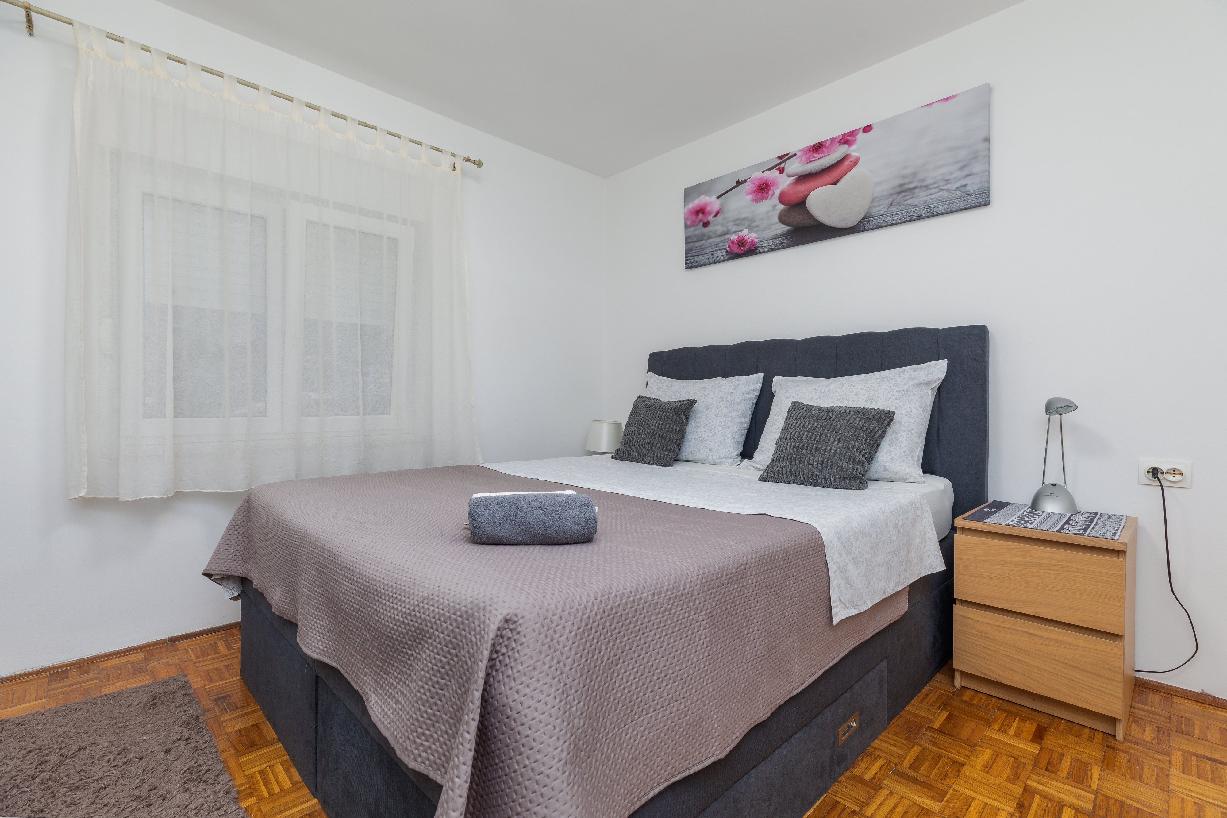 Apartment can accommodate 6 guests. Beds are situated in 2 sleeping rooms, but also in the living room, within 64m2. Guests can use a private balcony to enjoy the warm summer evenings. INCLUDED IN THE PRICE: tourist tax, final cleaning, parking, internet, iron, ironing board, hairdryer. OBLIGATORY ADDITIONAL COSTS: short stay fee (surcharge depending on a number of booked nights: 30% - 1, 20% - 2, 10% - 3). OPTIONAL ADDITIONAL COSTS: air-conditioning (€5.00 per night), laundry (€5.00 washing), additional bed (€20.00 per night). The availability of additional services for your chosen dates of stay, as well as their prices (if none are listed) must be checked ahead of time. Any additional services not shown in the price calculation are payable directly to the property owner and only if used by the visitor.