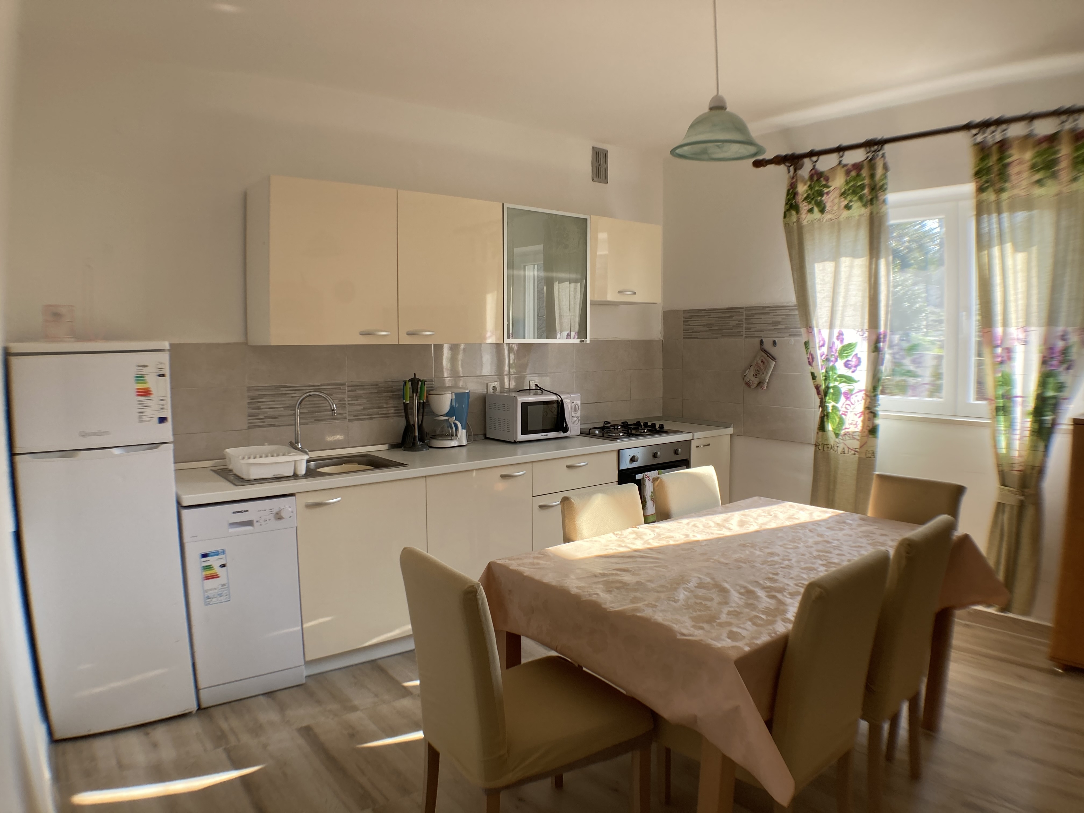 Apartment can accommodate 8 guests. Beds are situated in 3 sleeping rooms, within 67m2. Guests can use a private terrace to enjoy the warm summer evenings. The apartment offers the sea view. Food can be prepared using barbecue which is shared with other guests too. This accommodation unit welcomes pets at an additional charge. INCLUDED IN THE PRICE: tourist tax, final cleaning, air-conditioning, parking, internet, iron, ironing board, hairdryer. OBLIGATORY ADDITIONAL COSTS: short stay fee (surcharge depending on a number of booked nights: 30% - 1, 20% - 2, 10% - 3). OPTIONAL ADDITIONAL COSTS: pets (€5.00 per night). The availability of additional services for your chosen dates of stay, as well as their prices (if none are listed) must be checked ahead of time. Any additional services not shown in the price calculation are payable directly to the property owner and only if used by the visitor.