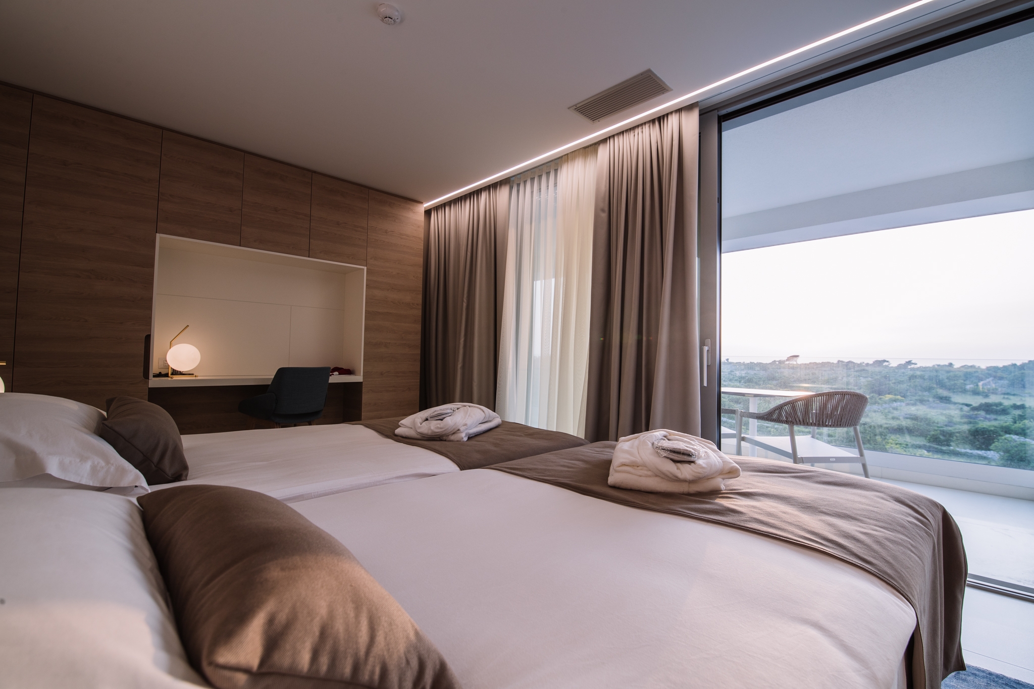 Apartment can accommodate 4 guests. Beds are situated in 1 sleeping rooms, but also in the living room, within 46m2. Guests can use a private balcony to enjoy the warm summer evenings. The apartment offers the sea view. Shared pool is on disposal during stay. This accommodation unit welcomes pets at an additional charge. INCLUDED IN THE PRICE: breakfast, final cleaning, air-conditioning, central heating, pool, parking, internet, baby cot, iron, ironing board, hairdryer. OBLIGATORY ADDITIONAL COSTS: tourist tax (adults €0.93 - €1.60 nightperson, discount for children aged 12 - 17). OPTIONAL ADDITIONAL COSTS: pets (€15.00 per night). The availability of additional services for your chosen dates of stay, as well as their prices (if none are listed) must be checked ahead of time. Any additional services not shown in the price calculation are payable directly to the property owner and only if used by the visitor. Discounts to the base price: free day 14=13 (for reservations of 14 or more days you get one free day for the stay until 31122026).