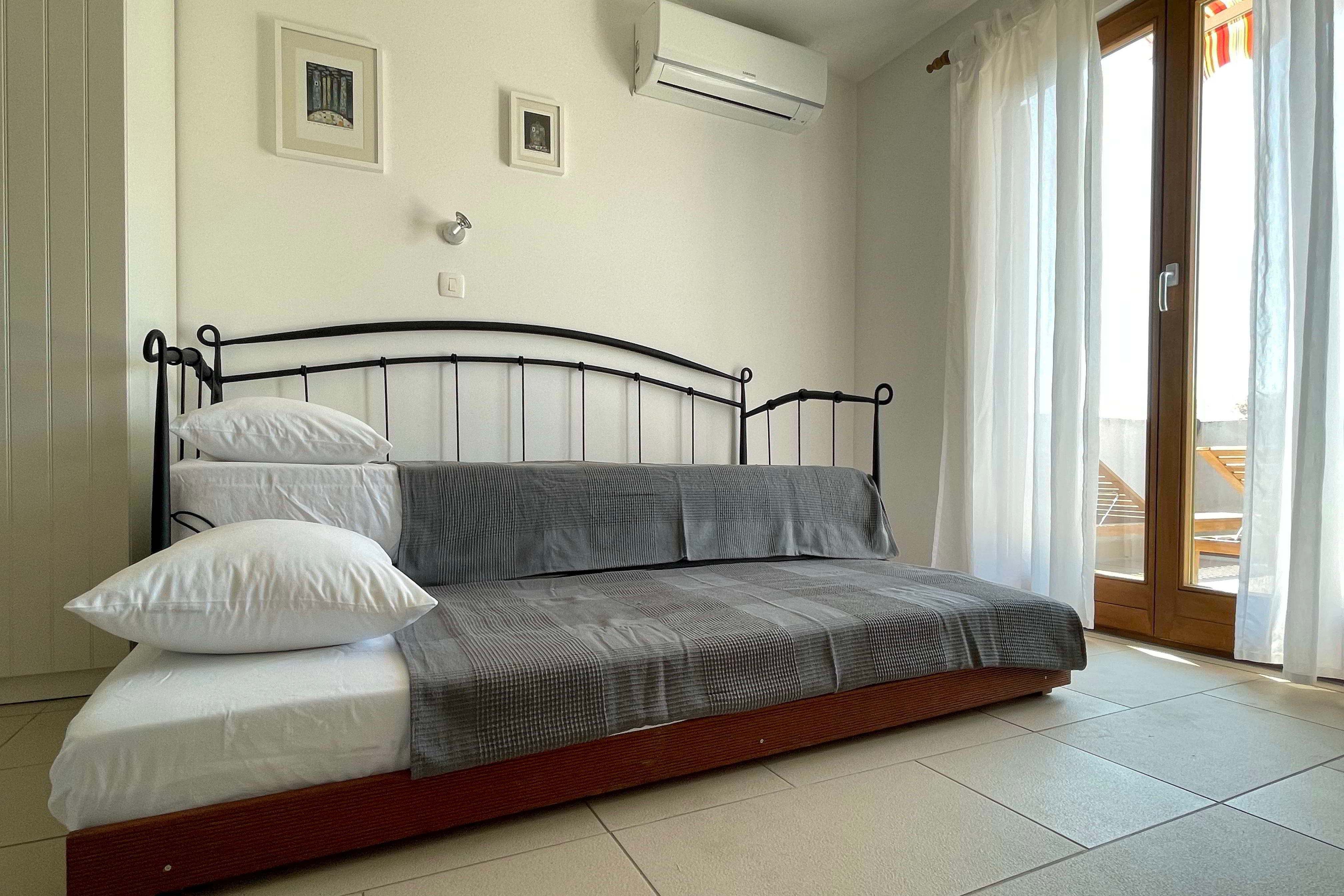 Studio flat can accommodate 3 guests. Beds are situated in 1 sleeping rooms, within 26m2. Guests can use a private terrace to enjoy the warm summer evenings. The studio offers the sea view. Food can be prepared using barbecue which is shared with other guests too. This accommodation unit welcomes pets at no additional costs. INCLUDED IN THE PRICE: tourist tax, final cleaning, air-conditioning, parking, internet, pets, additional bed, iron, ironing board, hairdryer. The availability of additional services for your chosen dates of stay, as well as their prices (if none are listed) must be checked ahead of time. Any additional services not shown in the price calculation are payable directly to the property owner and only if used by the visitor. Discounts to the base price: free day 14=13 (for reservations of 14 or more days you get one free day for the stay until 31122026).
