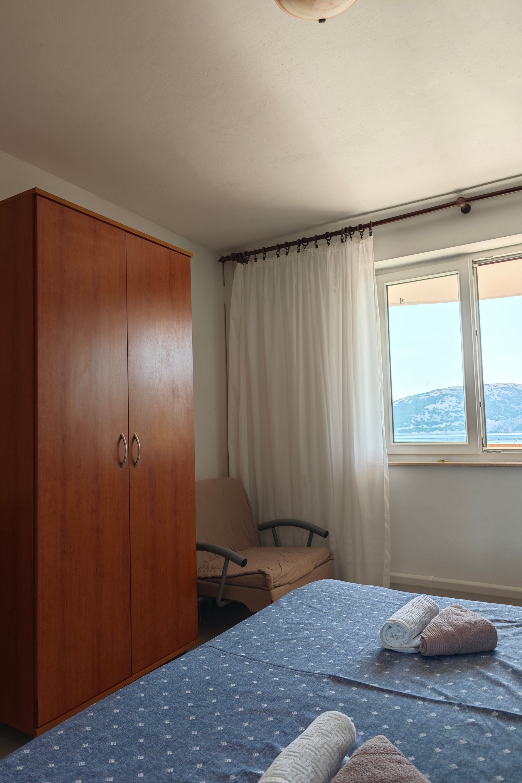 Apartment can accommodate 4 guests. Beds are situated in 1 sleeping rooms, but also in the dining room, within 39m2. The apartment offers the sea view. Food can be prepared using barbecue which is shared with other guests too. Reserved accommodation unit has a shared terrace. INCLUDED IN THE PRICE: tourist tax, final cleaning, air-conditioning, parking, internet, sunchairs. OBLIGATORY ADDITIONAL COSTS: short stay fee (surcharge depending on a number of booked nights: 30% - 1, 20% - 2, 10% - 3). OPTIONAL ADDITIONAL COSTS: additional bed (€10.00 per night). The availability of additional services for your chosen dates of stay, as well as their prices (if none are listed) must be checked ahead of time. Any additional services not shown in the price calculation are payable directly to the property owner and only if used by the visitor.