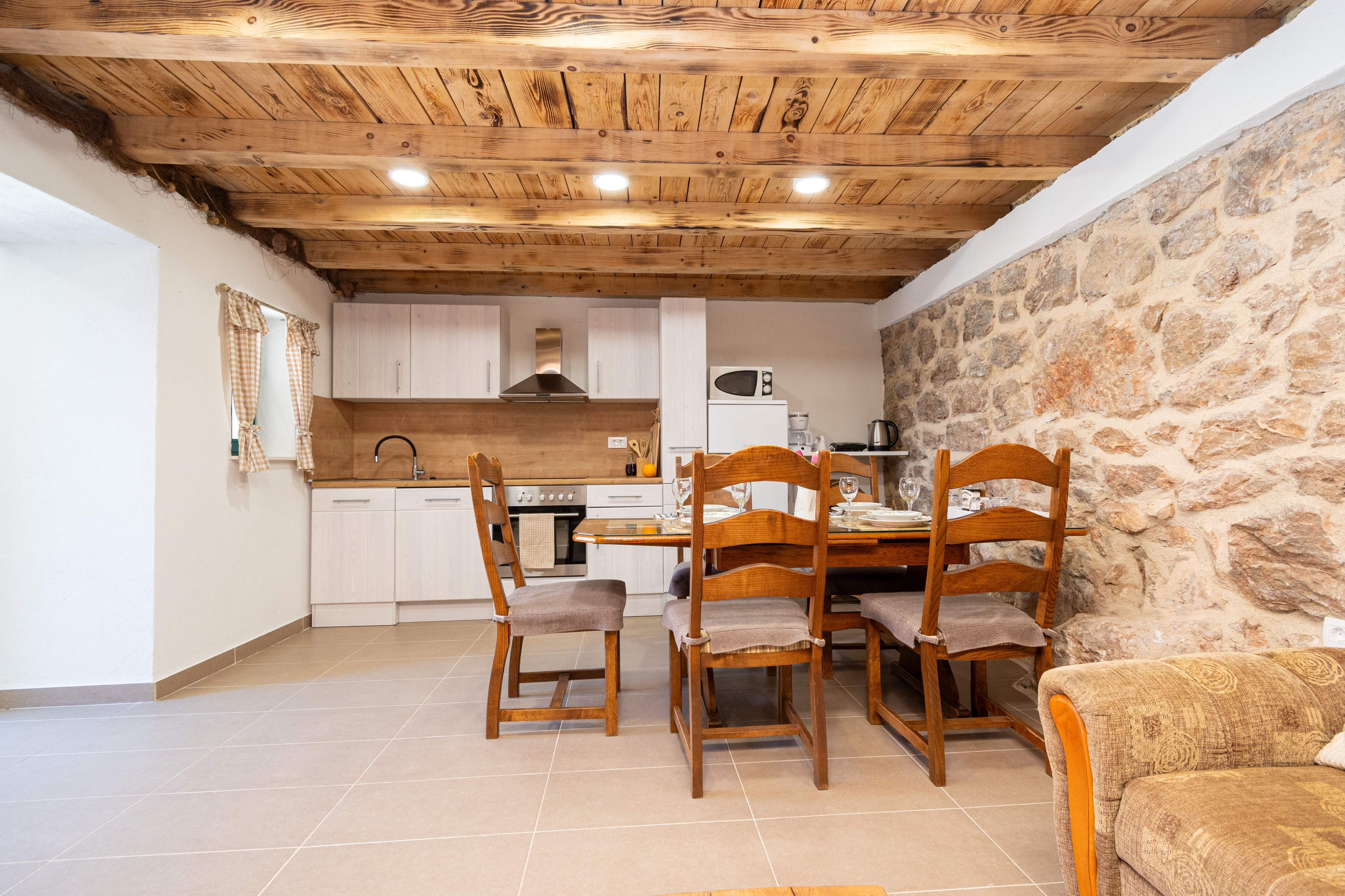 House can accommodate 4 guests. Beds are situated in 1 sleeping rooms, but also in the living room, within 65m2. Guests can use a private terrace to enjoy the warm summer evenings. Food can be prepared using barbecue which is shared with other guests too. During stay, there is a private pool for relaxation and pleasure. INCLUDED IN THE PRICE: tourist tax, final cleaning, air-conditioning, pool, parking, internet, iron, ironing board, hairdryer, portable barbecue. The availability of additional services for your chosen dates of stay, as well as their prices (if none are listed) must be checked ahead of time. Any additional services not shown in the price calculation are payable directly to the property owner and only if used by the visitor. Discounts to the base price: free day 14=13 (for reservations of 14 or more days you get one free day for the stay until 31122026).