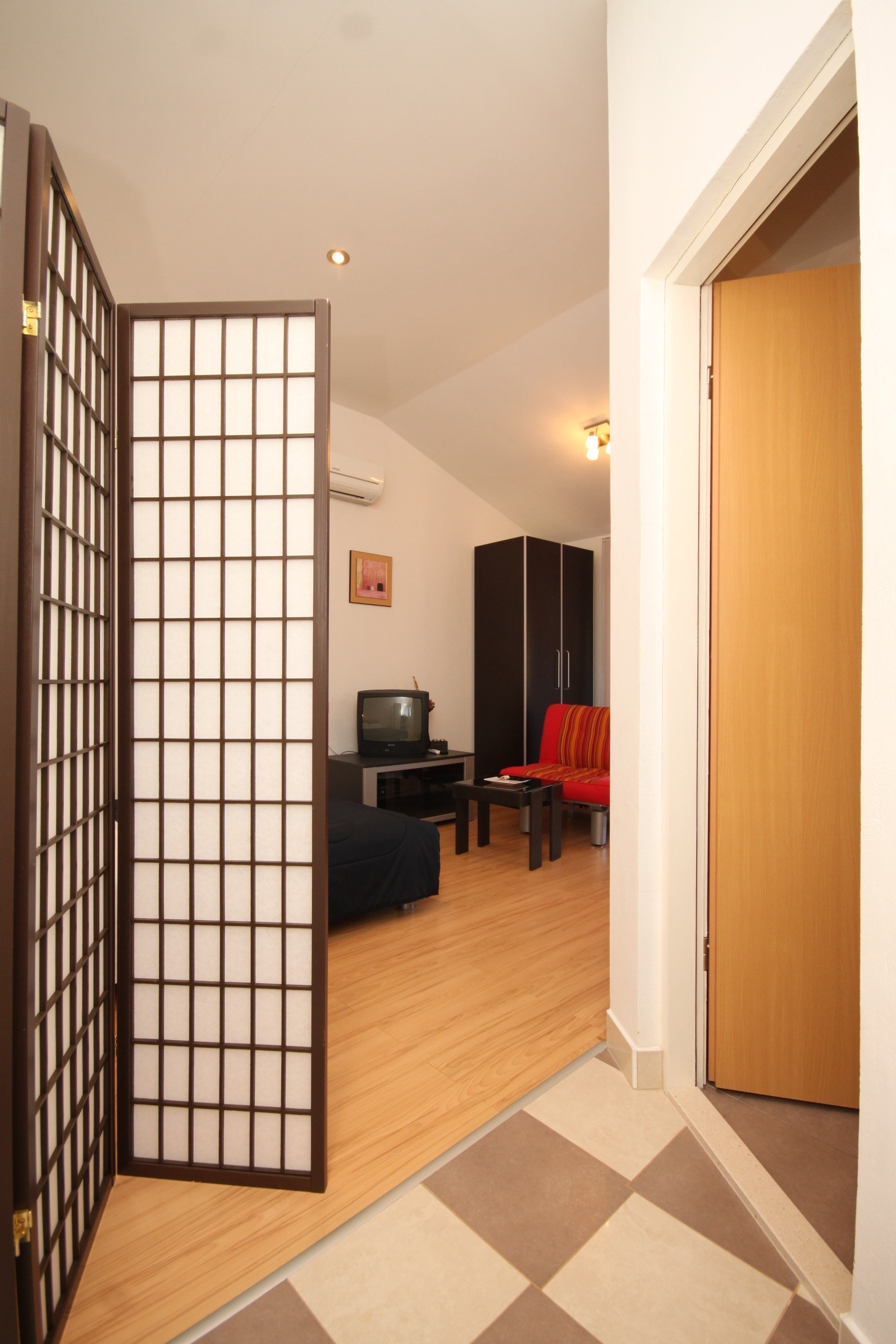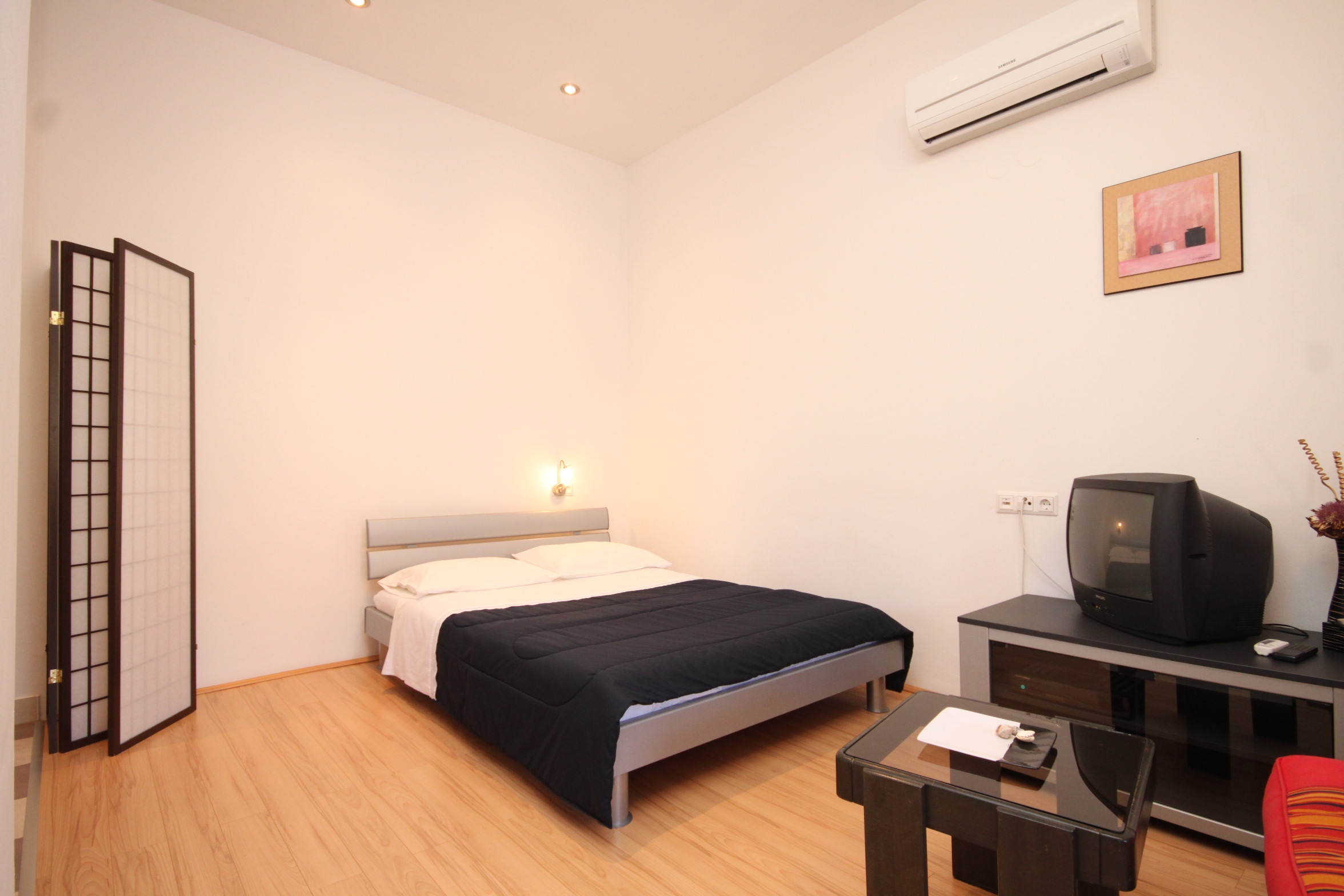 Studio flat can accommodate 3 guests. Beds are situated in 1 sleeping rooms, within 23m2. Guests can use a private balcony to enjoy the warm summer evenings. Food can be prepared using barbecue which is shared with other guests too. This accommodation unit welcomes pets at an additional charge. INCLUDED IN THE PRICE: tourist tax, final cleaning, air-conditioning, parking, internet, baby cot, iron, ironing board, hairdryer. OBLIGATORY ADDITIONAL COSTS: short stay fee (surcharge depending on a number of booked nights: 30% - 1, 20% - 2, 10% - 3). OPTIONAL ADDITIONAL COSTS: pets (€5.00 per night). The availability of additional services for your chosen dates of stay, as well as their prices (if none are listed) must be checked ahead of time. Any additional services not shown in the price calculation are payable directly to the property owner and only if used by the visitor. Discounts to the base price: free day 14=13 (for reservations of 14 or more days you get one free day for the stay until 31122026).
