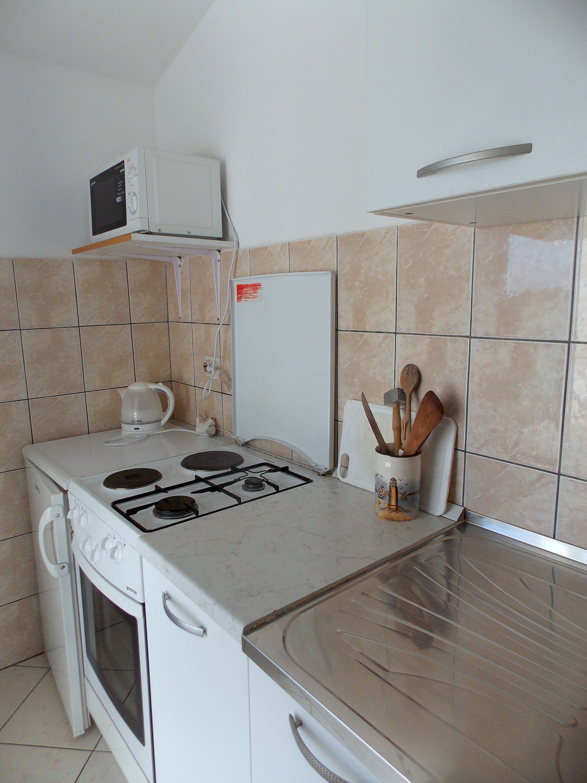 Studio flat can accommodate 3 guests. Beds are situated in 1 sleeping rooms, within 20m2. Guests can use a private terrace to enjoy the warm summer evenings. The studio offers the sea view. Food can be prepared using barbecue which is shared with other guests too. INCLUDED IN THE PRICE: tourist tax, final cleaning, air-conditioning, parking, internet, hairdryer. OBLIGATORY ADDITIONAL COSTS: short stay fee (surcharge depending on a number of booked nights: 30% - 1, 20% - 2, 10% - 3). The availability of additional services for your chosen dates of stay, as well as their prices (if none are listed) must be checked ahead of time. Any additional services not shown in the price calculation are payable directly to the property owner and only if used by the visitor. Discounts to the base price: free day 14=13 (for reservations of 14 or more days you get one free day for the stay until 31122026).