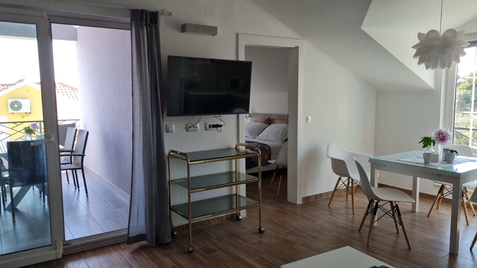 Apartment can accommodate 4 guests. Beds are situated in 2 sleeping rooms, within 53m2. Guests can use a private terrace to enjoy the warm summer evenings. INCLUDED IN THE PRICE: tourist tax, final cleaning, air-conditioning, parking, internet, baby cot, iron, ironing board, hairdryer. The availability of additional services for your chosen dates of stay, as well as their prices (if none are listed) must be checked ahead of time. Any additional services not shown in the price calculation are payable directly to the property owner and only if used by the visitor.