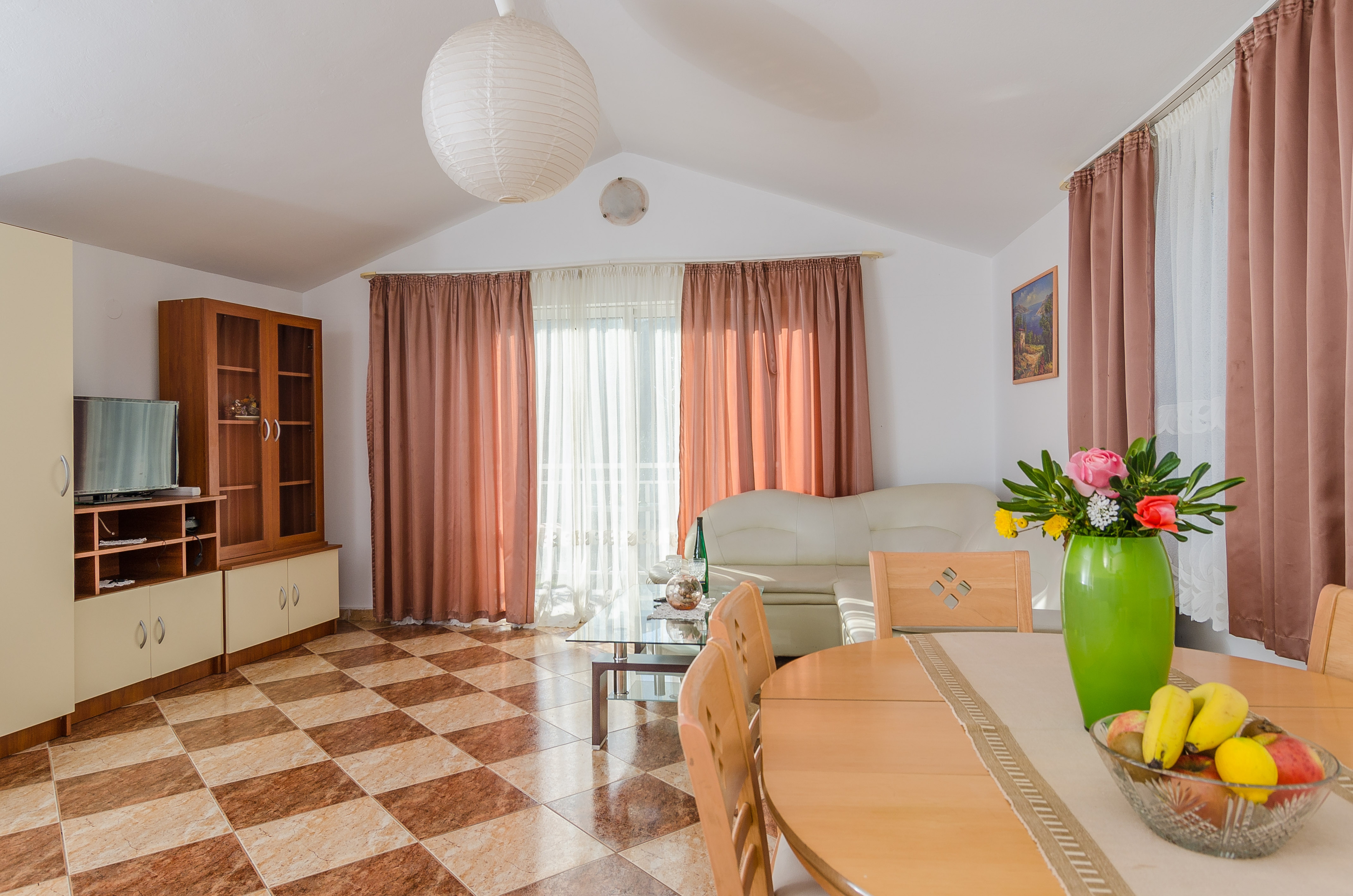 Apartment can accommodate 7 guests. Beds are situated in 2 sleeping rooms, but also in the living room, within 64m2. Guests can use a private balcony to enjoy the warm summer evenings. INCLUDED IN THE PRICE: tourist tax, final cleaning, air-conditioning, parking, internet. OBLIGATORY ADDITIONAL COSTS: short stay fee (surcharge depending on a number of booked nights: 30% - 1, 20% - 2, 10% - 3). The availability of additional services for your chosen dates of stay, as well as their prices (if none are listed) must be checked ahead of time. Any additional services not shown in the price calculation are payable directly to the property owner and only if used by the visitor.