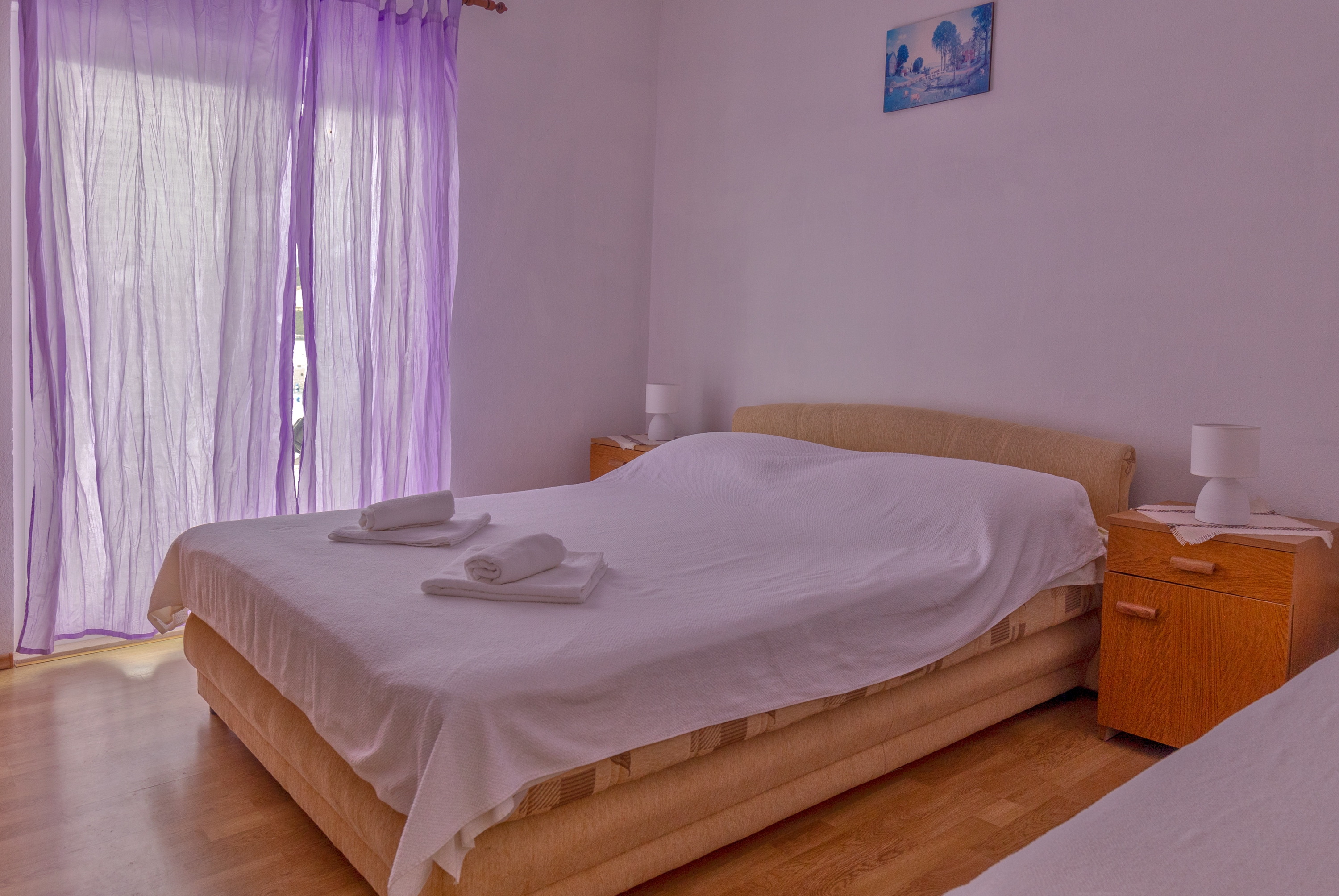Apartment can accommodate 3 guests. Beds are situated in 1 sleeping rooms, within 24m2. Guests can use a private terrace to enjoy the warm summer evenings. The apartment offers the sea view. Food can be prepared using barbecue which is shared with other guests too. INCLUDED IN THE PRICE: tourist tax, final cleaning, air-conditioning, parking, internet, iron, ironing board, hairdryer, portable barbecue, sunchairs. The availability of additional services for your chosen dates of stay, as well as their prices (if none are listed) must be checked ahead of time. Any additional services not shown in the price calculation are payable directly to the property owner and only if used by the visitor.