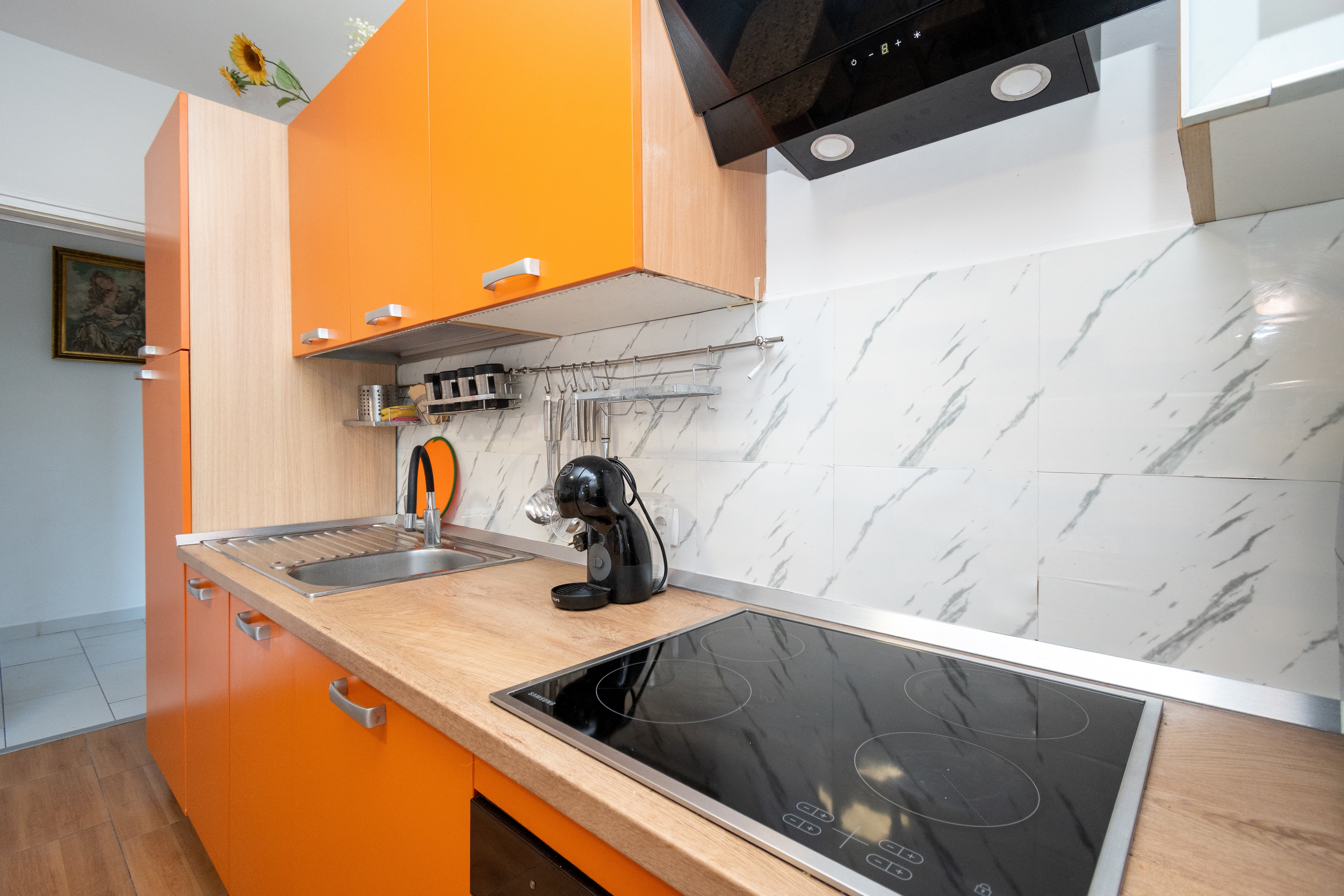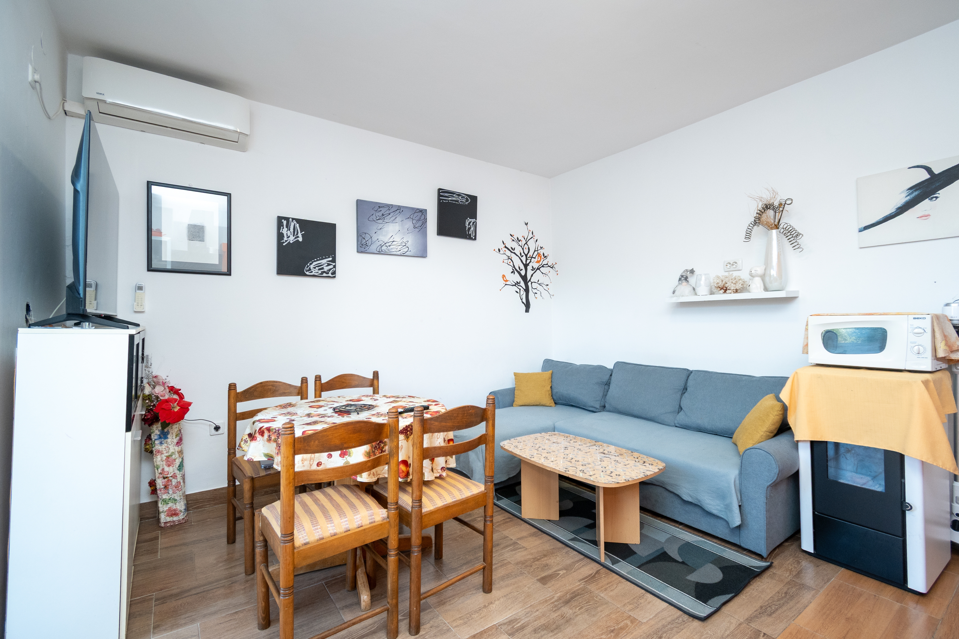 Apartment can accommodate 7 guests. Beds are situated in 2 sleeping rooms, but also in the living room, within 53m2. Guests can use a private terrace to enjoy the warm summer evenings. Food can be prepared using barbecue which is shared with other guests too. This accommodation unit welcomes pets at an additional charge. INCLUDED IN THE PRICE: tourist tax, final cleaning, air-conditioning, parking, internet, iron, ironing board, hairdryer, sunshade. OBLIGATORY ADDITIONAL COSTS: short stay fee (surcharge depending on a number of booked nights: 30% - 1, 20% - 2, 10% - 3). OPTIONAL ADDITIONAL COSTS: pets (ā¬5.00 per night). The availability of additional services for your chosen dates of stay, as well as their prices (if none are listed) must be checked ahead of time. Any additional services not shown in the price calculation are payable directly to the property owner and only if used by the visitor.