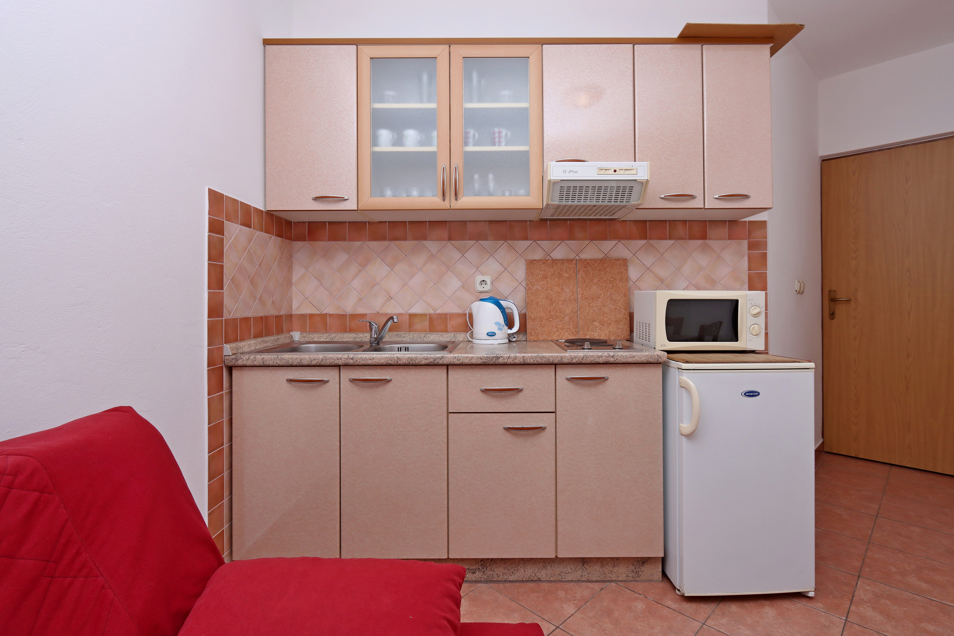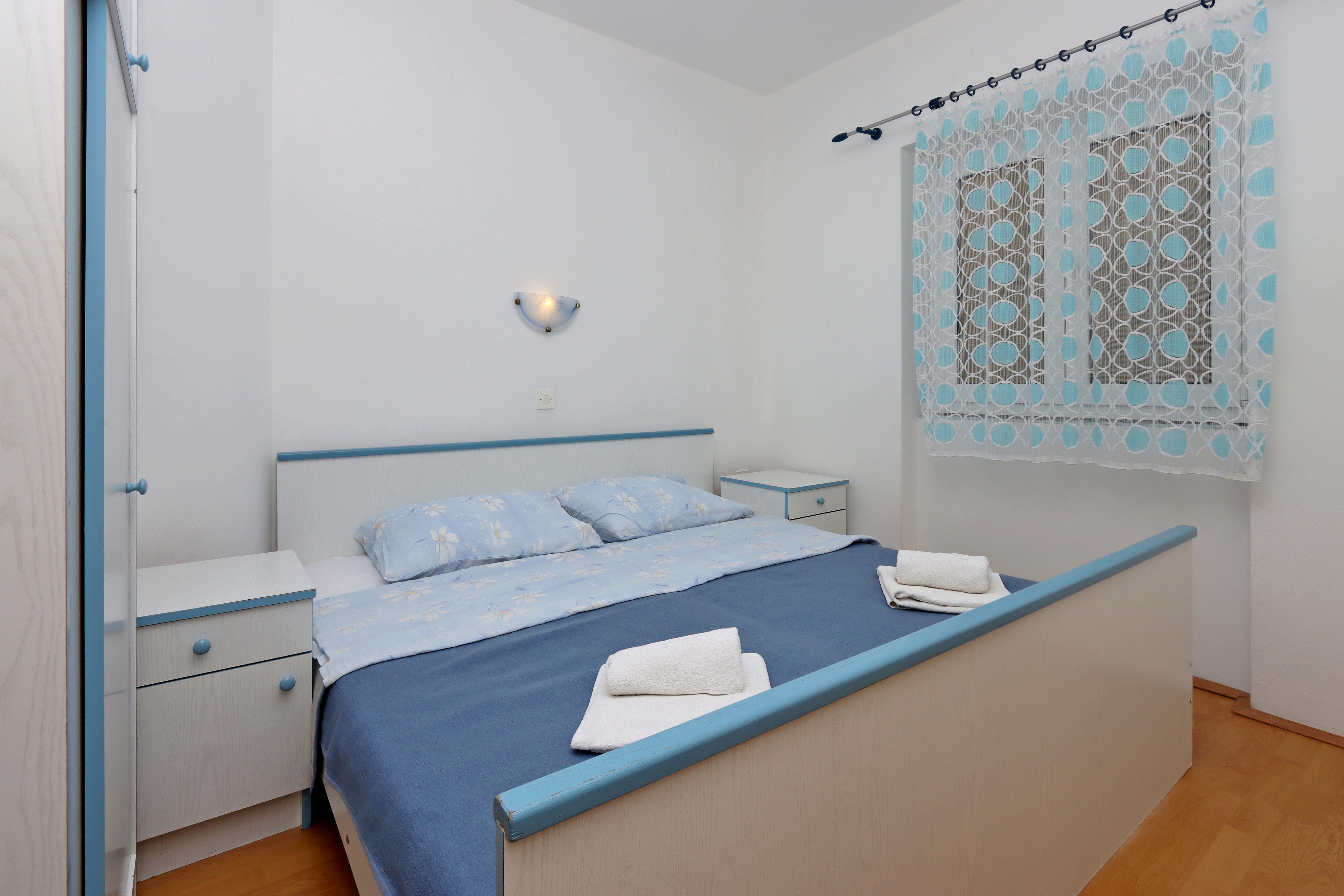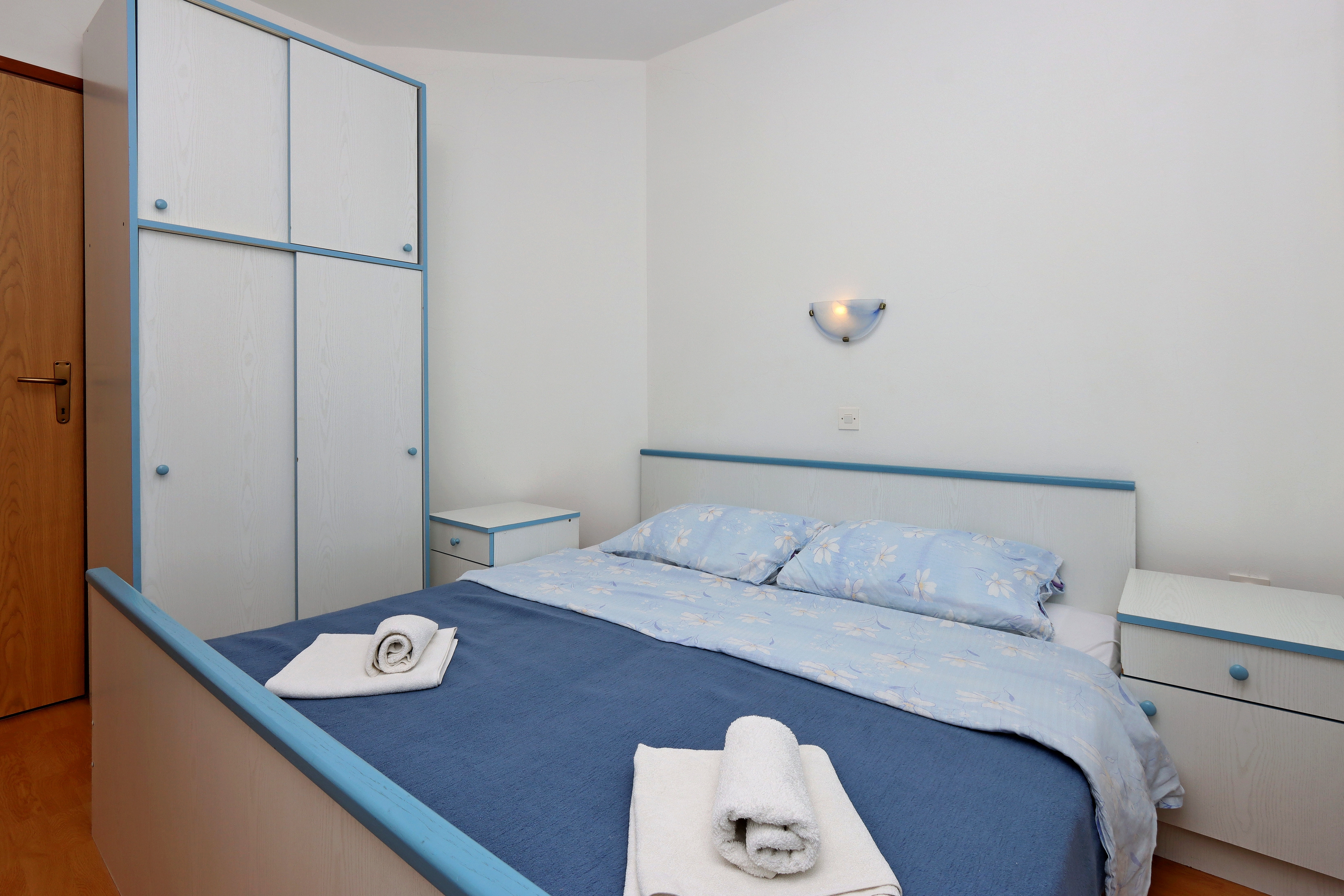 Apartment can accommodate 3 guests. Beds are situated in 1 sleeping rooms, but also in the dining room, within 25m2. Guests can use a private terrace to enjoy the warm summer evenings. Food can be prepared using barbecue which is shared with other guests too. INCLUDED IN THE PRICE: tourist tax, final cleaning, air-conditioning, garage, internet, laundry, baby cot. OPTIONAL ADDITIONAL COSTS: boat mooring (€20.00 per night). The availability of additional services for your chosen dates of stay, as well as their prices (if none are listed) must be checked ahead of time. Any additional services not shown in the price calculation are payable directly to the property owner and only if used by the visitor.