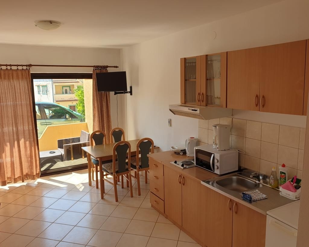 Apartment can accommodate 3 guests. Beds are situated in 1 sleeping rooms, but also in the living room, within 36m2. Guests can use a private terrace to enjoy the warm summer evenings. Food can be prepared using barbecue which is shared with other guests too. INCLUDED IN THE PRICE: tourist tax, final cleaning, parking, internet. OBLIGATORY ADDITIONAL COSTS: short stay fee (surcharge depending on a number of booked nights: 30% - 1, 20% - 2, 10% - 3). OPTIONAL ADDITIONAL COSTS: air-conditioning (€3.00 per night), boat mooring (€10.00 per night), additional bed (€10.00 per night). The availability of additional services for your chosen dates of stay, as well as their prices (if none are listed) must be checked ahead of time. Any additional services not shown in the price calculation are payable directly to the property owner and only if used by the visitor.