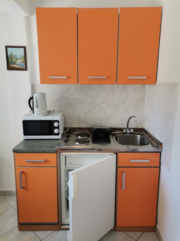 Studio flat can accommodate 3 guests. Beds are situated in 1 sleeping rooms, within 30m2. Guests can use a private terrace to enjoy the warm summer evenings. Food can be prepared using barbecue which is shared with other guests too. INCLUDED IN THE PRICE: final cleaning, air-conditioning, parking, internet, baby cot, hairdryer. OBLIGATORY ADDITIONAL COSTS: tourist tax (adults €0.93 - €1.90 nightperson, discount for children aged 12 - 17), short stay fee (surcharge depending on a number of booked nights: 30% - 1, 20% - 2, 10% - 3). The availability of additional services for your chosen dates of stay, as well as their prices (if none are listed) must be checked ahead of time. Any additional services not shown in the price calculation are payable directly to the property owner and only if used by the visitor.