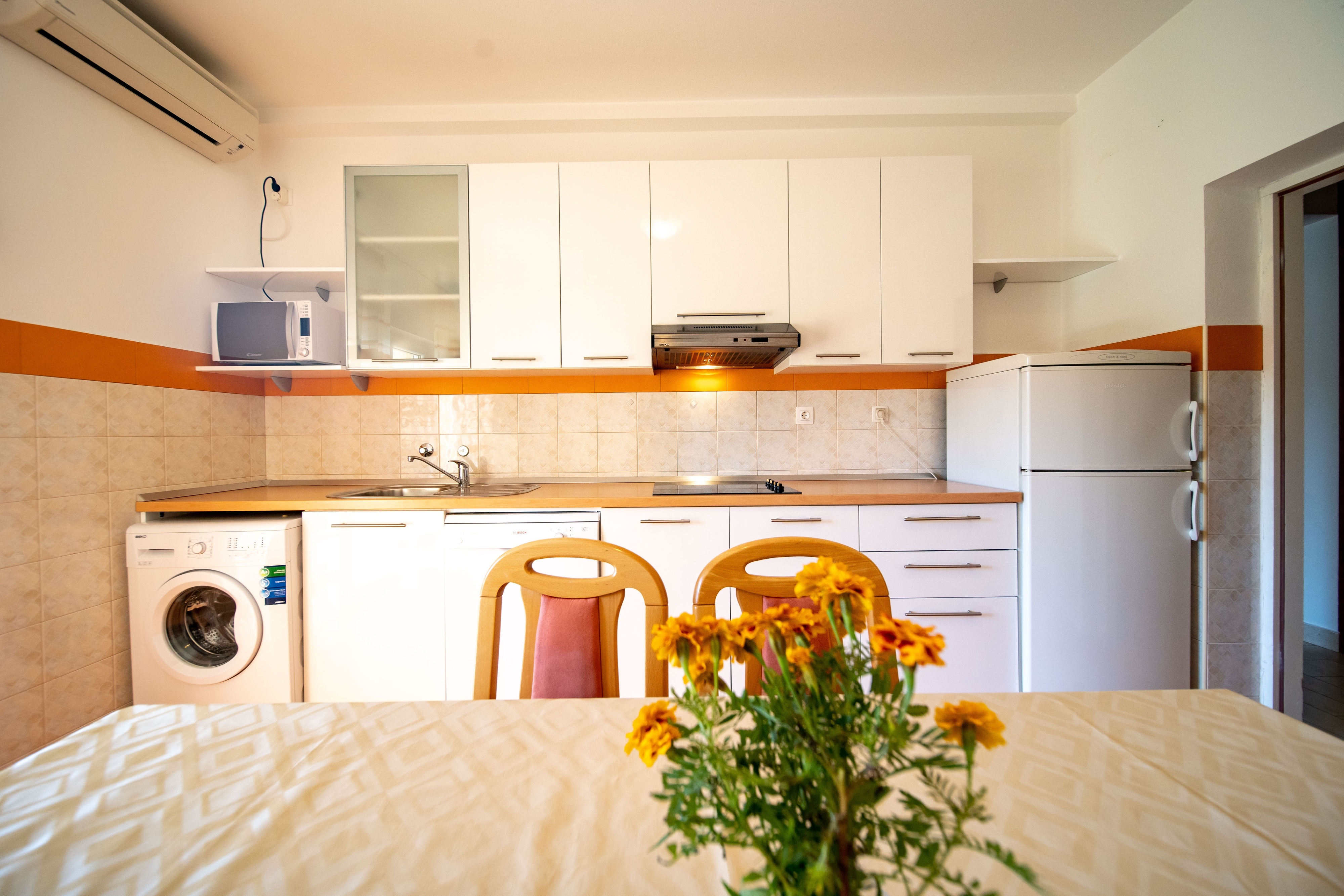 Apartment can accommodate 6 guests. Beds are situated in 3 sleeping rooms, within 60m2. Guests can use a private balcony to enjoy the warm summer evenings. Food can be prepared using barbecue which is shared with other guests too. INCLUDED IN THE PRICE: tourist tax, final cleaning, air-conditioning, parking, internet. OBLIGATORY ADDITIONAL COSTS: short stay fee (surcharge depending on a number of booked nights: 30% - 1, 20% - 2, 10% - 3). The availability of additional services for your chosen dates of stay, as well as their prices (if none are listed) must be checked ahead of time. Any additional services not shown in the price calculation are payable directly to the property owner and only if used by the visitor. Discounts to the base price: free day 14=13 (for reservations of 14 or more days you get one free day for the stay until 31122026).