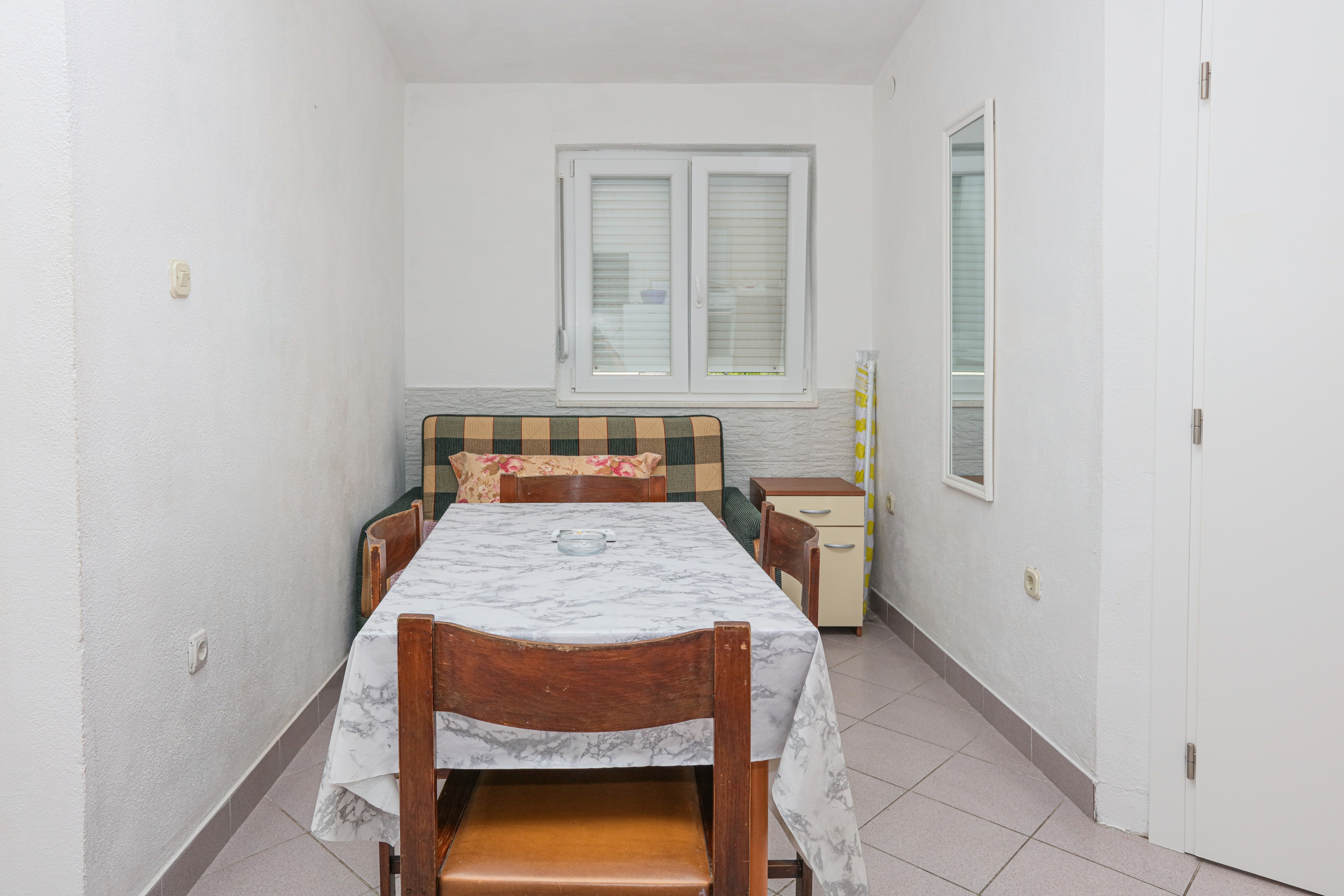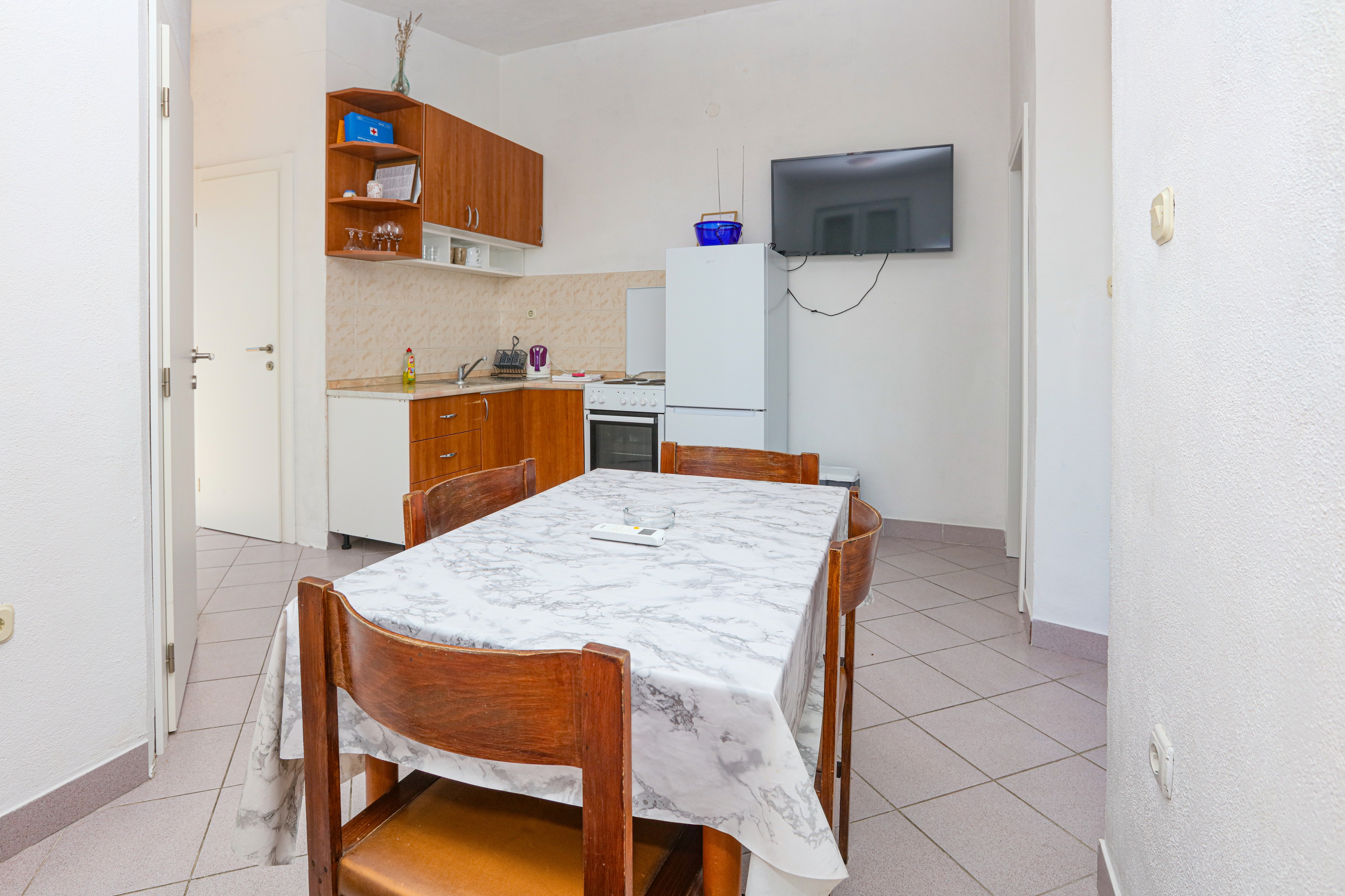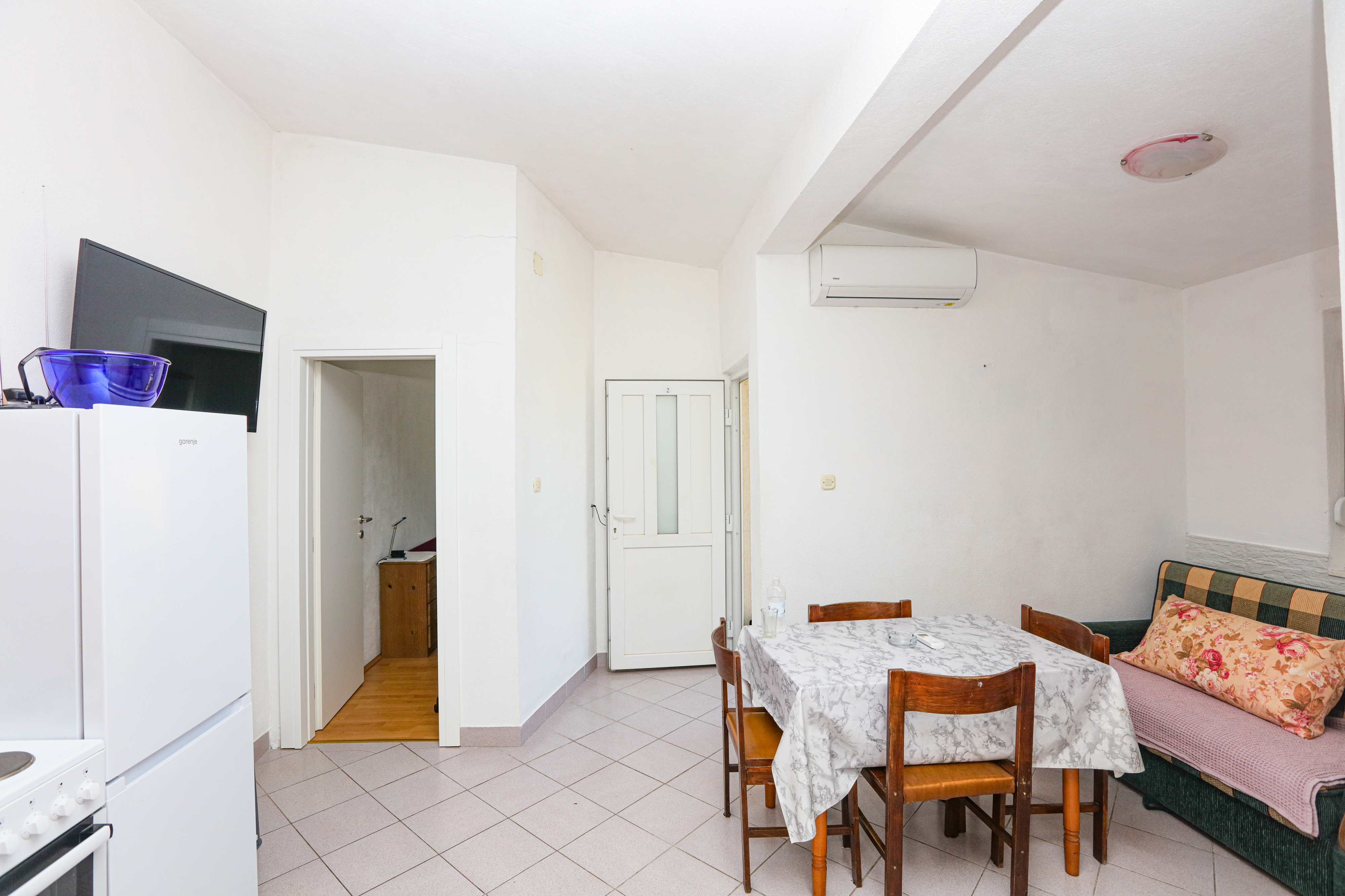 Apartment can accommodate 5 guests. Beds are situated in 2 sleeping rooms, but also in the dining room, within 33m2. Guests can use a private balcony to enjoy the warm summer evenings. Food can be prepared using barbecue which is shared with other guests too. INCLUDED IN THE PRICE: tourist tax, final cleaning, air-conditioning, parking, internet, iron, ironing board, hairdryer, portable barbecue, sunshade. The availability of additional services for your chosen dates of stay, as well as their prices (if none are listed) must be checked ahead of time. Any additional services not shown in the price calculation are payable directly to the property owner and only if used by the visitor. Discounts to the base price: free day 14=13 (for reservations of 14 or more days you get one free day for the stay until 31122026).