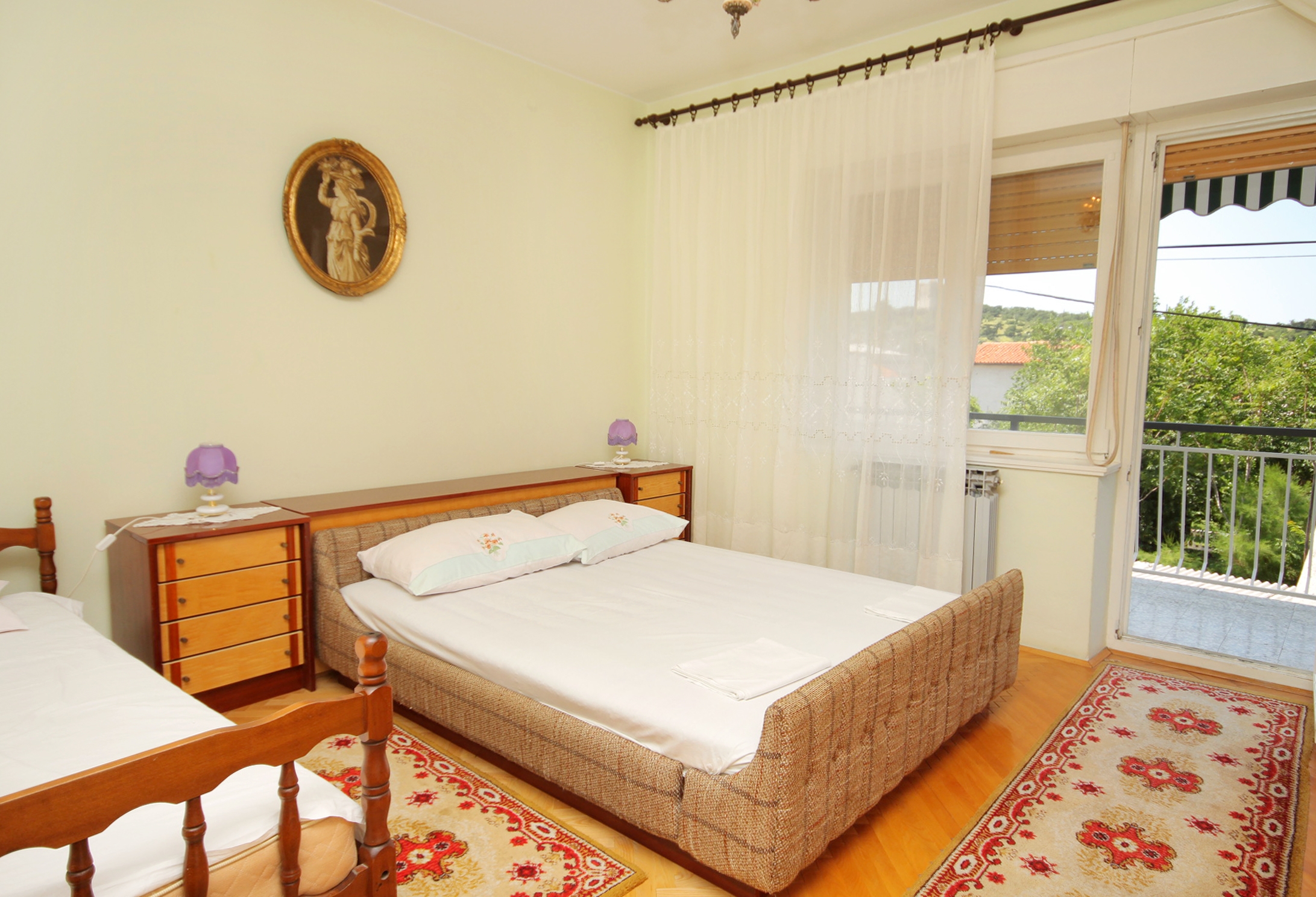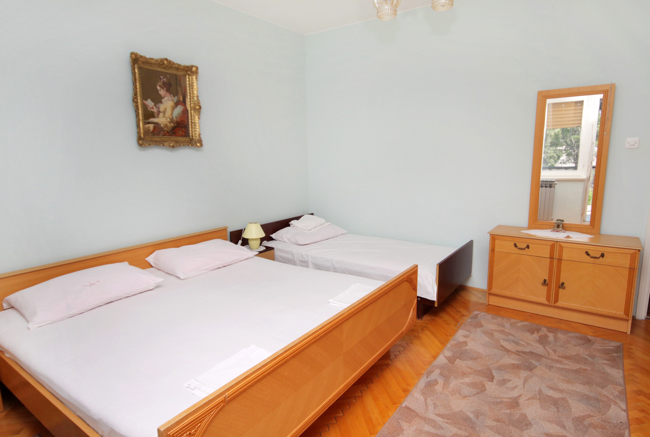 Apartment can accommodate 6 guests. Beds are situated in 3 sleeping rooms, within 77m2. Guests can use a private balcony to enjoy the warm summer evenings. The apartment offers the sea view. Food can be prepared using barbecue which is shared with other guests too. INCLUDED IN THE PRICE: tourist tax, final cleaning, air-conditioning, parking, internet, iron, ironing board, hairdryer. OBLIGATORY ADDITIONAL COSTS: short stay fee (surcharge depending on a number of booked nights: 30% - 1, 20% - 2, 10% - 3). OPTIONAL ADDITIONAL COSTS: central heating (€6.00 per night), additional bed (€10.00 per night). The availability of additional services for your chosen dates of stay, as well as their prices (if none are listed) must be checked ahead of time. Any additional services not shown in the price calculation are payable directly to the property owner and only if used by the visitor.